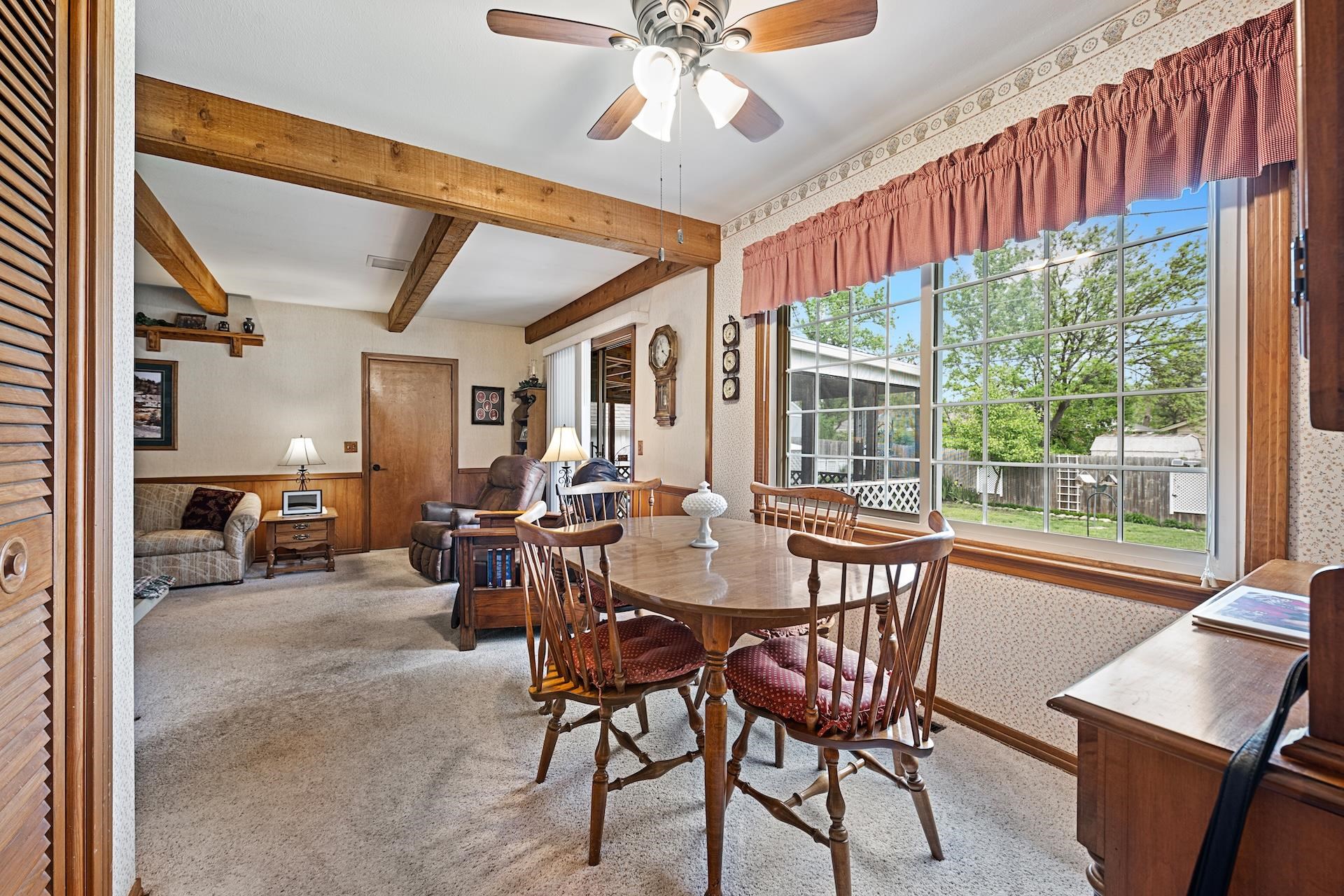 - Description: Well-Cared-For Ranch in Convenient East Wichita Location! Don’t miss this charming and well-maintained ranch home offering over 1, 500 finished square feet on a spacious 1/4-acre lot. Nestled among mature trees with brick trim and a welcoming front porch, this 3-bedroom, 2-bath home blends comfort, space, and convenience. Step inside to find a large living room and formal dining area with built-in china cabinet, perfect for gatherings. The kitchen features an electric cooktop, built-in wall oven, charming brick accents, and all appliances stay! The primary suite offers a private full bath with a stand-alone shower, tile floors, and tile countertops. Enjoy relaxing or entertaining in the family room with a gas fireplace that echoes the brick details of the kitchen, plus easy access to the screened-in patio and backyard. Two additional bedrooms, a hall bath with tile flooring, hard surface countertops, a tub/shower combo, and a convenient laundry closet complete the floor plan. The beautifully landscaped backyard features colorful flower beds, a wood privacy fence, and two storage sheds for added convenience. Located in Wichita Public Schools and close to eastside shopping, restaurants, and churches—with quick access to K-96 for commuting anywhere in the city—this home offers the best of both comfort and location. Don’t miss your chance at this east side ranch home – Call to schedule your private showing today!! Show all description