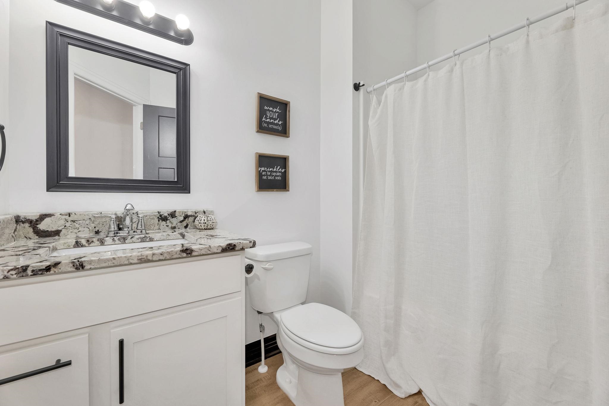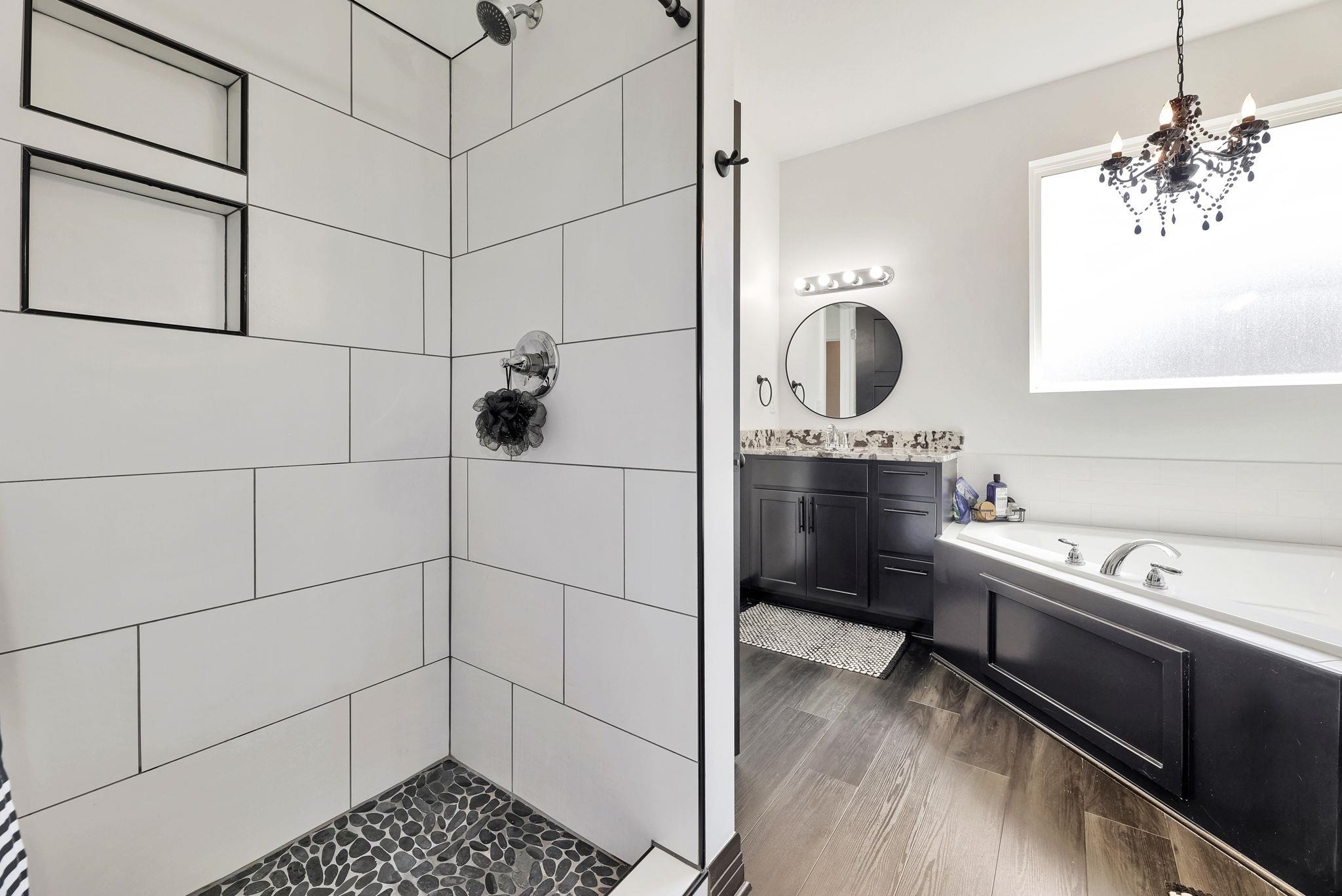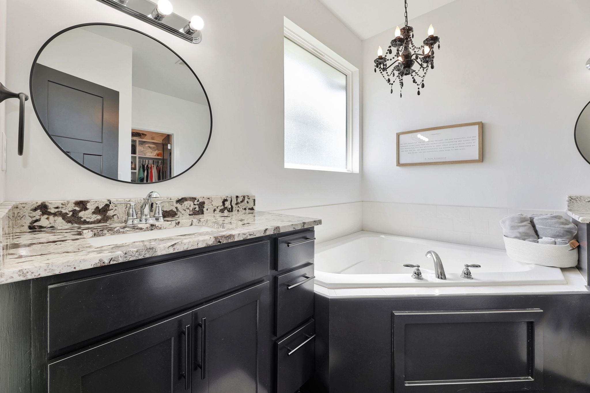 - Master Bedroom: Master Bdrm on Main Level, Shower/Master Bedroom, Tub/Master Bedroom, Two Sinks, Granite Counters
