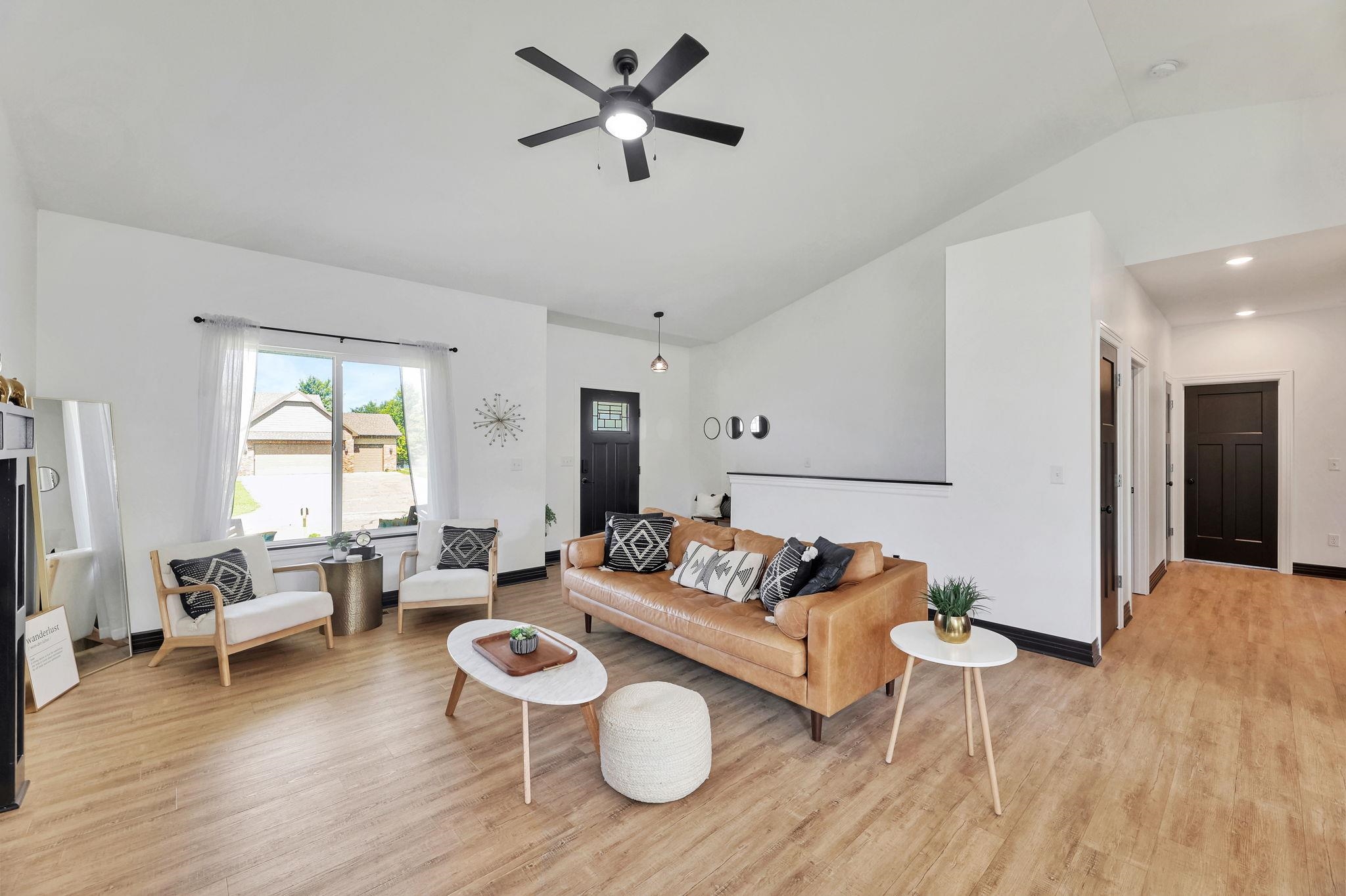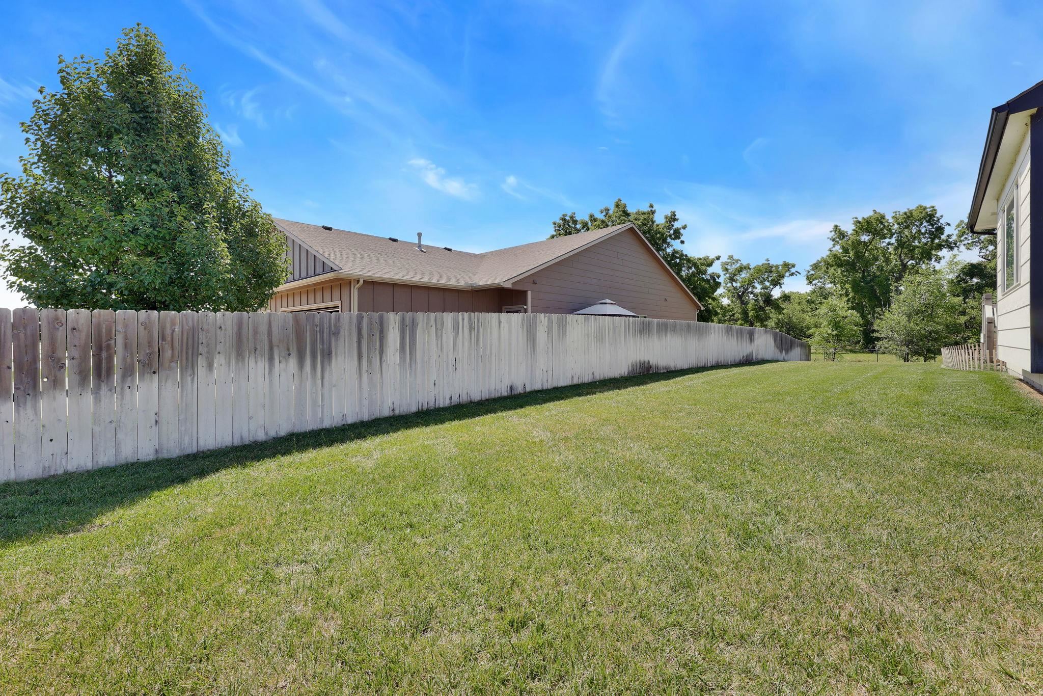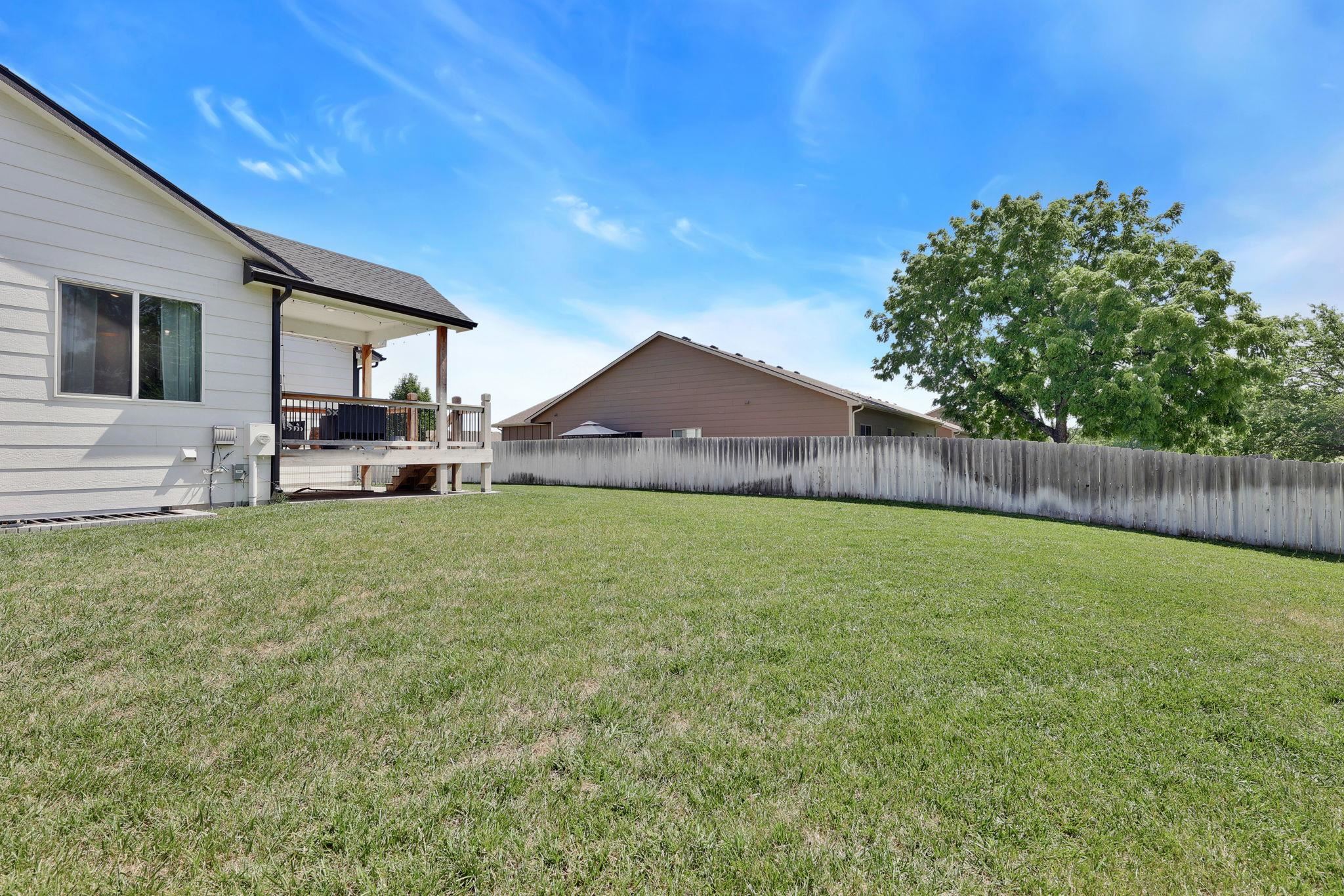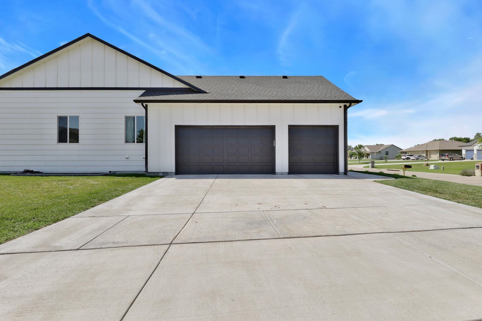 - Description: If you have been waiting for your dream home to come available, the wait is finally over!!! This stunning home is located in a quiet neighborhood, Derby school district, and situated on a large lot with 3 car side load garage access from a private cul-de-sac. You will enjoy all of the perks of a newer home with NO SPECIALS! Prepare to be captivated by the open concept floorplan, vaulted ceilings, and upgraded modern finishes. This floorplan was thoughtfully designed allowing ample space in the dining and living area to expand seating when hosting guest or large family gatherings! An unrestricted dining space is hard to find in most new home floorplans! The living area is equipped with a gas fireplace, kitchen island with seating and granite countertops, upgraded light fixtures, a gas range, stainless steel appliances, and luxury wood laminate flooring. Enjoy your morning coffee on your covered back patio with a peaceful view of mature trees. The oversized main floor laundry and mud room is located directly off of the garage and includes a drop zone! The bathroom features a luxurious design with a black chandelier hanging from the ceiling, which provides an elegant touch. The bathtub is nestled in a corner beneath a frosted window, offering privacy and natural light. The bathroom is equipped with a dual vanity with granite countertops providing a mix of black and white patterns, complementing the dark cabinetry and flooring below. The walk-in tile shower is equipped with two built in shower niches! off the Owners suite is a spacious walk-in master closet with built-in shelving! Two additional bedrooms and an additional bathroom complete the main floor. All bathrooms have been upgraded with granite countertops! The finished basement offers a large recreation room, a generously sized third bathroom with built in shelving, two additional bedrooms, and an oversized storage area! The possibilities are endless with your spacious backyard on a 0.4-acre lot! The yard has been reseeded this fall and will be ready for you to enjoy a nice green yard this coming spring! Call and schedule your showing today! Show all description