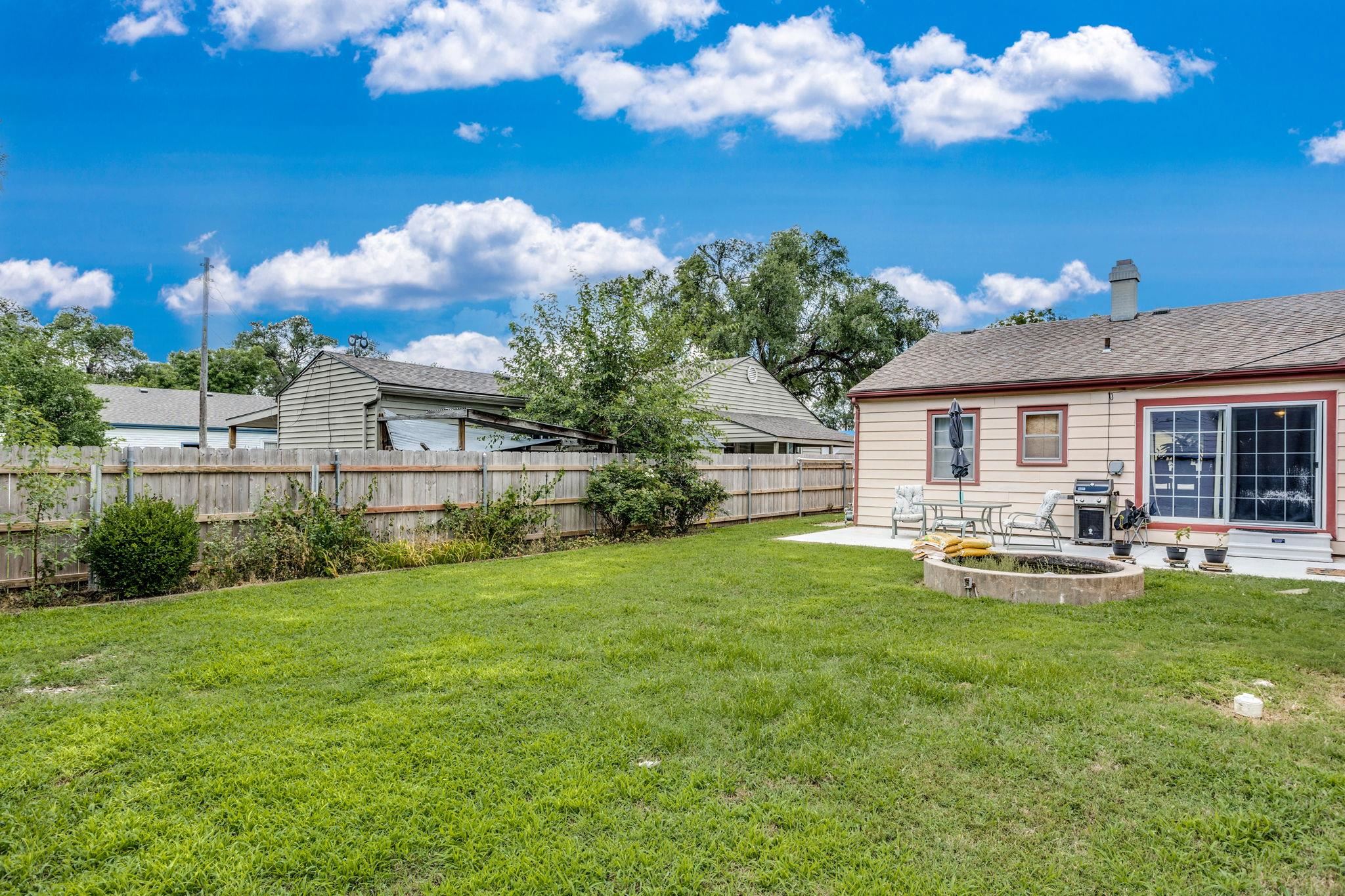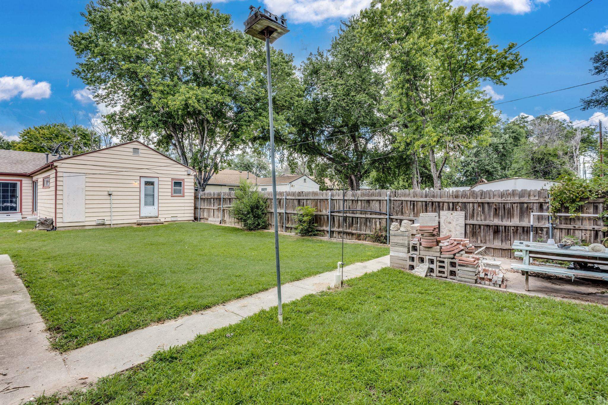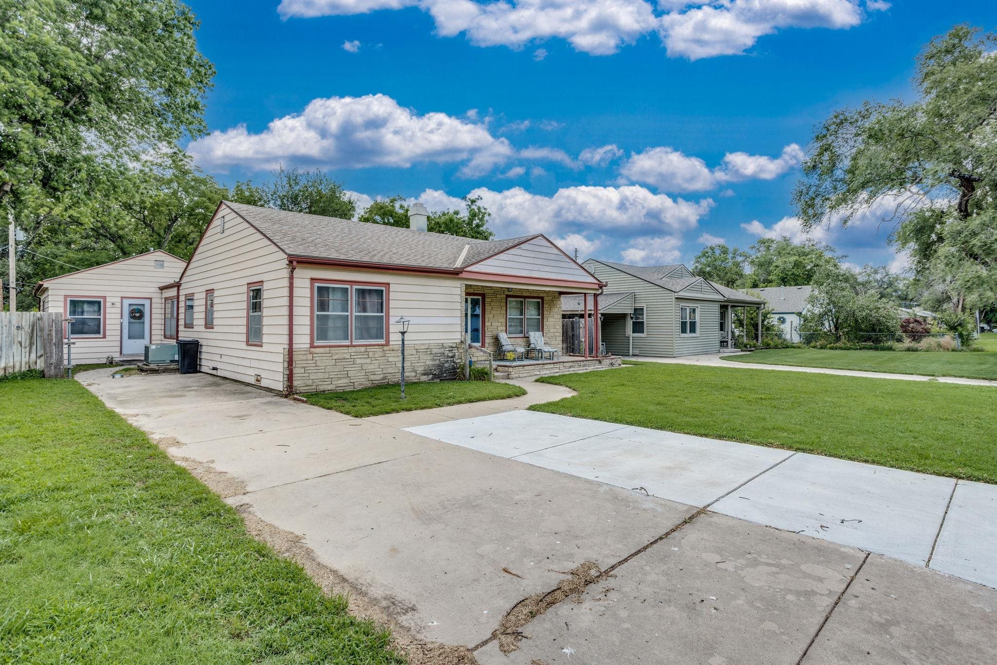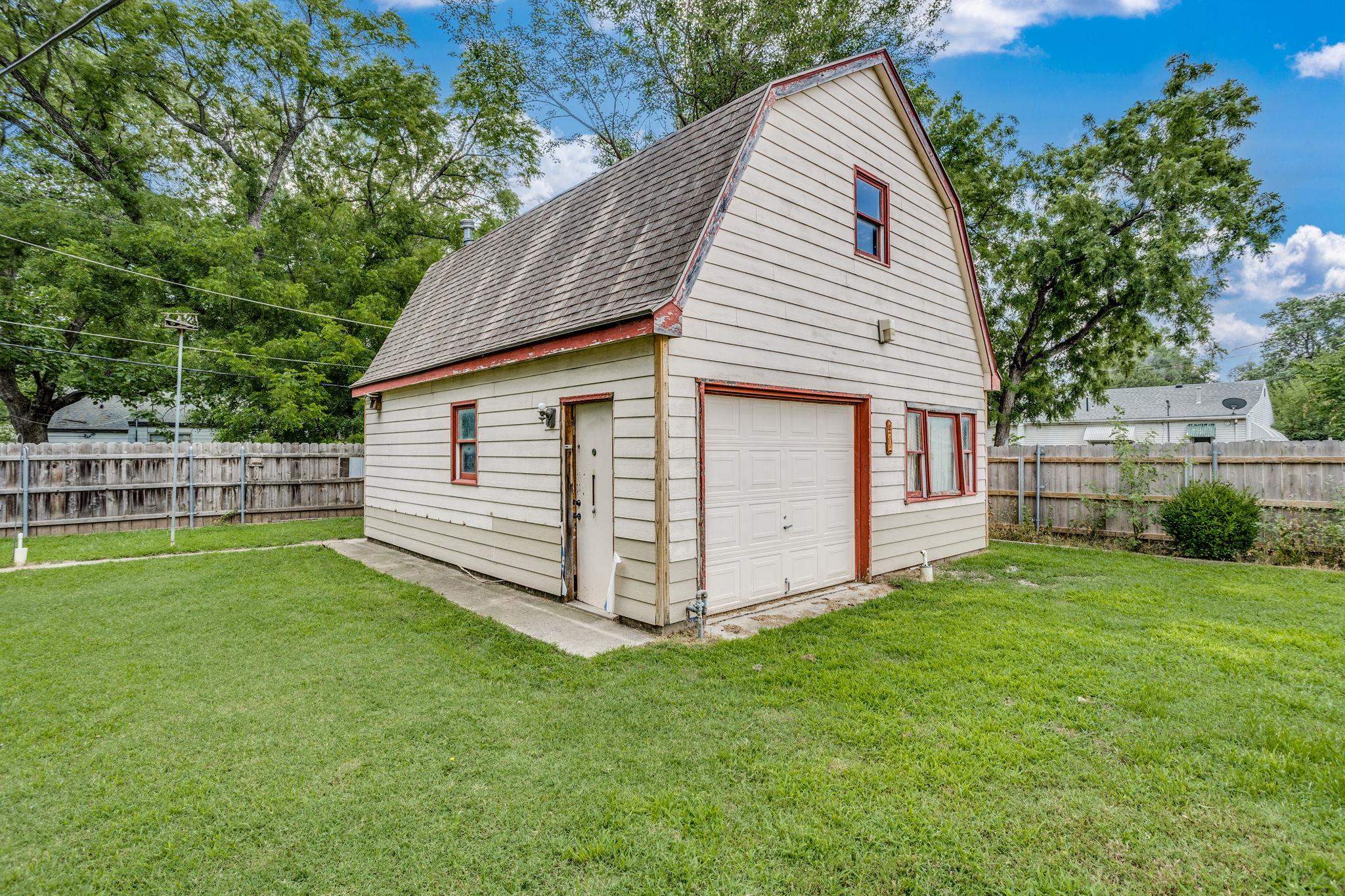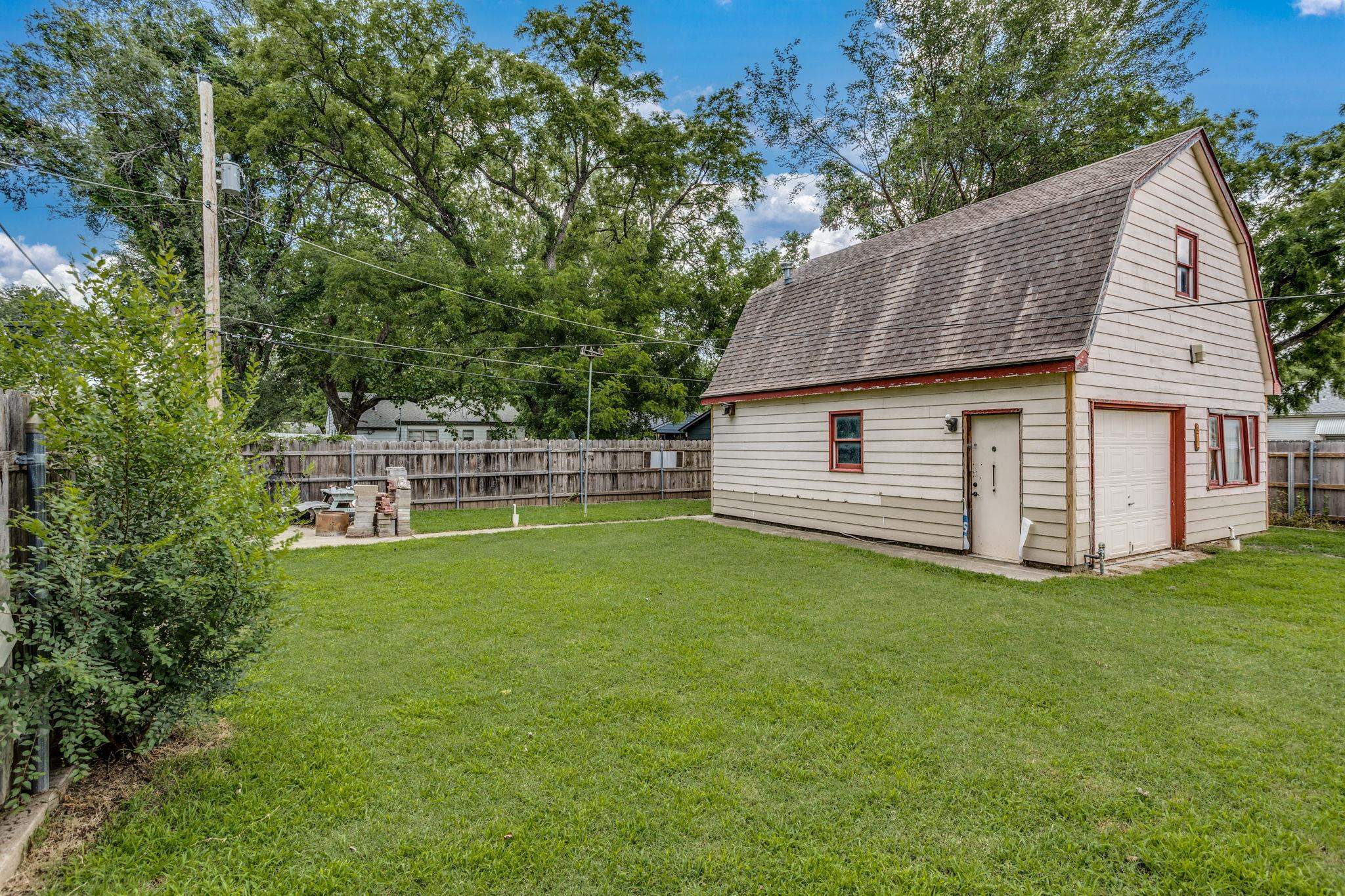- Description: Move in ready 3 bedroom, 2 bath on large fenced lot with detached garage and shop. The living room which has a fireplace and doors leading to the spacious outdoor patio. Conveniently located is the dining room which is a separate room in between the kitchen and living room. This home has the popular split bedroom plan. The primary suite is oversized and has its own ensuite bathroom and is situated on the back side of the home. Additional two bedrooms and a full bathroom are located on the other side of the home. You can sit outside on the covered front porch or on the back patio around the firepit. The detached garage is 26 x 22, should really be called a 2 car garage, as it has one overhead garage door, and the other side is set up for a workshop with 220, 250 volt and 500 amp plugs! Also with 200 amp electric panel. The garage also has duct work for HVAC. Don't miss the upstairs loft area that would be perfect to finish as additional work space, play room, etc. The electrical plugs are every 4 foot and is ready for your finishes. Sewer was replaced in 2023. Don't miss out on this home with Wichita postal address and Haysville schools. Show all description