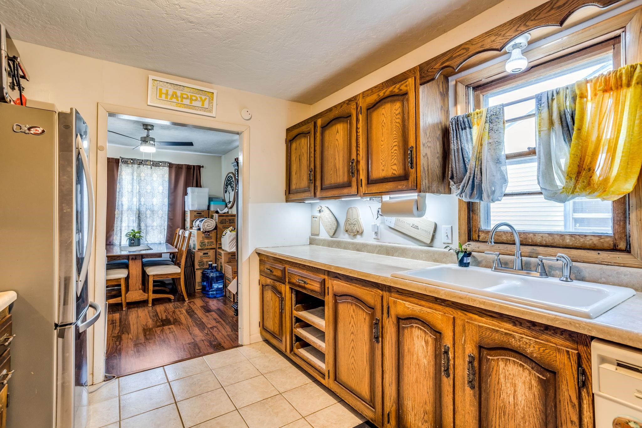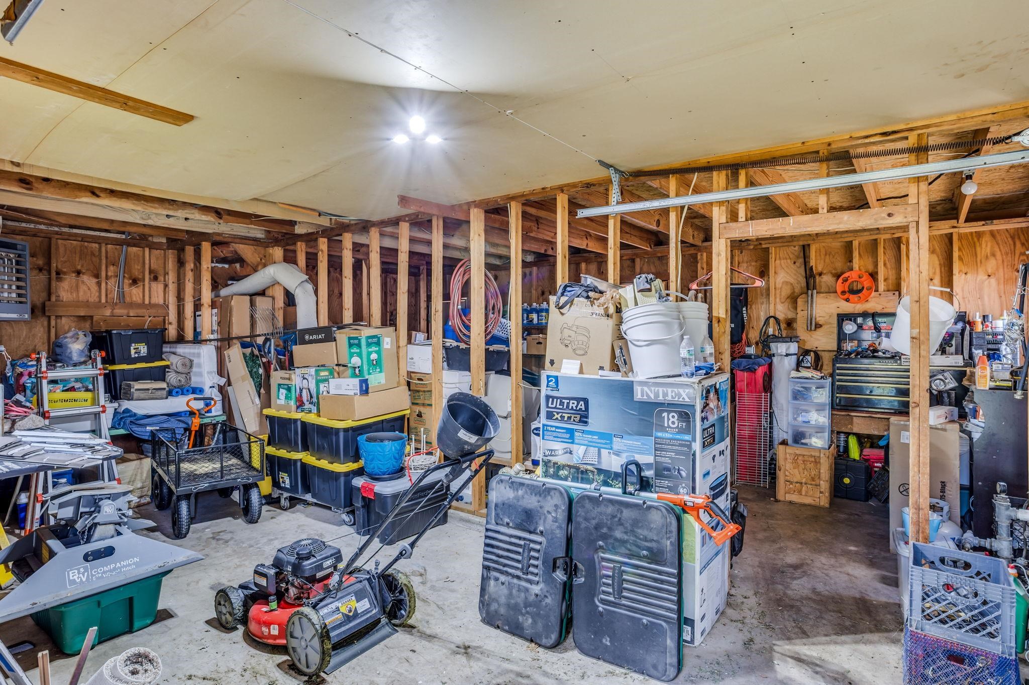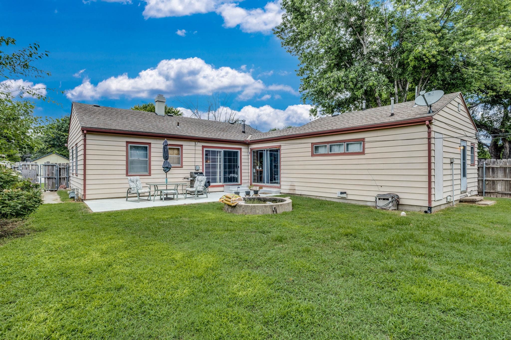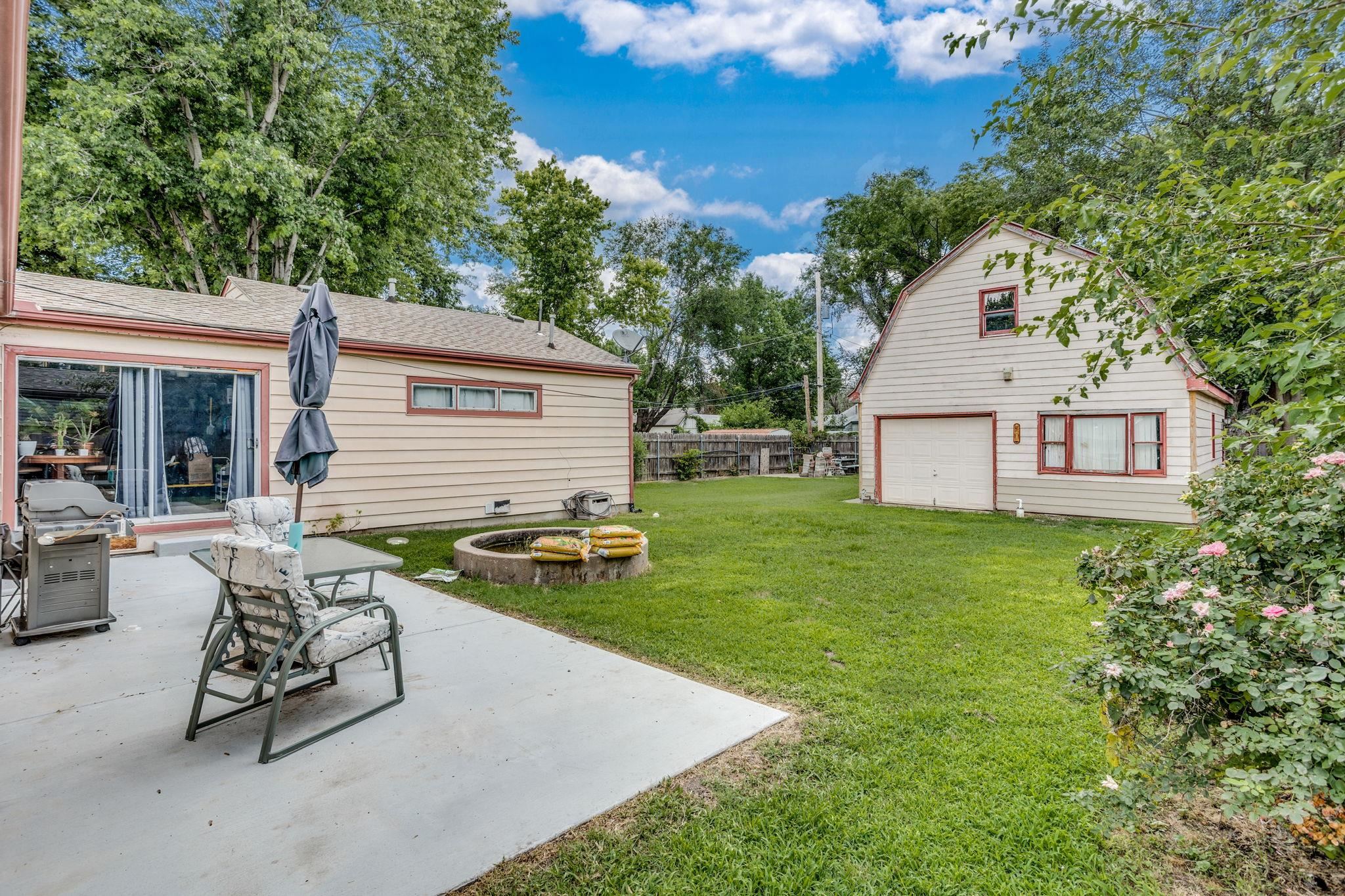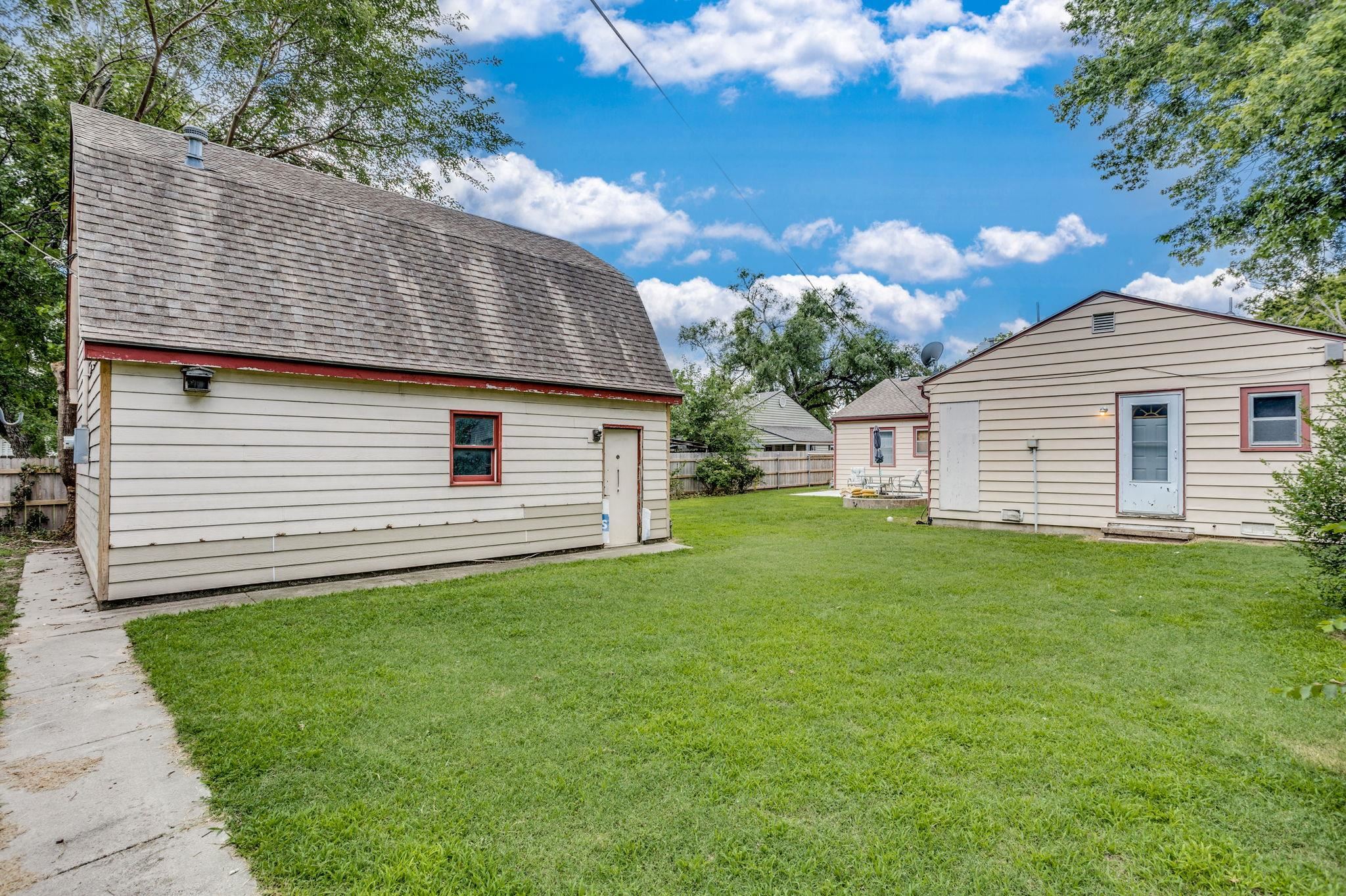 - Description: Move in ready 3 bedroom, 2 bath on large fenced lot with detached garage and shop. The living room which has a fireplace and doors leading to the spacious outdoor patio. Conveniently located is the dining room which is a separate room in between the kitchen and living room. This home has the popular split bedroom plan. The primary suite is oversized and has its own ensuite bathroom and is situated on the back side of the home. Additional two bedrooms and a full bathroom are located on the other side of the home. You can sit outside on the covered front porch or on the back patio around the firepit. The detached garage is 26 x 22, should really be called a 2 car garage, as it has one overhead garage door, and the other side is set up for a workshop with 220, 250 volt and 500 amp plugs! Also with 200 amp electric panel. The garage also has duct work for HVAC. Don't miss the upstairs loft area that would be perfect to finish as additional work space, play room, etc. The electrical plugs are every 4 foot and is ready for your finishes. Sewer was replaced in 2023. Don't miss out on this home with Wichita postal address and Haysville schools. Show all description