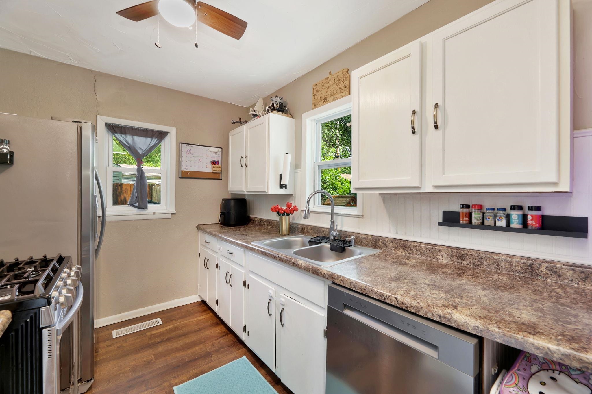 - Description: Welcome home to this delightful 3-bedroom, 1-bathroom residence nestled on a stately lot surrounded by mature trees. From the moment you arrive, the charming curb appeal invites you in. You'll love the thoughtfully designed floorplan that’s ideal for first-time homebuyers or savvy investors looking to expand their portfolio. The living room, dining area, and kitchen flow seamlessly together, all bathed in natural light thanks to several new windows throughout. Down the hall, you'll be impressed by the oversized laundry room offering exceptional storage and easy access to all three bedrooms and the beautifully updated bathroom. Step outside to your private backyard oasis—perfect for kids, pets, and outdoor entertaining. With space to spread out and enjoy, this home truly checks all the boxes in its price range. Don’t miss your opportunity—schedule your showing today! Show all description