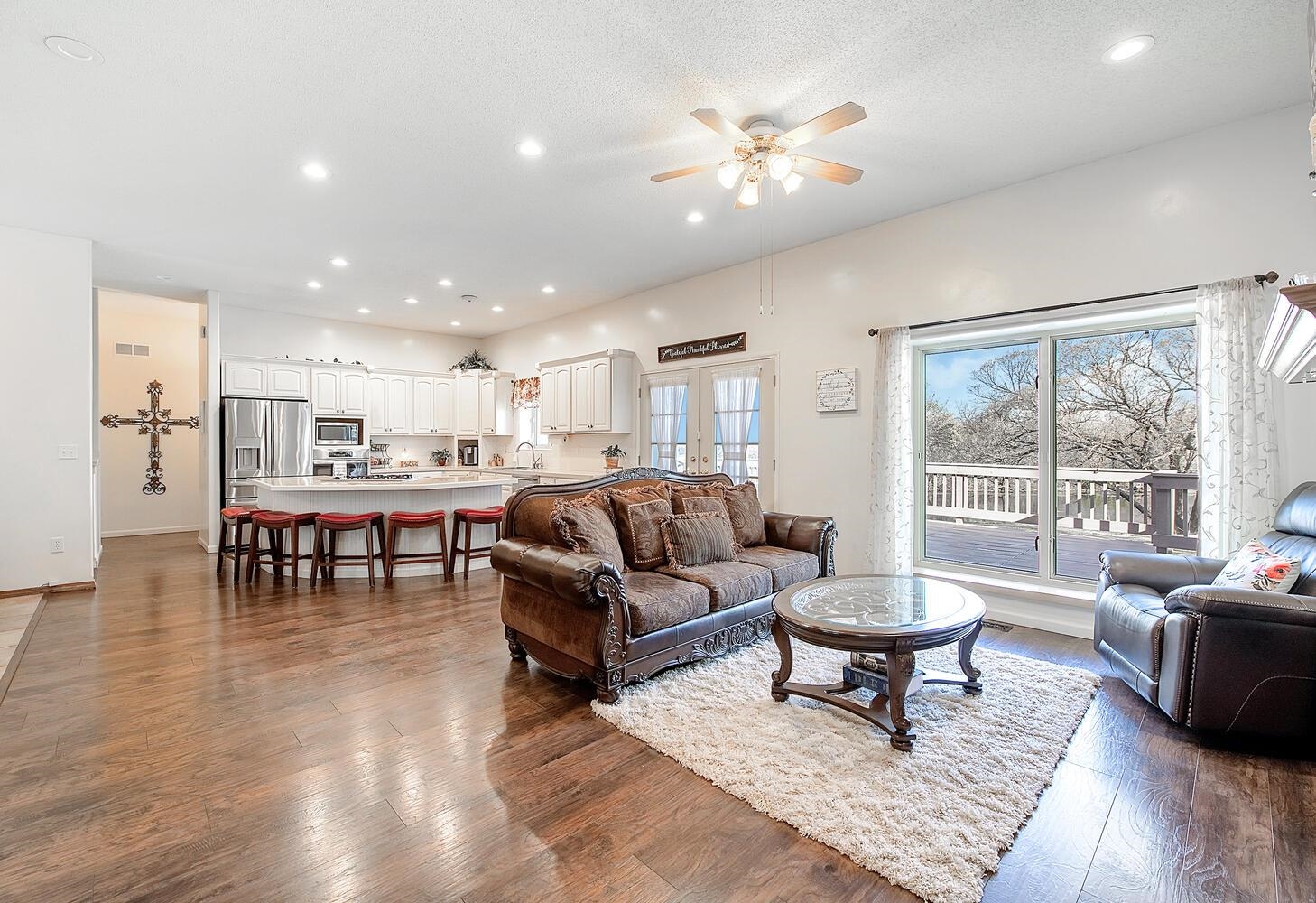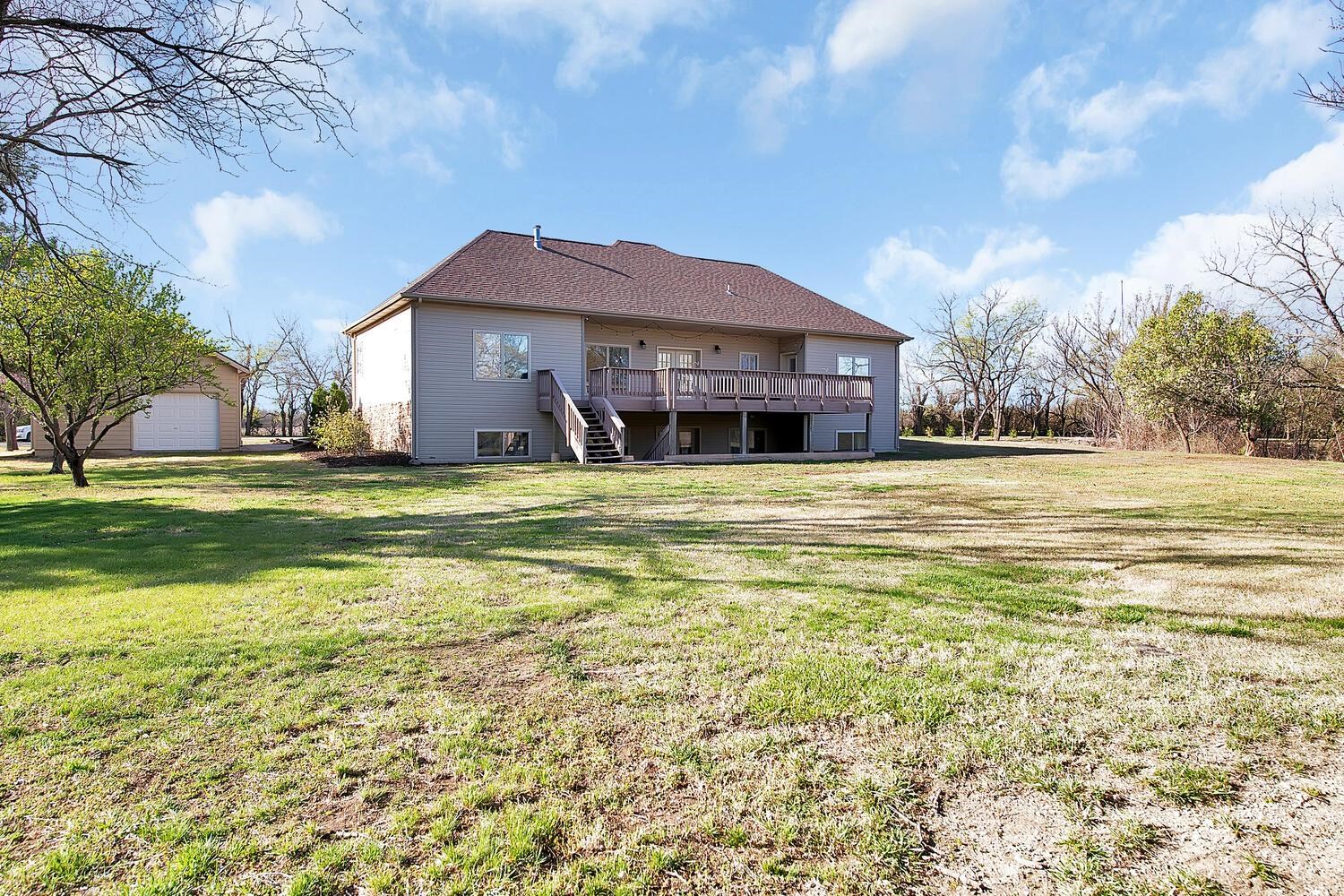 - Description: Stunning Home for Sale in Northeast Wichita - A Slice of Paradise on Nearly 5 Acres Welcome to your dream home situated just outside of desirable Northeast Wichita. This property is a perfect blend of tranquility and functionality, featuring a 25 x 40 shop building and a picturesque large pond that gracefully overlooks the backside of the lot. Property Highlights: - Expansive Lot: Nearly 5 acres of lush greenery and open space for outdoor activities and relaxation. - Shop Building: The 20 x 40 shop is ideal for hobbies or additional storage, providing ample space for all your tools and equipment. - Pond View: Enjoy serene views of the large pond from the comfort of your backyard, perfect for peaceful moments or entertaining guests. Home Features: - ICF Construction: This home stands out with Insulated Concrete Forms (ICF), ensuring superior insulation and energy efficiency unlike any other property on the market. - Garage: A three-car attached garage provides ample space for your vehicles and storage. - Front Porch and Deck: A beautiful covered front porch invites you in, while a large deck on the backside allows you to soak in the gorgeous pond views. Interior Features: - Welcoming Entrance: Step onto the large covered front porch and enter the beautiful open-concept living area, where the kitchen, formal dining, living, and sitting areas seamlessly blend together, creating a warm and inviting space for gatherings. - Split Bedroom Plan: The smart design includes a primary master suite conveniently located on the main level, providing privacy and comfort. Laundry facilities are also conveniently situated on the main level. Basement Amenities: - Open Concept: The spacious basement mirrors the open layout of the main level, featuring two additional bedrooms, a bathroom, and an office, perfect for working from home or studying. - Safe Room: For peace of mind, the basement includes a safe room, ensuring safety and security for you and your loved ones. - Walkout Access: You can easily access the backyard from both the basement and the main level, making outdoor entertaining a breeze. This home is packed with features that cater to comfort, convenience, and a quality lifestyle. Don’t miss your opportunity to see everything this remarkable property has to offer—schedule your showing today! Show all description