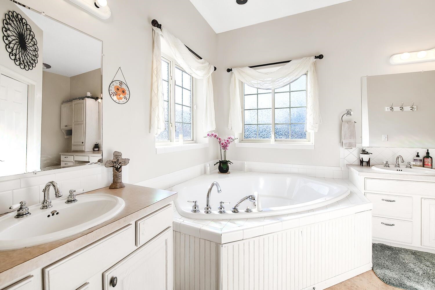 - Master Bedroom: Master Bdrm on Main Level, Split Bedroom Plan, Master Bedroom Bath, Sep. Tub/Shower/Mstr Bdrm, Two Sinks, Laminate Counters, Jetted Tub