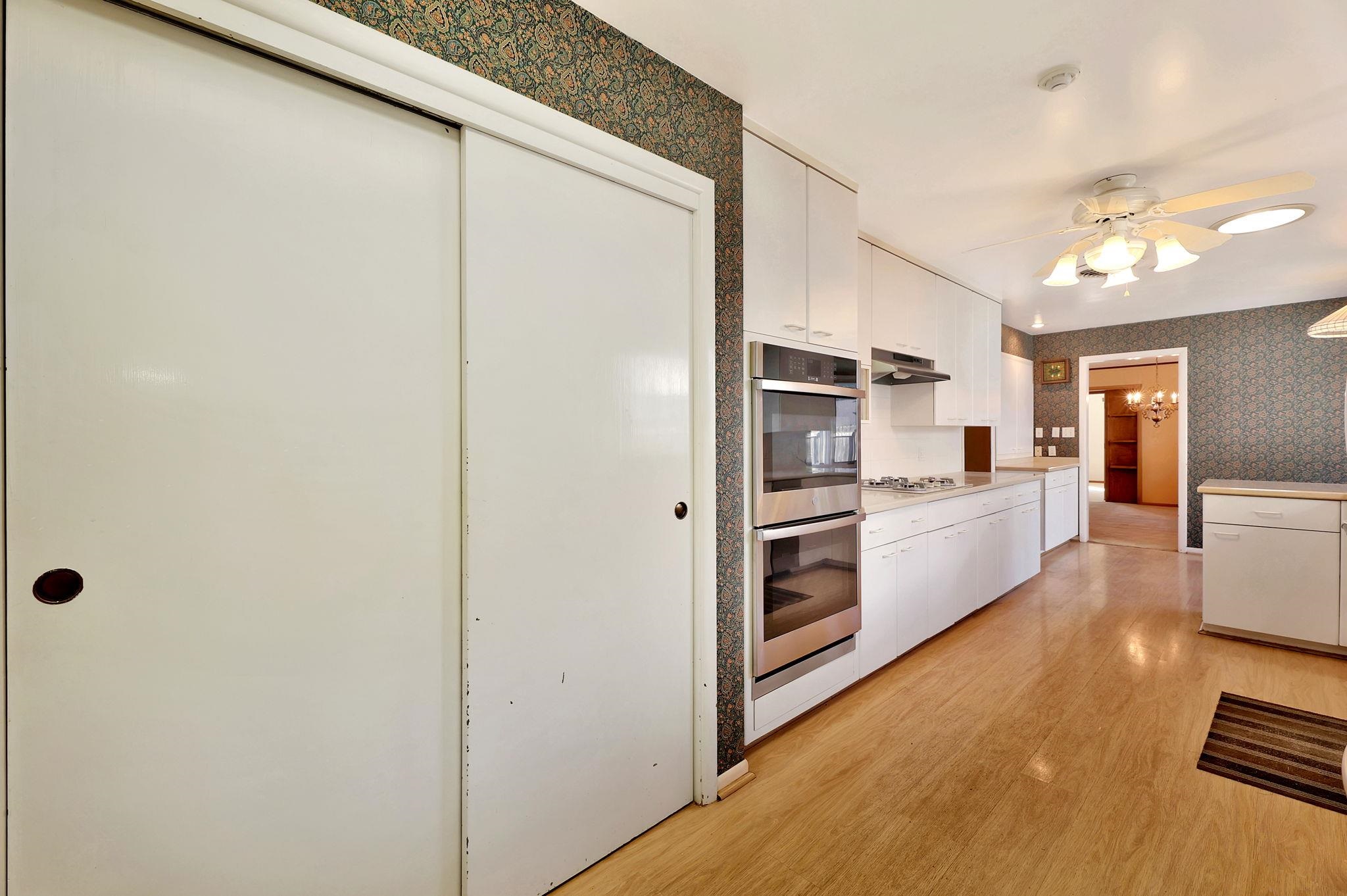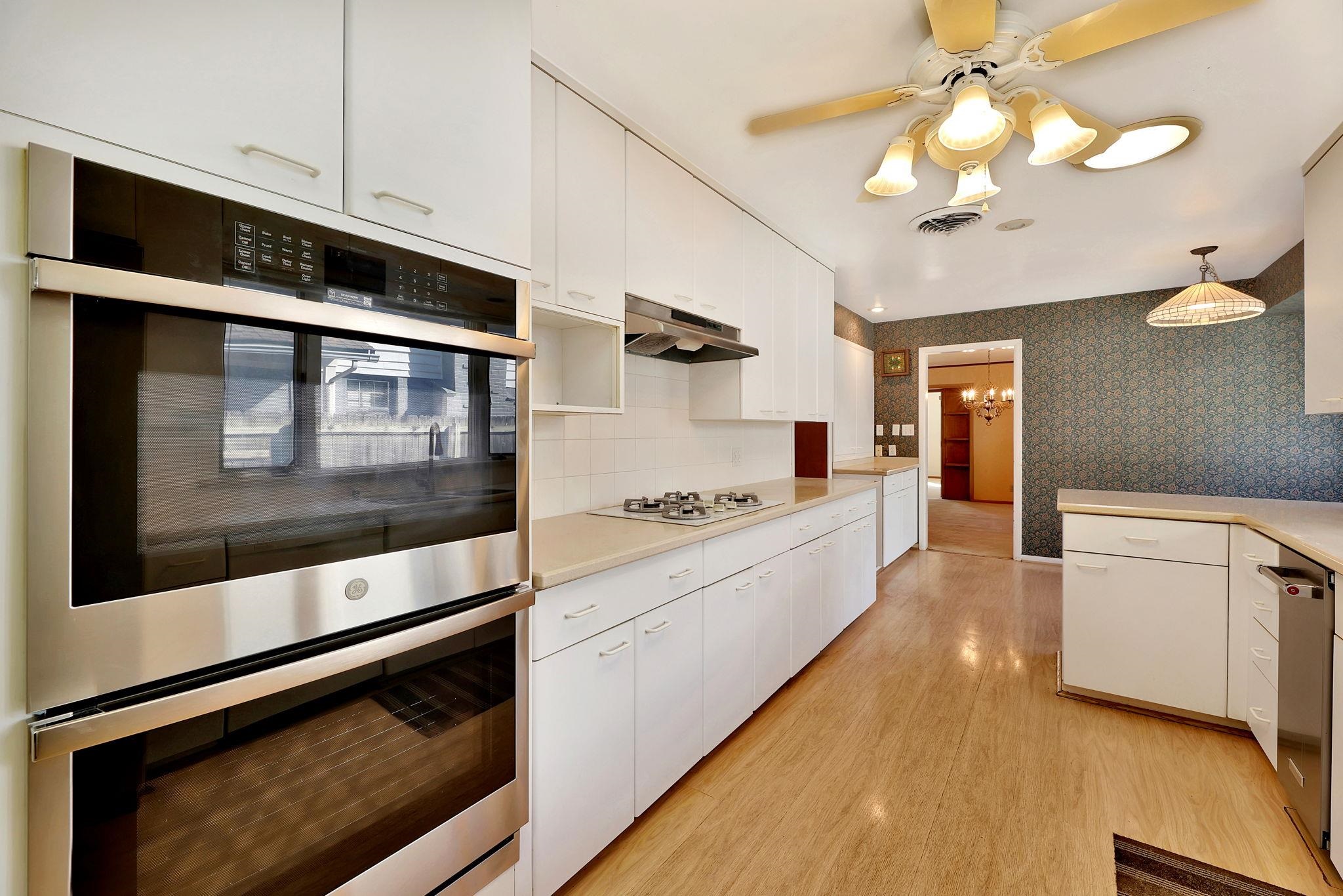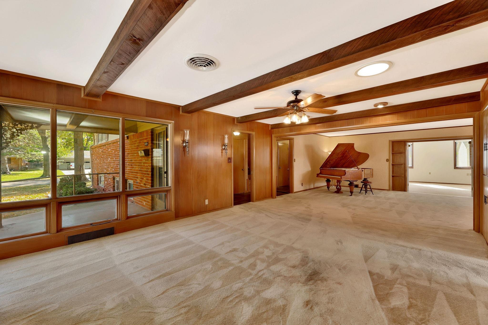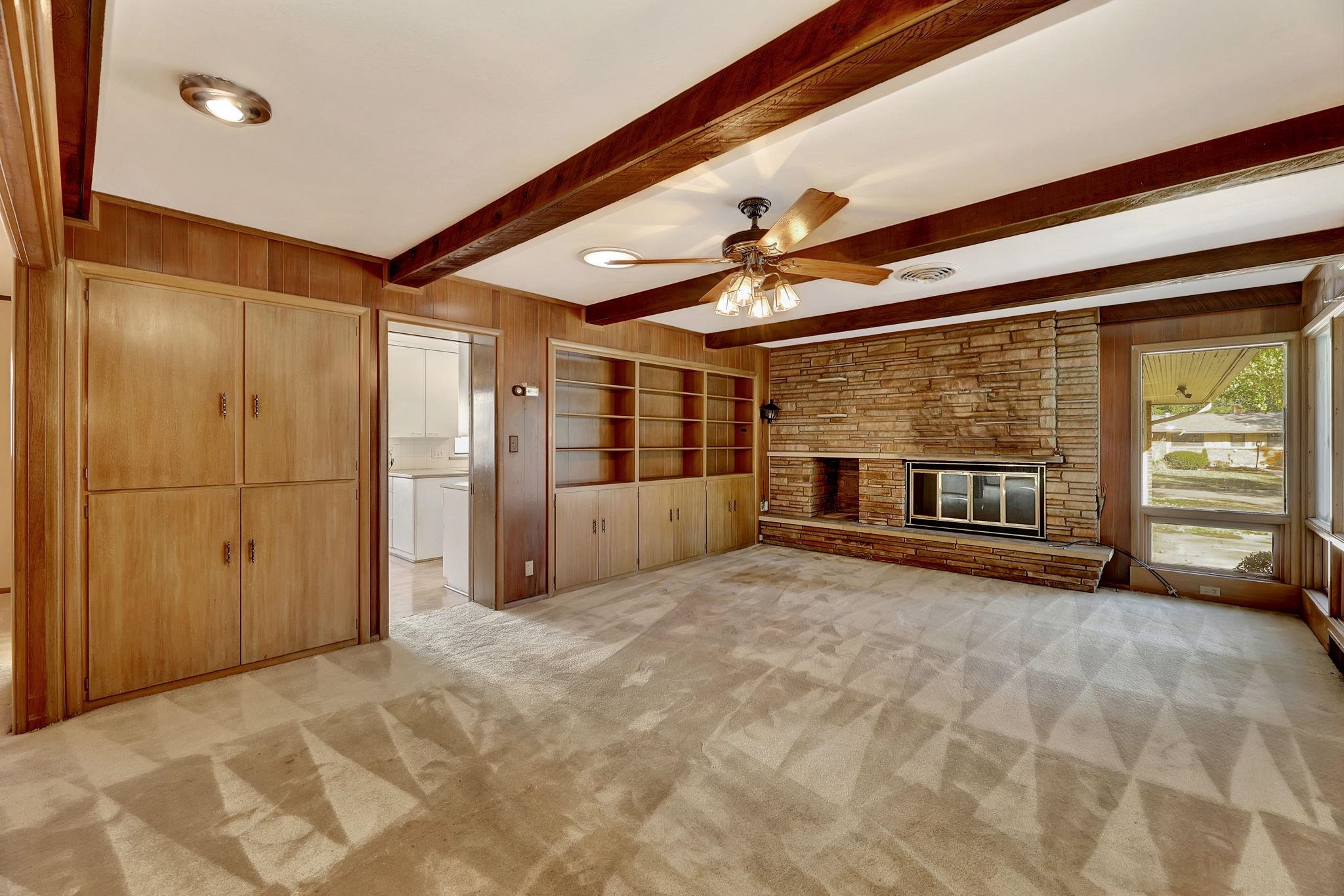 - Description: This spacious, accessible home is designed with both style and functionality in mind. The main floor features an expansive open-concept living, dining, and family room complete with built-in storage and a charming mid-century fireplace, creating a cozy yet modern atmosphere. The master bedroom on this level includes a zero-entry bathroom with a tiled walk-in shower and a large walk-in closet, making it ideal for convenience and accessibility. The kitchen is equipped with an abundance of 42-inch white cabinets, all with pullouts, and a gas stove paired with newer double ovens, offering both style and practicality. Just five steps up from the main living area, three additional bedrooms and two more bathrooms provide ample space for family or guests. Situated on a corner lot with a circular driveway and wheelchair-friendly concrete ramps at the front and back, the home is as accessible as it is inviting. The basement is a versatile retreat, featuring a small kitchen, a bonus room, and a spacious family or game area, perfect for entertaining or relaxation. With hardwood floors lying beneath the carpet in the bedrooms, there’s potential for even more character to shine through. A main-floor laundry area and cedar closet add to the home’s many thoughtful touches, combining mid-century charm with modern convenience. Show all description