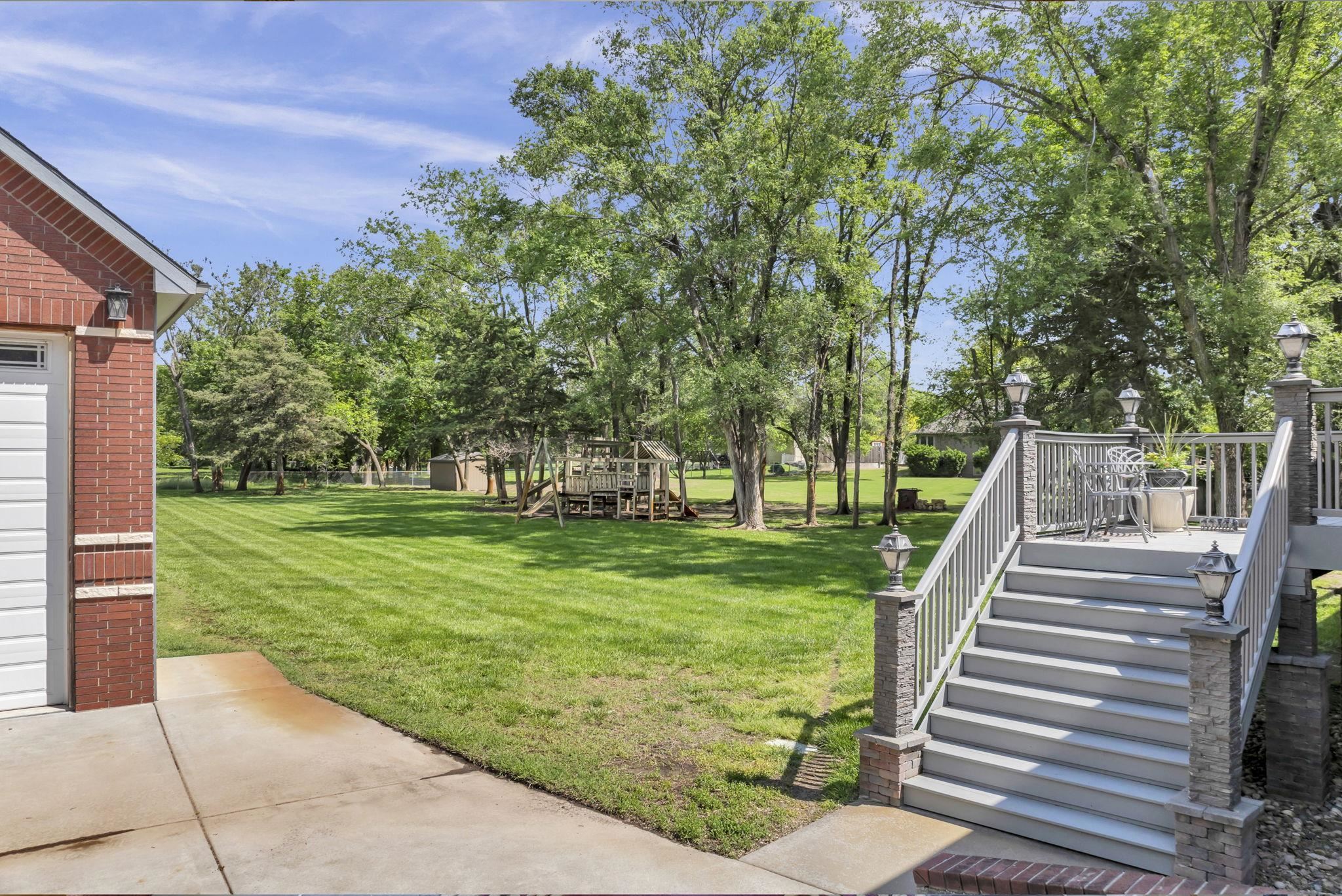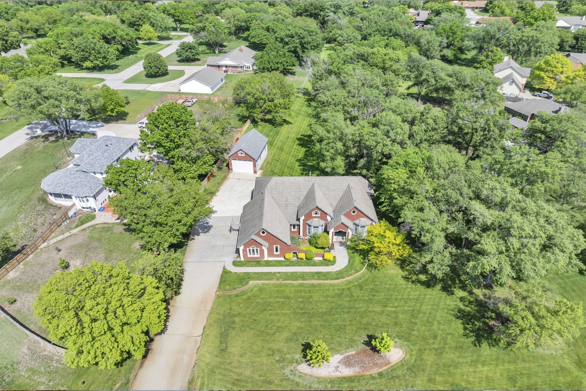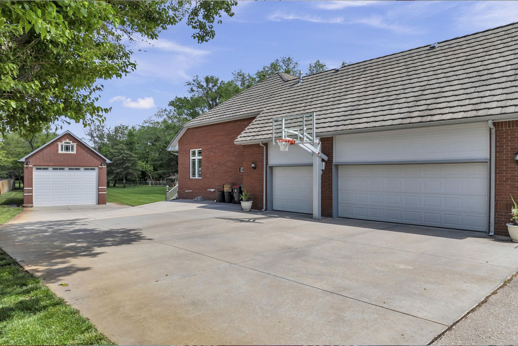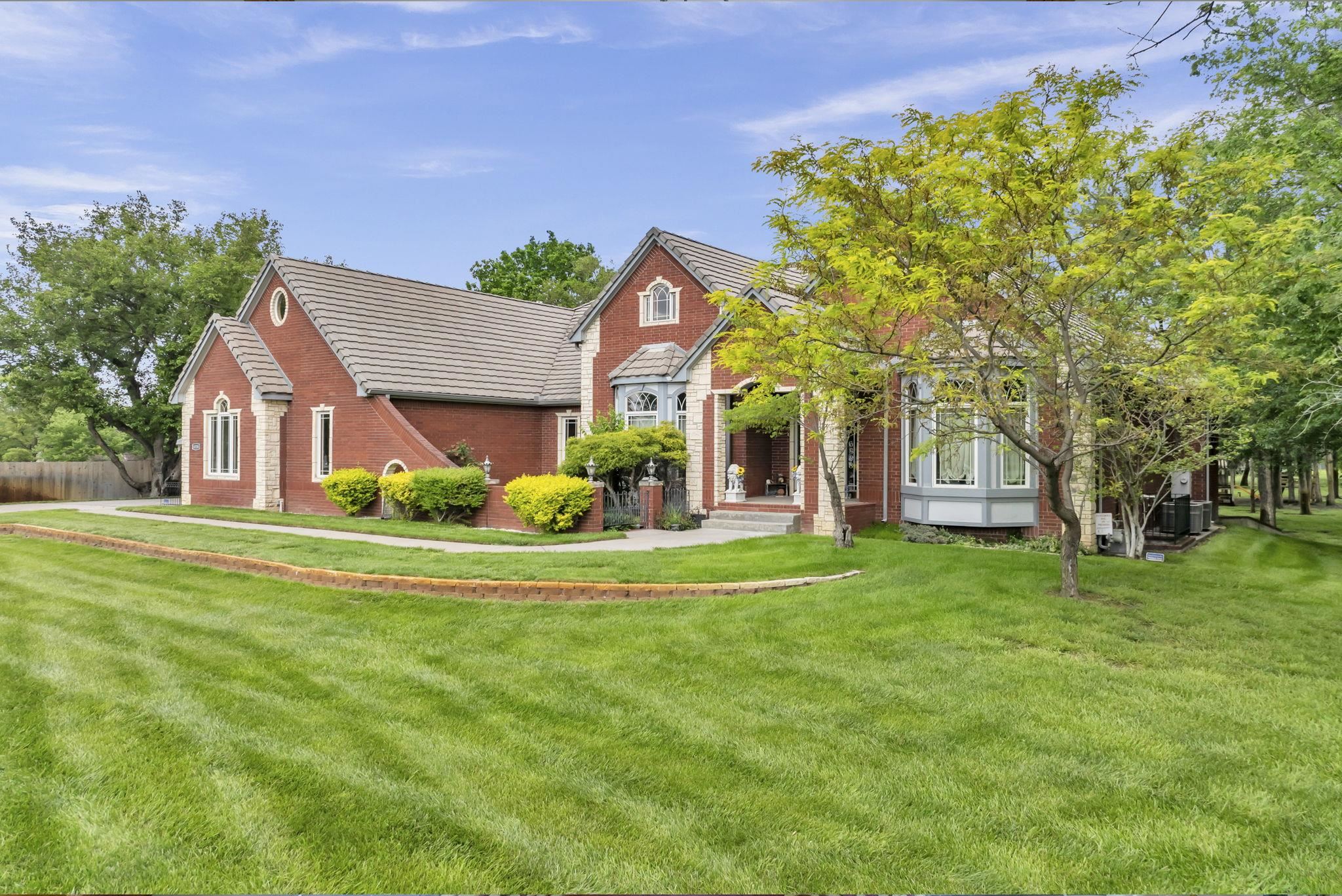 - Description: Amazing Tudor architectural designed 1 story home that features traditional, formal and charming characteristics that make this a one of a kind. This specifically designed one owner home shows pride of ownership. Situated on 1.17 acres with mature trees and beautiful surroundings. The exterior has beautiful curb appeal and a court yard to enhance the entry appeal. Brick exterior, 40x12 deck, 3 car attached oversized side load garage and detached oversized garage with two overhead doors. The interior compliments the exterior design. Impressive entryway. Tall windows and window groupings that include bay windows. Arched doorways and more. Two way stone fireplace on main floor with built in cabinets for TV placement and accessories. Hard surface counters. Wood, carpet and tiled flooring. High quality craftsman-style woodwork. Desirable open kitchen with a free standing island and eating bar that seats 6. Desk, Walk in pantry, and Surround sound. All complimented by the high ceilings through out. Dining room that is spacious enough for a table that seats 14. Formal living space. Glass door entry into one of the main floor bedrooms. All main floor bedrooms feature walk-in closets and built in desks. The main floor master suite has access to the spacious deck, includes decorate high ceilings, a private master bath that boasts a soaker tub and separate shower, vanities and separate dressing room, a sizeable walk-in closet with built in dressers. The 17x10 laundry room includes a multi-functional hall tree, desk, spacious counters, full size sink and more. The lower level is designed for entertainment. Game room. Wet bar, A play room under the stairs. Amazing family room with incredible built in entertainment center and fireplace. Powder room for guests. Two additional spacious bedrooms, amazing walk in closets., Jack & Jill bath and so much more. Plenty of storage space. Well maintained mechanical room, storm room. Zoned HVAC system, two water tanks. So many design secrets to honor this home. Rio Vista Estates! Walking distance to the Arkansas River that surrounds this community of homes. Show all description