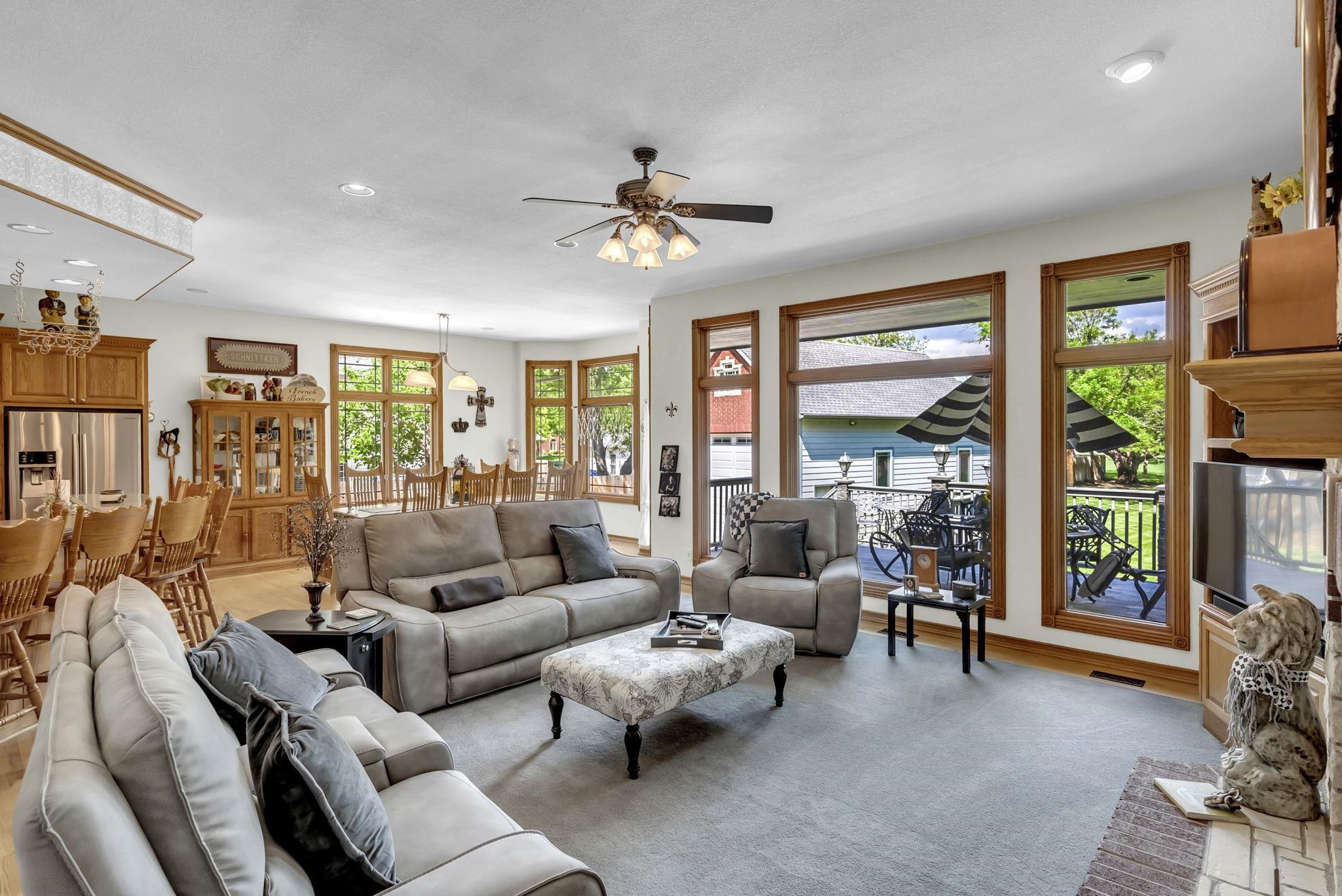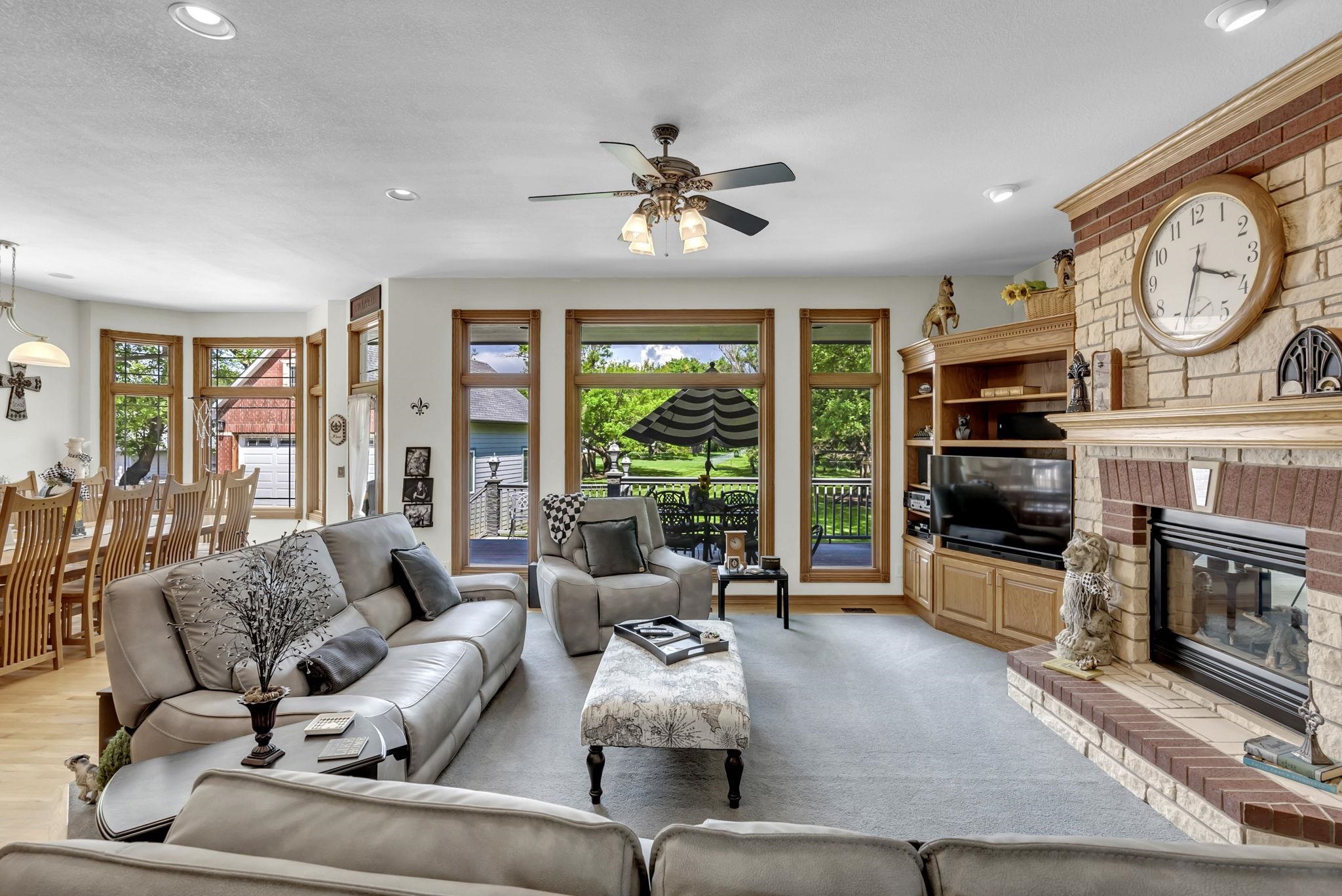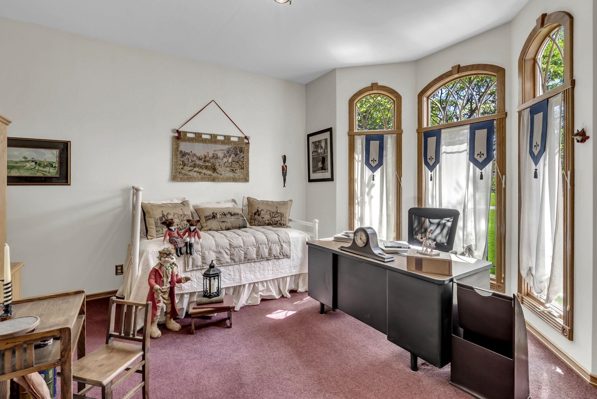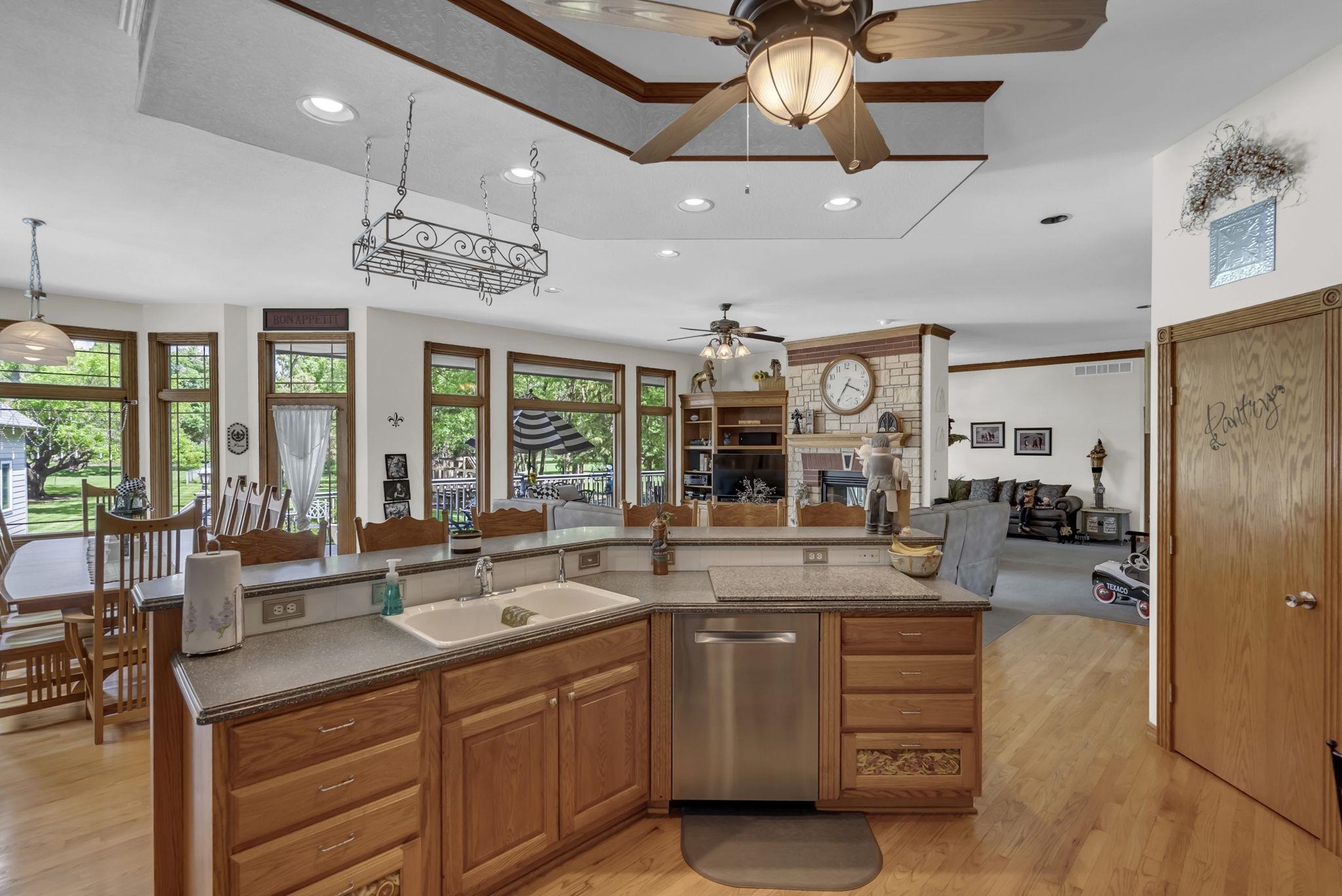 - Description: Amazing Tudor architectural designed 1 story home that features traditional, formal and charming characteristics that make this a one of a kind. This specifically designed one owner home shows pride of ownership. Situated on 1.17 acres with mature trees and beautiful surroundings. The exterior has beautiful curb appeal and a court yard to enhance the entry appeal. Brick exterior, 40x12 deck, 3 car attached oversized side load garage and detached oversized garage with two overhead doors. The interior compliments the exterior design. Impressive entryway. Tall windows and window groupings that include bay windows. Arched doorways and more. Two way stone fireplace on main floor with built in cabinets for TV placement and accessories. Hard surface counters. Wood, carpet and tiled flooring. High quality craftsman-style woodwork. Desirable open kitchen with a free standing island and eating bar that seats 6. Desk, Walk in pantry, and Surround sound. All complimented by the high ceilings through out. Dining room that is spacious enough for a table that seats 14. Formal living space. Glass door entry into one of the main floor bedrooms. All main floor bedrooms feature walk-in closets and built in desks. The main floor master suite has access to the spacious deck, includes decorate high ceilings, a private master bath that boasts a soaker tub and separate shower, vanities and separate dressing room, a sizeable walk-in closet with built in dressers. The 17x10 laundry room includes a multi-functional hall tree, desk, spacious counters, full size sink and more. The lower level is designed for entertainment. Game room. Wet bar, A play room under the stairs. Amazing family room with incredible built in entertainment center and fireplace. Powder room for guests. Two additional spacious bedrooms, amazing walk in closets., Jack & Jill bath and so much more. Plenty of storage space. Well maintained mechanical room, storm room. Zoned HVAC system, two water tanks. So many design secrets to honor this home. Rio Vista Estates! Walking distance to the Arkansas River that surrounds this community of homes. Show all description