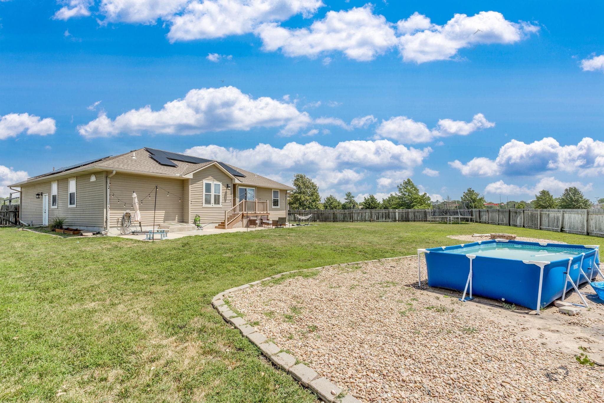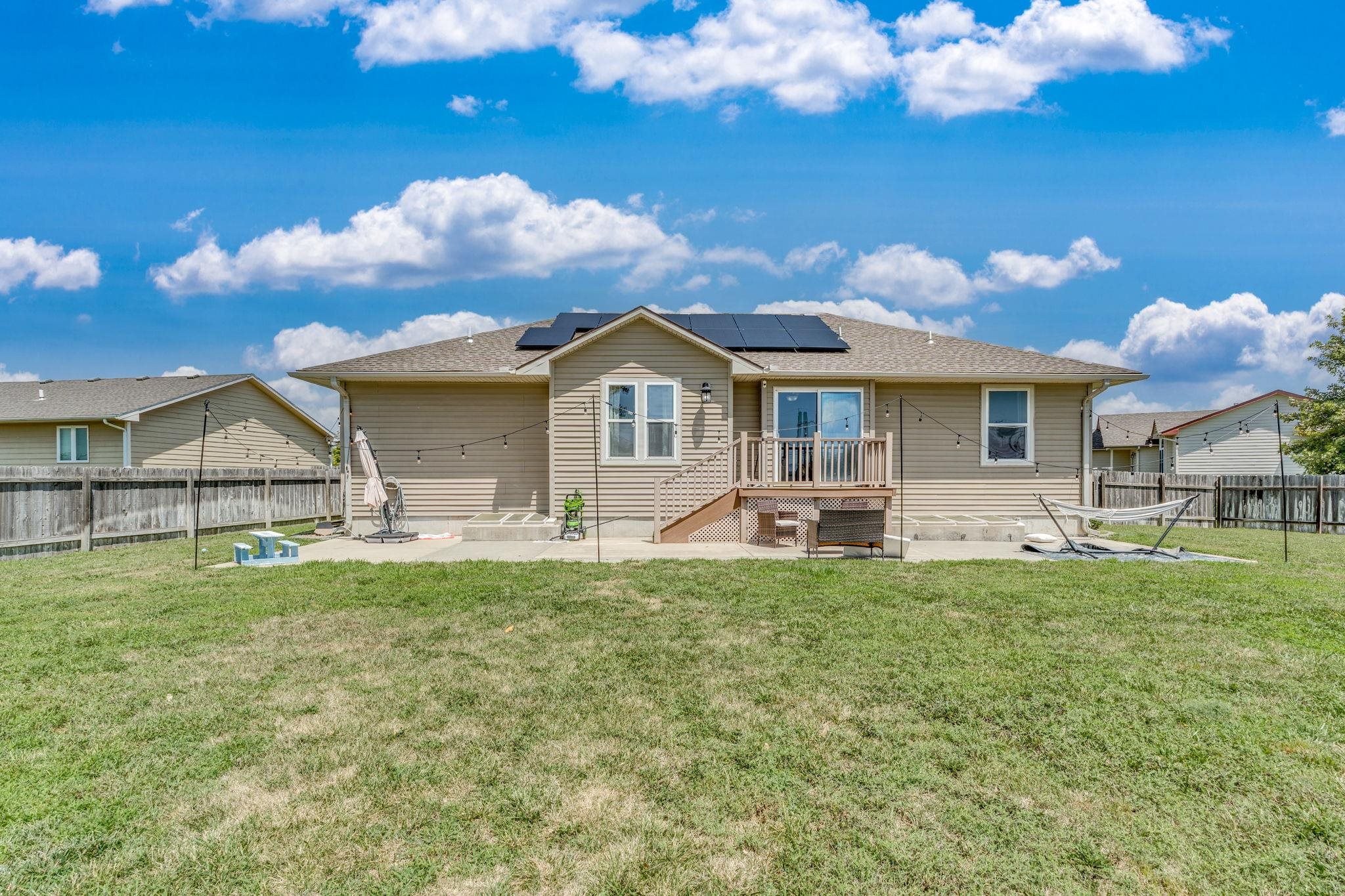 - Description: Welcome to this spacious 5 bedroom, 3 bath home with a two-car garage, located in the desirable Monarch Meadows Addition in Hutchinson, KS. Situated on a half acre lot, this property features a fully fenced in backyard, perfect for entertaining, pets or outdoor activities for the kids. Step inside to an open concept living room and kitchen, ideal for family gatherings and everyday living. The home offers a large family room in the basement, providing even more space to spread out. With brick and vinyl siding, the exterior is low maintenance and built to last. Enjoy the convenience of being close to a walking/ bike path and enjoy the newly built Play Haven Memorial Park, making it a great location for all lifestyles. The sellers are offering a $3,000 buyer credit with an accepted offer, with the flexibility to use it however buyer sees fit, closing costs, rate paydown or upgrades to the property. Don't miss your chance to make this wonderful home yours! Show all description