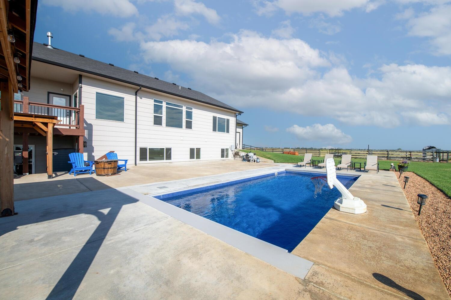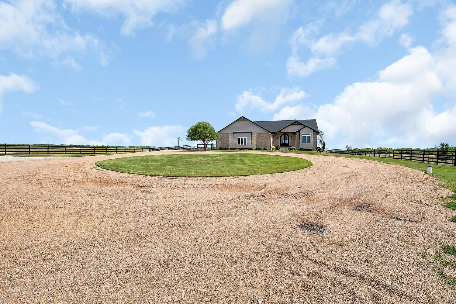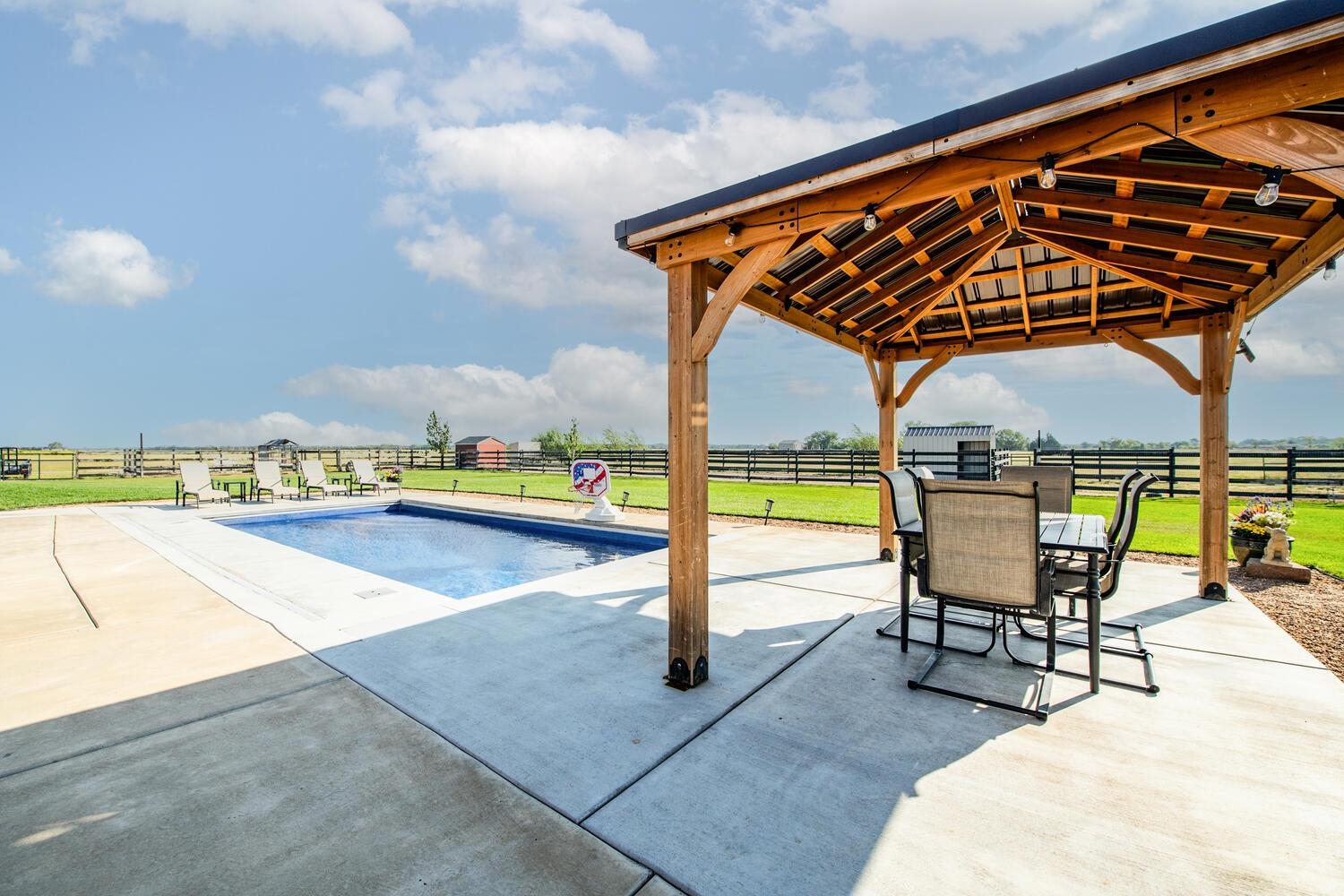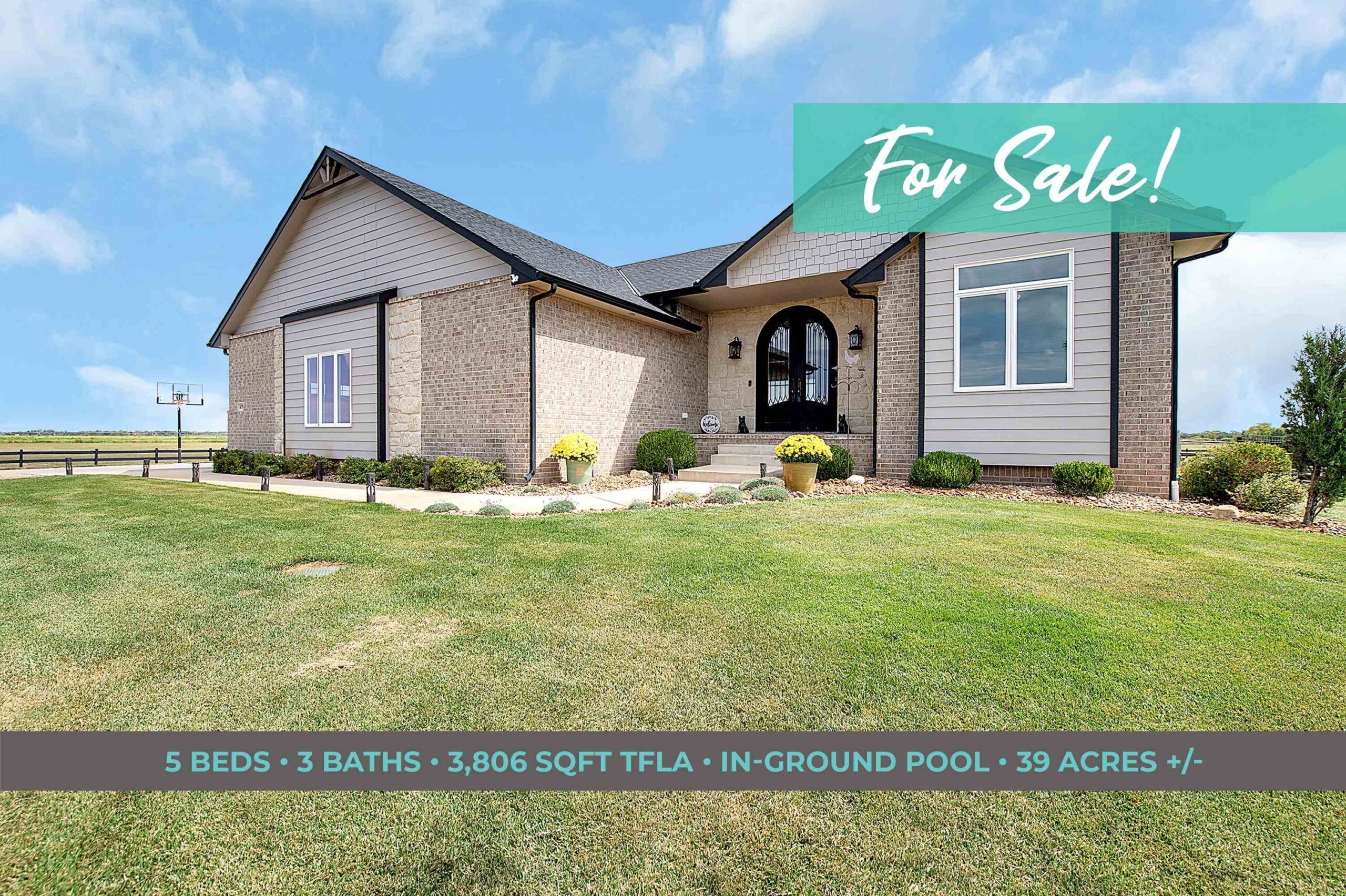 - Description: Experience unparalleled country living in this exquisite home, where elegance meets functionality on 39.16 Acres. As you approach, you'll be greeted by a spacious circular driveway with ample parking, leading you to the stunning grand front porch adorned with cathedral iron double doors. Step inside to an open-concept living area that seamlessly integrates the dining and kitchen spaces, bathed in natural light from large windows that highlight the stunning quartz countertops, an inviting eating bar, and high-end cabinetry. The cozy fireplace promises warmth and comfort for the winter months. The main level features three thoughtfully designed bedrooms, including a luxurious primary suite complete with a freestanding tub, a separate shower, dual sinks, and a private water closet. Rustic wood beams add a touch of warmth and charm to the space. An additional guest bath ensures convenience for visitors. The lower level offers an expansive family room perfect for entertaining, alongside two additional bedrooms, a full bath, and a versatile office niche. Also, a built in Wet bar with refrigerator. Also a storm shelter is under the front porch space in the basement for your safety. Outside, this meticulously maintained property boasts a fully fenced yard, with fencing for a dog run or chickens, and faces east to capture the morning sun. Enjoy the brand-new saltwater inground pool and relax under the beautifully constructed pergola. A 32 x 14 outbuilding with 14ft ceilings floor to truss that provides ample storage. A serene pond offers a unique spot for duck hunting. The property also includes a UV and chlorinator system for the well water and a generator circuit. Don’t miss the opportunity to own this extraordinary home—where every detail has been thoughtfully crafted for luxurious country living. Show all description