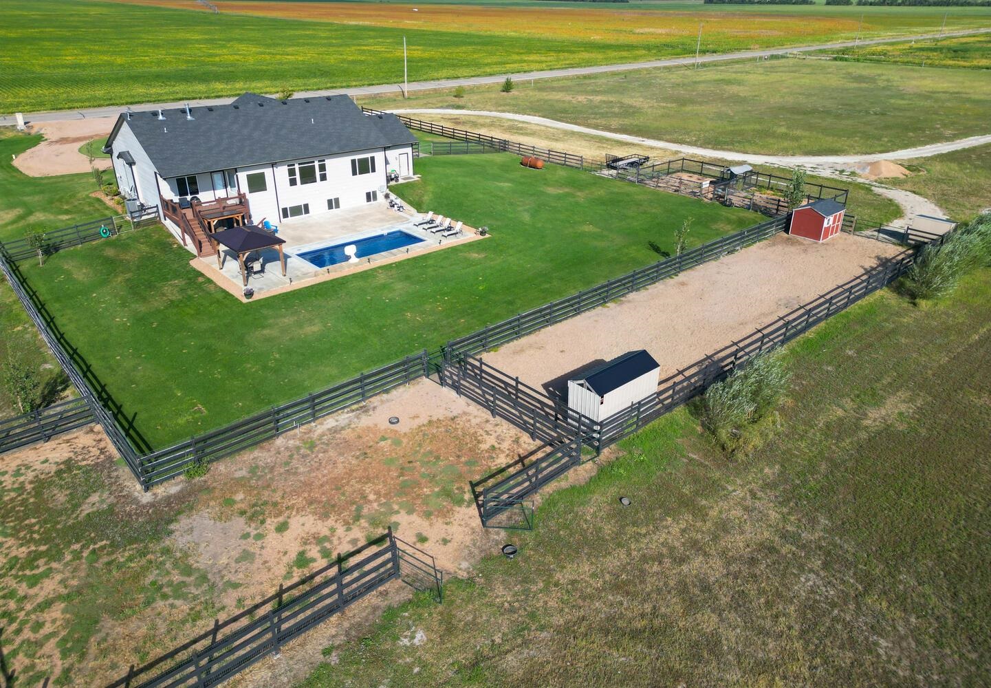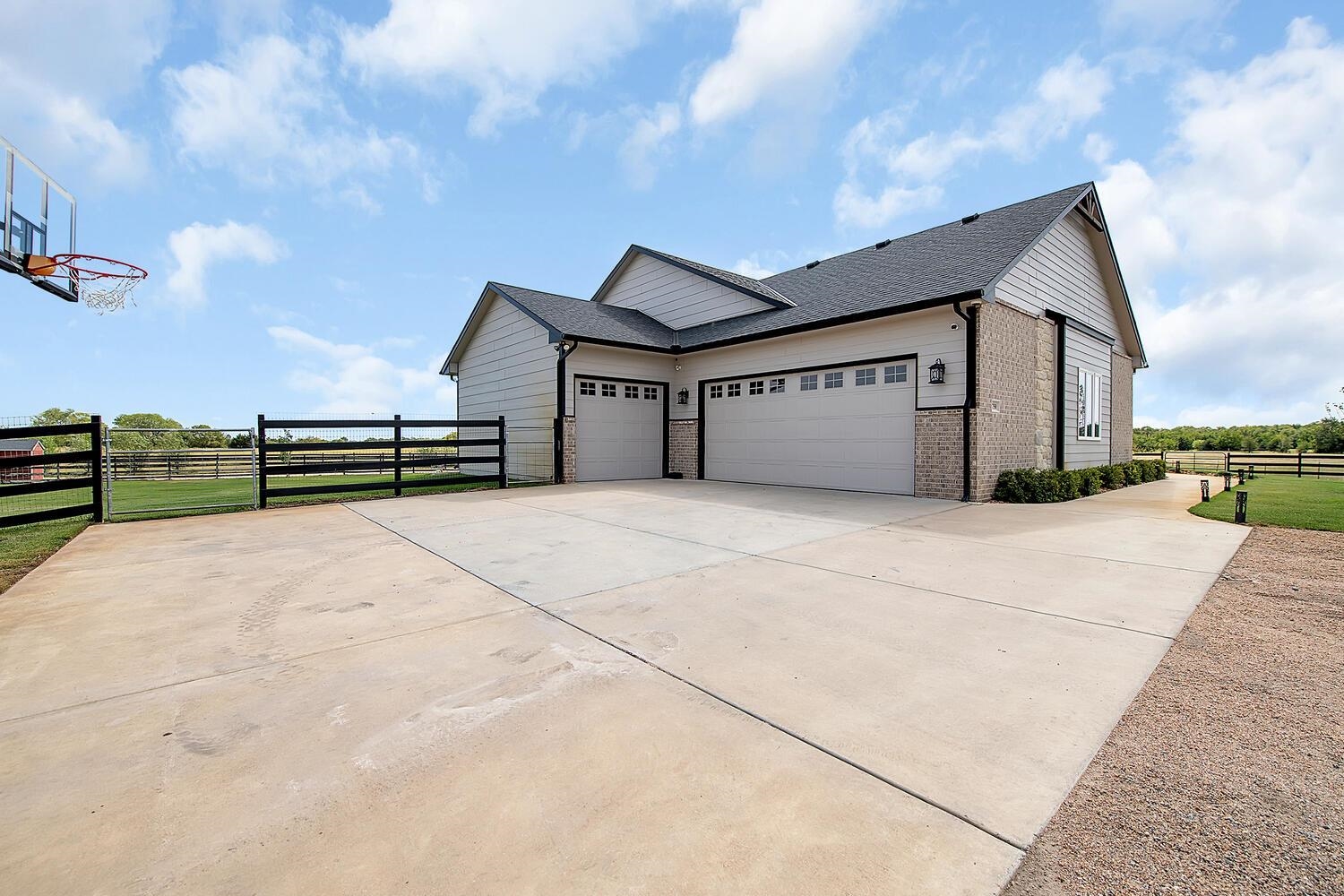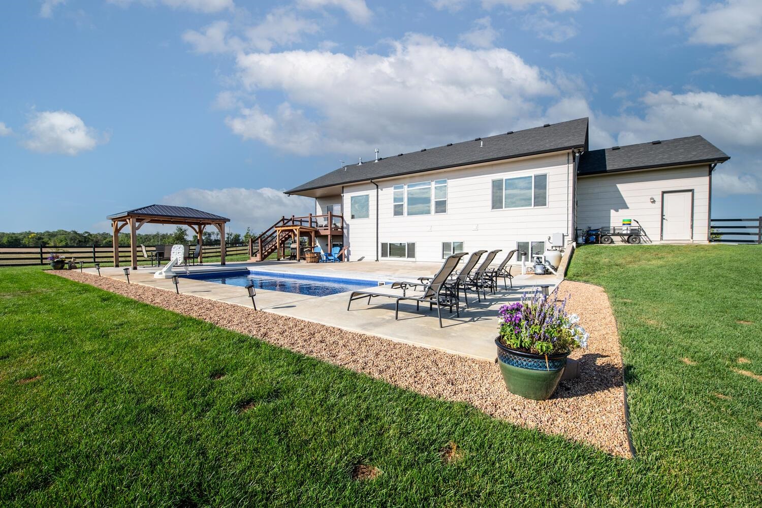 - Description: Experience unparalleled country living in this exquisite home, where elegance meets functionality on 39.16 Acres. As you approach, you'll be greeted by a spacious circular driveway with ample parking, leading you to the stunning grand front porch adorned with cathedral iron double doors. Step inside to an open-concept living area that seamlessly integrates the dining and kitchen spaces, bathed in natural light from large windows that highlight the stunning quartz countertops, an inviting eating bar, and high-end cabinetry. The cozy fireplace promises warmth and comfort for the winter months. The main level features three thoughtfully designed bedrooms, including a luxurious primary suite complete with a freestanding tub, a separate shower, dual sinks, and a private water closet. Rustic wood beams add a touch of warmth and charm to the space. An additional guest bath ensures convenience for visitors. The lower level offers an expansive family room perfect for entertaining, alongside two additional bedrooms, a full bath, and a versatile office niche. Also, a built in Wet bar with refrigerator. Also a storm shelter is under the front porch space in the basement for your safety. Outside, this meticulously maintained property boasts a fully fenced yard, with fencing for a dog run or chickens, and faces east to capture the morning sun. Enjoy the brand-new saltwater inground pool and relax under the beautifully constructed pergola. A 32 x 14 outbuilding with 14ft ceilings floor to truss that provides ample storage. A serene pond offers a unique spot for duck hunting. The property also includes a UV and chlorinator system for the well water and a generator circuit. Don’t miss the opportunity to own this extraordinary home—where every detail has been thoughtfully crafted for luxurious country living. Show all description