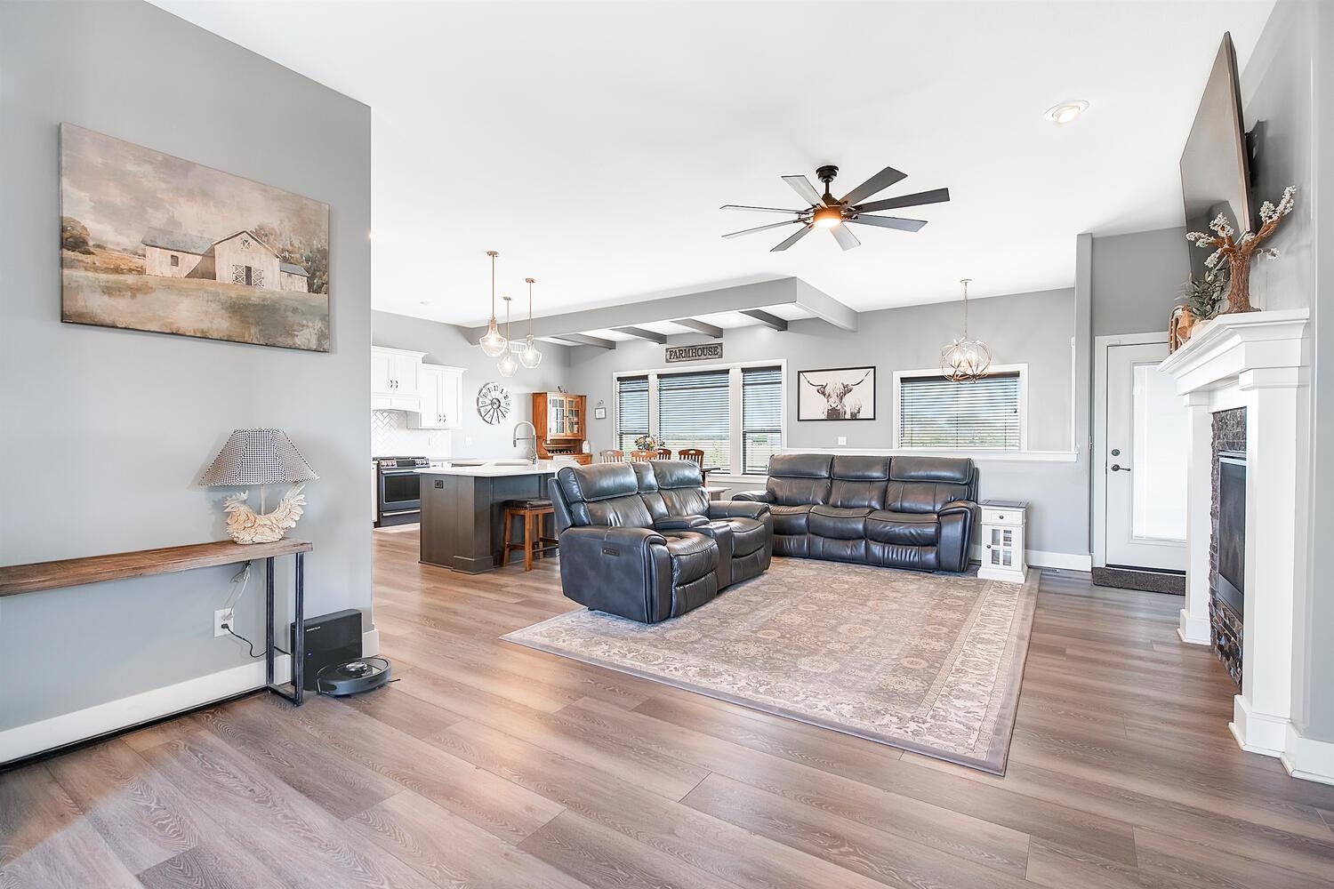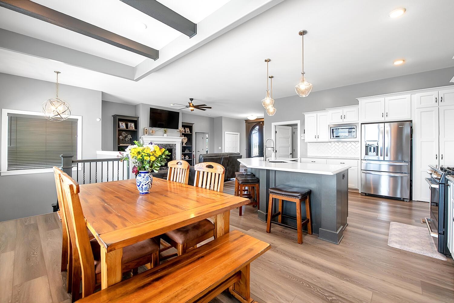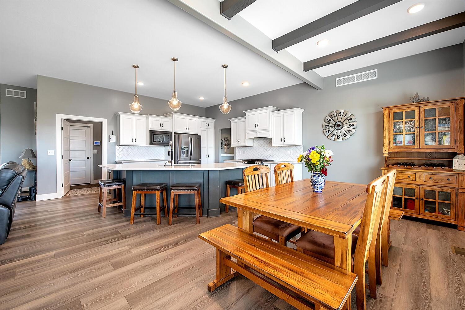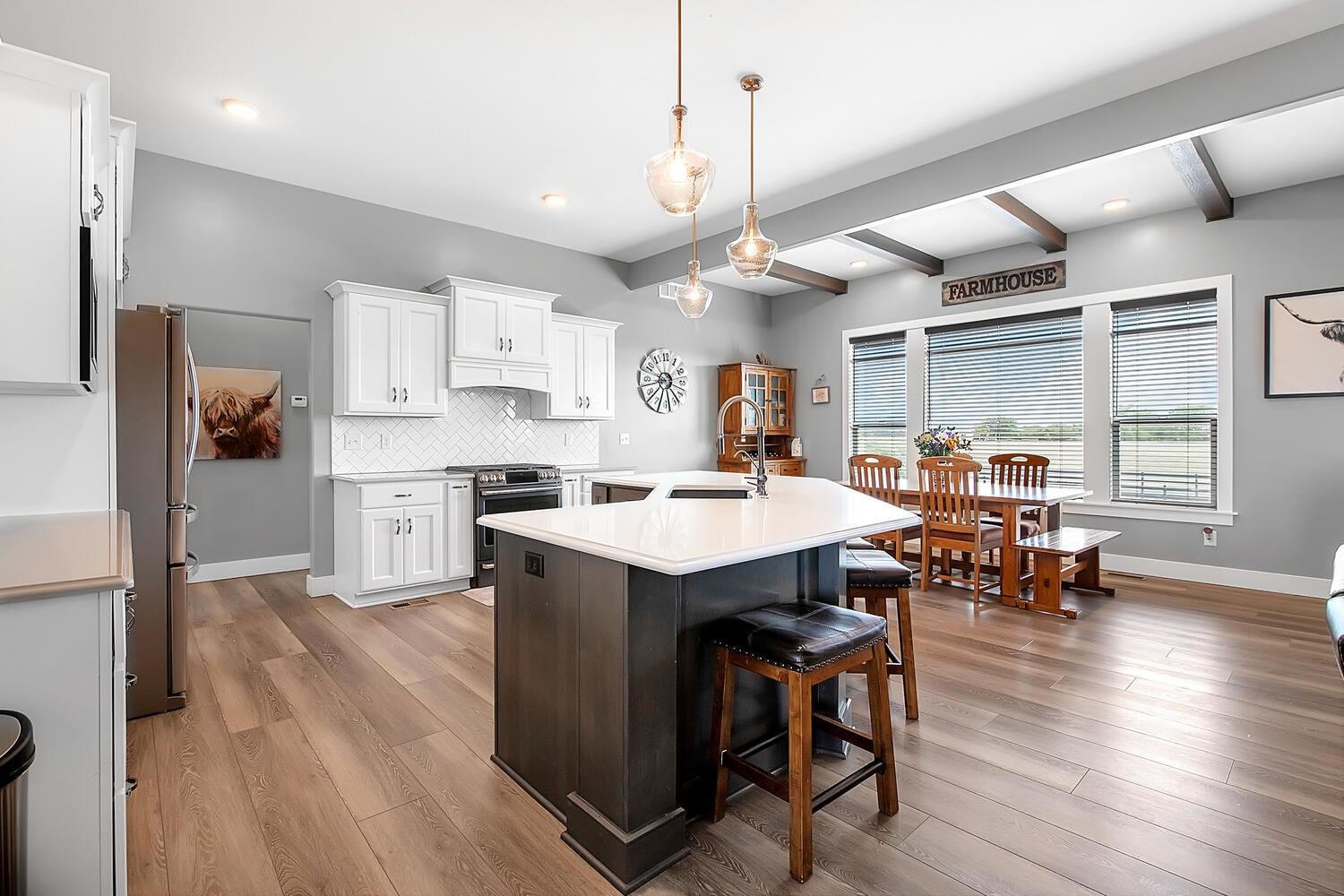 - Description: Experience unparalleled country living in this exquisite home, where elegance meets functionality on 39.16 Acres. As you approach, you'll be greeted by a spacious circular driveway with ample parking, leading you to the stunning grand front porch adorned with cathedral iron double doors. Step inside to an open-concept living area that seamlessly integrates the dining and kitchen spaces, bathed in natural light from large windows that highlight the stunning quartz countertops, an inviting eating bar, and high-end cabinetry. The cozy fireplace promises warmth and comfort for the winter months. The main level features three thoughtfully designed bedrooms, including a luxurious primary suite complete with a freestanding tub, a separate shower, dual sinks, and a private water closet. Rustic wood beams add a touch of warmth and charm to the space. An additional guest bath ensures convenience for visitors. The lower level offers an expansive family room perfect for entertaining, alongside two additional bedrooms, a full bath, and a versatile office niche. Also, a built in Wet bar with refrigerator. Also a storm shelter is under the front porch space in the basement for your safety. Outside, this meticulously maintained property boasts a fully fenced yard, with fencing for a dog run or chickens, and faces east to capture the morning sun. Enjoy the brand-new saltwater inground pool and relax under the beautifully constructed pergola. A 32 x 14 outbuilding with 14ft ceilings floor to truss that provides ample storage. A serene pond offers a unique spot for duck hunting. The property also includes a UV and chlorinator system for the well water and a generator circuit. Don’t miss the opportunity to own this extraordinary home—where every detail has been thoughtfully crafted for luxurious country living. Show all description