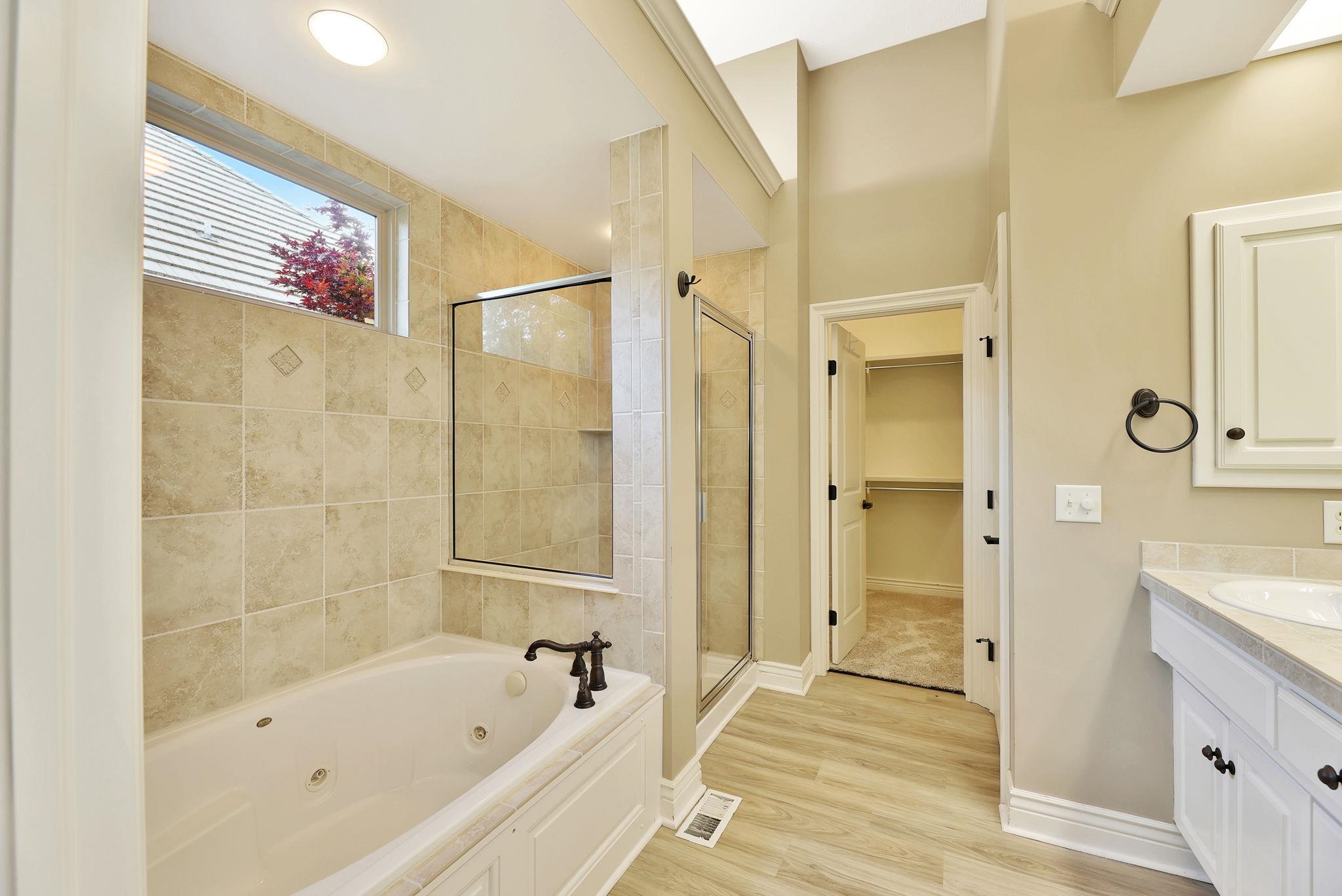 - Master Bedroom: Master Bdrm on Main Level, Sep. Tub/Shower/Mstr Bdrm, Two Sinks, Tile Counters, Jetted Tub, Water Closet