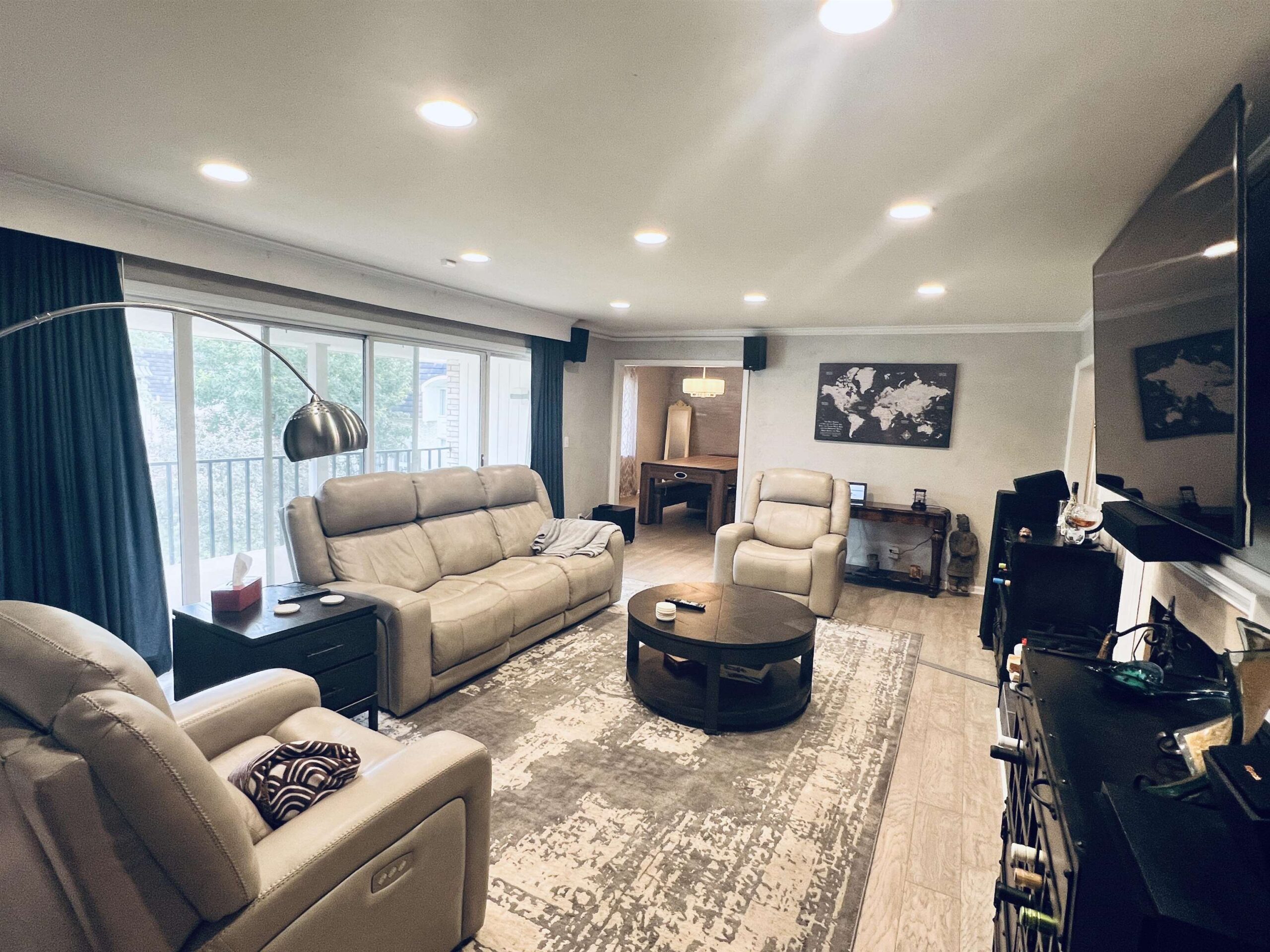 - Description: Highly sought-after luxury condo in The Chaumont! This expansive unit is one of the largest in the development and offers stunning views of the beautifully landscaped courtyard from the oversized balcony and large windows. The current owner had each room elegantly faux painted; with a unique style you will not find anywhere else. Featuring 3 spacious bedrooms, 2 of which have their own full bathrooms, 1 additional full bathroom, and a convenient half bath, this home is ideal for both comfort and flexible living. Enjoy the benefit of two primary suites—perfect for multi-generational families, guests, or long-term visitors. The main primary suite is generously sized to accommodate a king-sized bed and additional furniture and includes a walk-in closet and a spa-inspired ensuite bathroom with a jacuzzi tub, multi-spray shower system, built-in radio, and soothing mood lighting. The second suite also offers a private full bathroom and a walk-in closet, providing comfort and privacy. The third bedroom features a full wall of built-in shelving and overlooks the serene courtyard. A large separate dining room, oversized living room, eat-in kitchen, and full-size laundry area complete the functional floor plan. Step out onto the spacious concrete deck—perfect for morning coffee or unwinding in the evening with peaceful courtyard views. This condo even has its own private entrance to entering or leaving is always convenient! You could possibly even add an elevator in place of the stairs! Additional features include two covered parking spaces and private basement storage. Residents enjoy access to the community courtyard with a tranquil fountain and patio areas, a newly renovated community guest room, and a beautifully updated community club room. This is a rare opportunity to own a premier unit in The Chaumont! Condo Fees are around $550 a month to enjoy an almost maintenance free living! All kitchen appliances stay, and washer/dryer are negotiable. Schedule your showing today! Show all description
