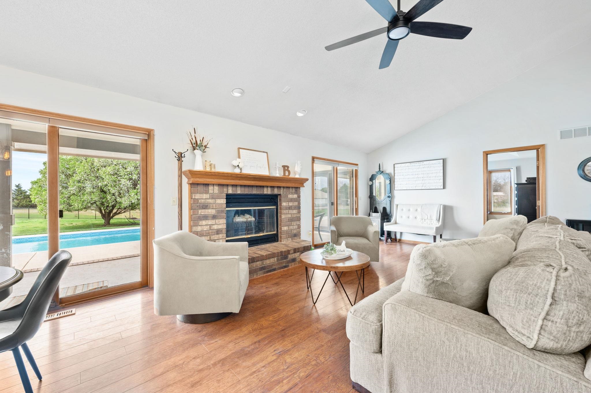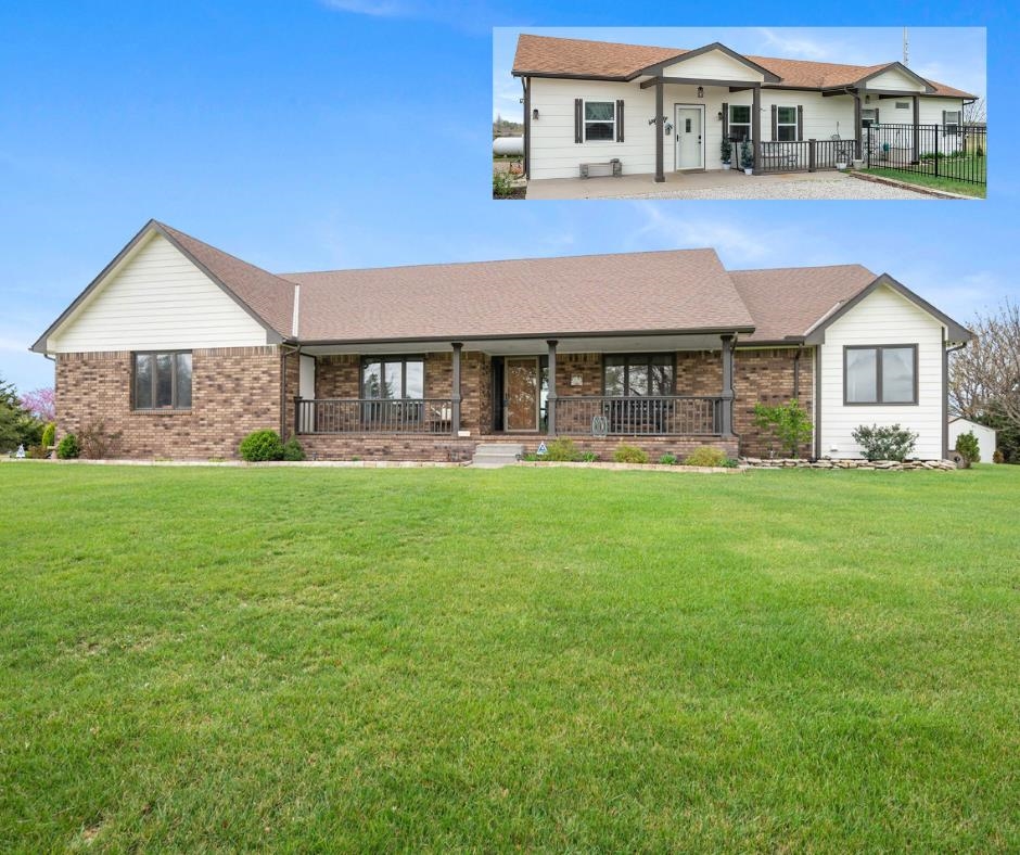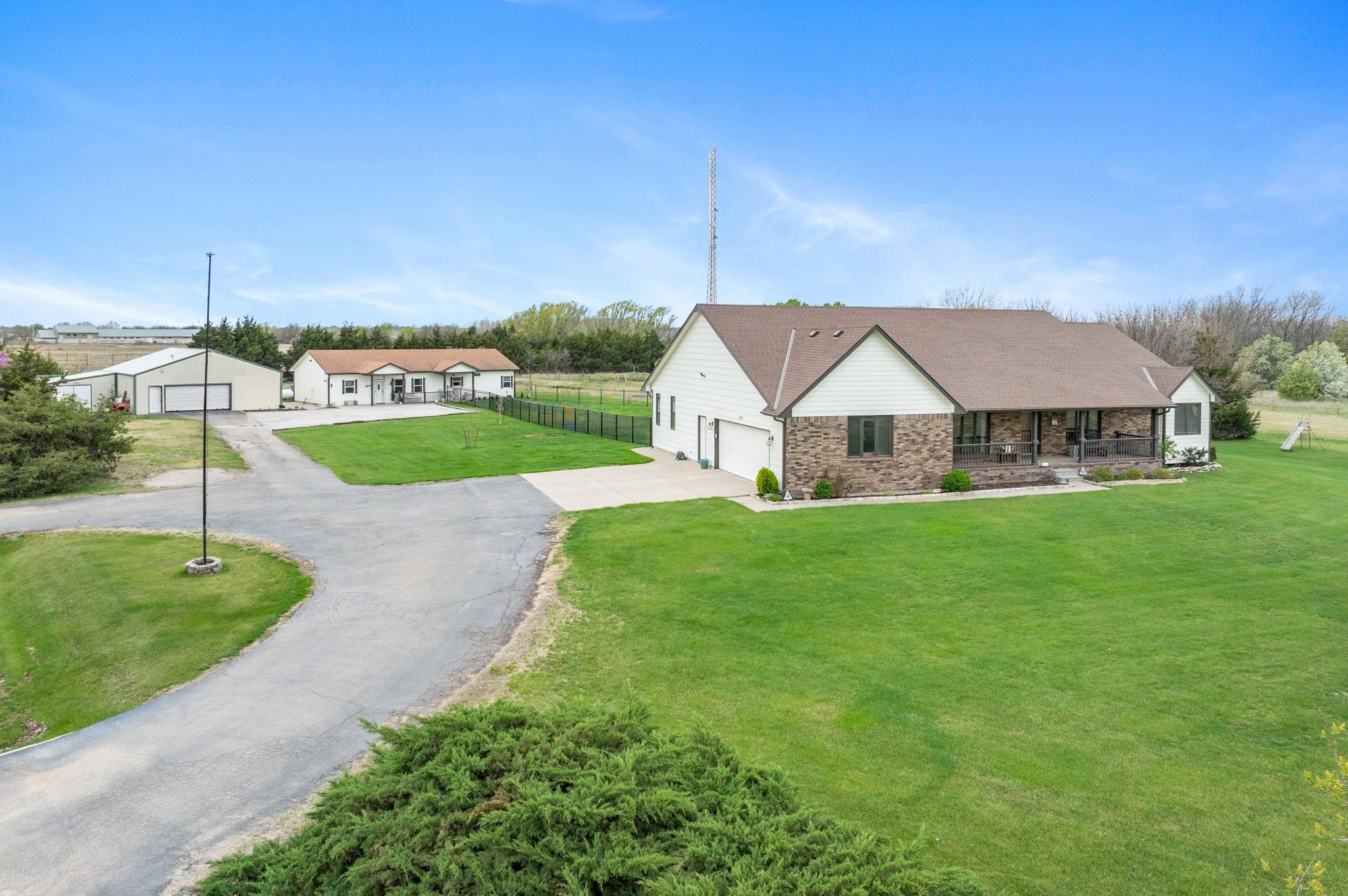 - Description: Online only auction, bidding closing July 24th at 2:00 PM. Don’t miss your chance to own this rare 5-acre estate in the highly sought-after Goddard School District! This custom-built property offers two homes, a shop, a pool, and room to spread out—perfect for multigenerational living, guests, or income potential. The main home features two spacious master suites with private entrances, an updated kitchen with granite countertops, Jenn Air range, and rich wood floors. Cozy up by two wood-burning fireplaces with blowers, and enjoy year-round comfort with a geothermal HVAC system and tankless water heater. The finished walkout basement includes its own entrance, full living space, bedroom, bath, laundry, and another non-conforming bedroom. Need extra space? The 1,100 sq. ft. guest home offers 3 beds, 2 baths, full kitchen/living area, and washer/dryer hookups. Perfect for extended family, visitors, or even VRBO! Separate propane heat and security lighting serve both homes and the barn. A 30x40 pole barn with 16x20 addition and RV power hookup are ready for all your hobbies and storage needs. Both homes have fresh exterior paint, and the pool is the perfect spot to enjoy those stunning Kansas sunsets. This property has it all—space, versatility, and peace—all just minutes from town. Bid now and make this one-of-a-kind retreat yours! Property is selling in its “as-is” present condition and is accepted by the buyer without any expressed or implied warranties. It is the buyer’s responsibility to have any and all inspections completed prior to bidding. The buyer and seller shall split equally in the cost of the title insurance and the closing fee. ALL taxes will be prorated to the day of closing. Bidding is not contingent upon financing. Closing to take place on or before 30 days from the auction closing date. The Seller reserves the right to accept any offer made prior to the auction's close, regardless of the current highest bid, only if the reserve price has not been met. In the event of an acceptable pre-auction offer, the auction will be immediately terminated and the highest bidder notified. Non-refundable earnest money deposit due at the conclusion of the auction in the amount of $25,000. Show all description