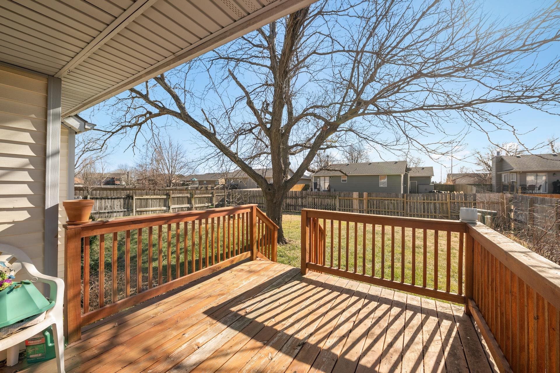 - Description: Welcome home to convenience in this 4-bedroom, 3-full-bath home tucked into a desirable Northwest location in Maize and within the Maize School District. Surrounded by mature trees, this home offers the perfect blend of peaceful neighborhood living and quick access to everything you need & with a little TLC, it could be just the home you’re looking for. Step inside to a large living room where engineered wood floors and a tiled gas fireplace create a warm space. Just steps away, the dining area flows effortlessly into a kitchen featuring tile floors, Corian countertops, a tiled backsplash, an eating bar, and an abundance of cabinetry. Best of all, all kitchen appliances stay. Main-floor laundry adds everyday convenience right where you need it. The primary suite offers a spacious bedroom with wood laminate flooring and a private ensuite bath complete with double sinks, Onyx countertops, tile floors, and a large walk-in shower. The walk-in closet provides excellent storage. An additional main-level bedroom and a hall bath with Onyx countertops and a tub/shower combo round out the main floor. Downstairs, the finished daylight basement is built for both entertaining and family time. The huge family room features a large wet bar. The TV stays with the mounts, so you’re ready to relax from day one. Two more bedrooms—perfect for older kids, guests, or a home office—are located here, along with a third full bath featuring Onyx countertops and a stand-alone shower. Outside, enjoy evenings on the semi-covered deck, overlooking a fenced backyard with a wood privacy fence, sprinkler system, and irrigation well. Low-maintenance vinyl siding, a newer hot water heater, and a water softener add peace of mind. All of this is just minutes from schools, churches, restaurants, Maize Road shopping, and New Market Square. In addition, it sits in a desirable school District! Call today for your own private showing! Show all description