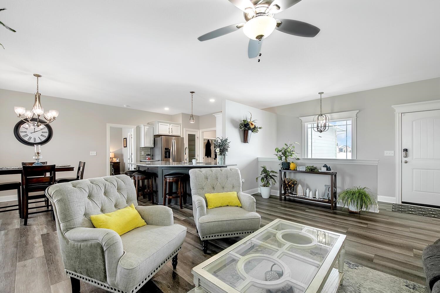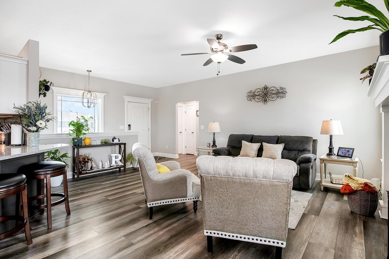 - Description: ASSUMABLE LOAN at 2.75%!!! Call for more info! Come on out and see this Beautiful Custom Built Home w/ 5 Bedrooms, 3 Baths and Oversized 3 car Garage with an Overhead door on the back on the 28' 3rd Car stall 🙂 Finished View-out Basement includes a HUGE Family Room, 4th and 5th bedrooms & 3rd bath. Privacy Fenced in Backyard, Sod, Sprinklers and Irrigation well. Covered Deck with Custom Cedar Blinds! Tons of Upgrades inside include Granite countertops in kitchen, New Cabinet Pulls, Quartz countertops in Master and hall baths, Luxury Vinyl Planks in Main Living area. Luxury Master Bath upgrades, Drop Zone with Bench & Hooks. Walk in Pantry, Walk in Closet, Class 4 Roof Shingles, Concrete Siding, Stone Accents on the Front of the home, Wood Burning Fireplace w/ gas Starter & Blower. Upgraded Appliances, sink and Faucet. Security System and Sooo Much MORE! Must See ! Show all description