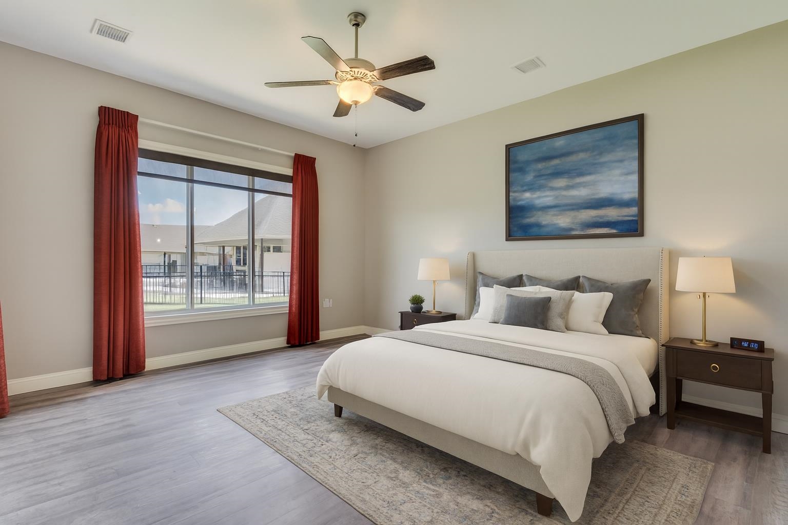 - Description: Beautifully designed custom-built patio home with thoughtful details and modern convenience throughout. This zero-entry, ADA-compliant home was built in 2020 and has had only one owner. The open main level offers two spacious bedrooms and two full baths, including a primary suite with a roll-in shower. Wide doorways and an easy-flow floorplan make the home comfortable and accessible. The kitchen features a large island with granite countertops, walk-in pantry, and plenty of storage, opening to the living and dining areas with views of the lake. Additional highlights include a safe room, dedicated laundry space, and an oversized two-car garage. Enjoy peaceful evenings on the screened-in patio overlooking the water or take advantage of the neighborhood clubhouse and pool just steps away. Upstairs, a private second level provides a large family room, bedroom, full bath, and storage—perfect for guests or multi-generational living. Show all description