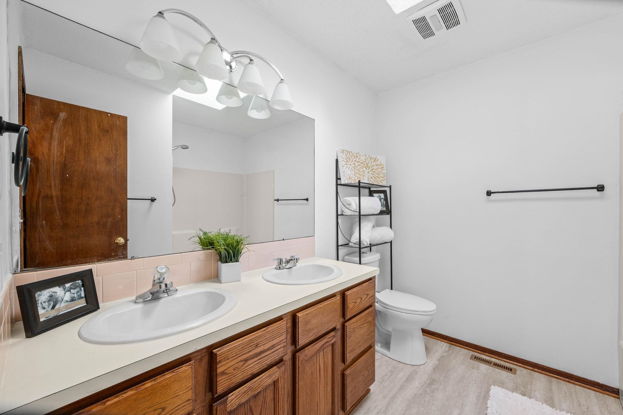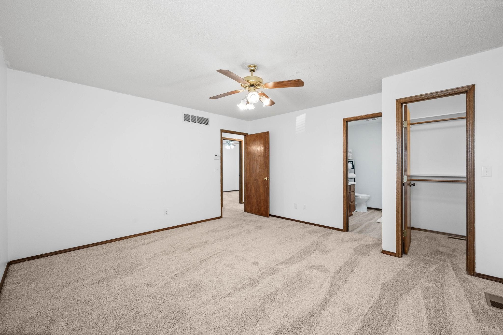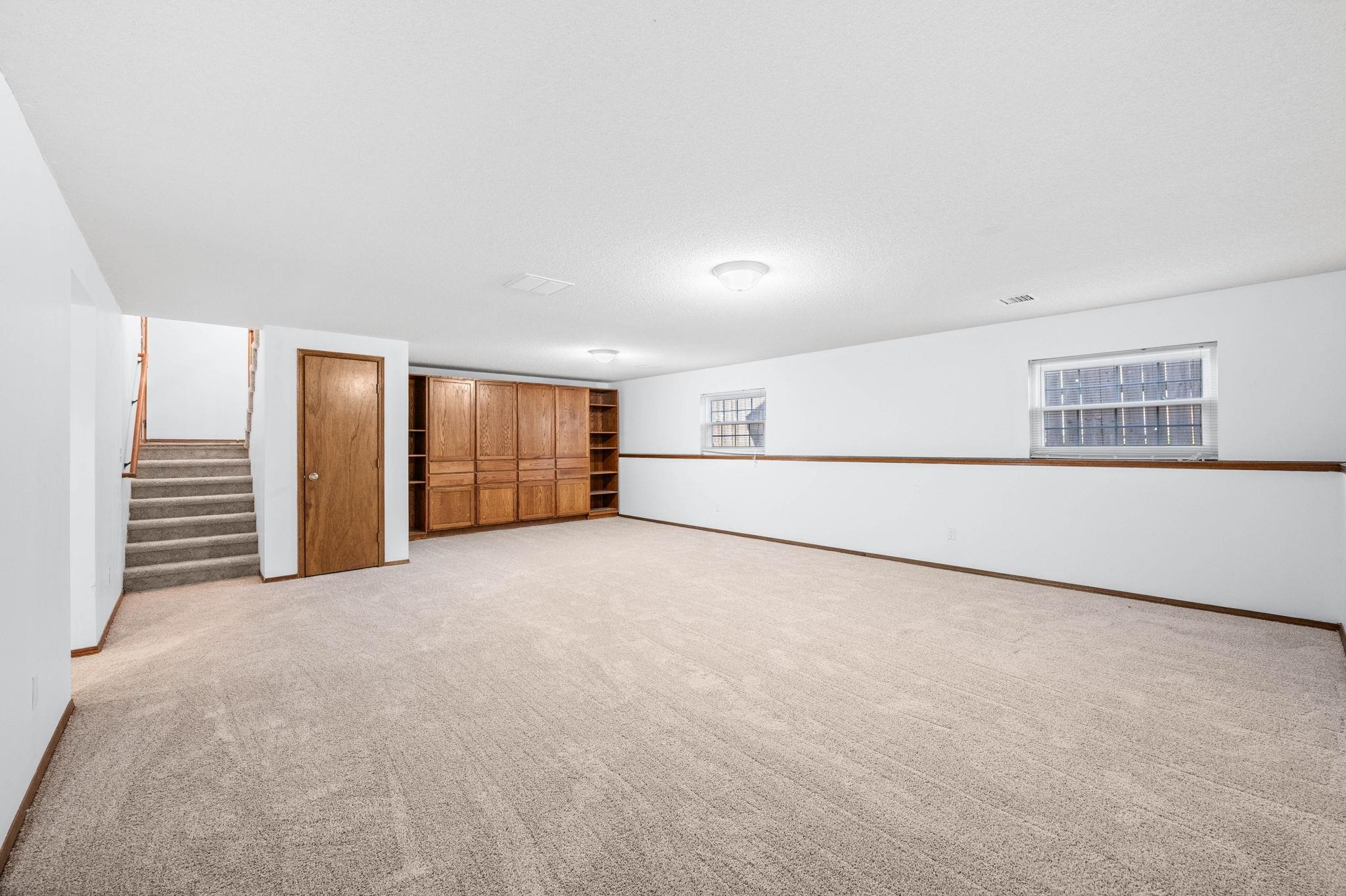 - Description: BUYER'S FINANCING FELL THROUGH! Brand new flooring and paint throughout this great home PLUS new roof gutters and downspouts! Spacious rooms, with 3 bedrooms and 2 full baths on the first floor including primary en-suite. Full finished view out basement with 2 more bedrooms and another full bath. Covered deck, fenced yard with large storage shed and sprinkler system. New AC in 2023! Relocation docs MUST accompany all offers. Show all description
