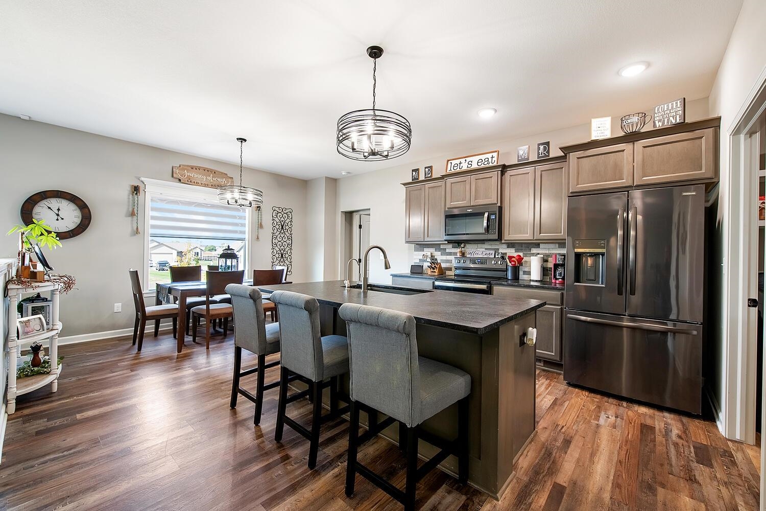 - Description: Must See! 5 Bedroom 3 Bath, 3 Car Garage Mid Level Landing Walk-Out Finished Basement Home with Sooo Many upgrades you Just Have to come see them for yourself :):) Such as... Granite countertops in the Kitchen, LVP Floors in the Kitchen, Dining and Living area, Walk-in Pantry, Main Floor Laundry, Master bathroom with Dual sinks, Linen closet, shower with built-in Seat, Toilet closet and Walk-in Closet! Full finished basement has wet bar plumbing ready for you to add your own Bar! View Out windows, Storage, Privacy Fenced in Backyard with a Covered Patio:) Beautiful Custom Blinds, Super Cute Drop Zone to put your stuff when you come into the house and Double Garage door openers !! Brand New Exterior Paint ! Show all description