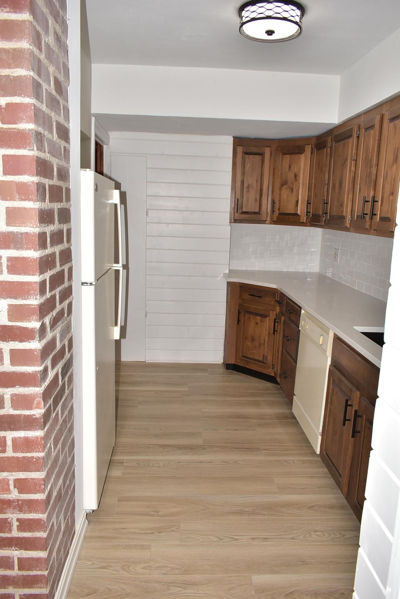 - Description: This is the one! Welcome to your new home. This wonderful two bedroom, 1.5 bath house was built with lasting quality in mind and remodeled for your long lasting enjoyment. With 10" basement/foundation concrete walls this house is SOLID! Check out the newly professionally finished wood floors in the bedrooms, living room and dining room. The updated, modified galley style kitchen features a range/oven, dishwasher, disposer and a new refrigerator plus new LVP flooring, Quartz counter tops, underhung sink and subway tile backsplash. The main bathroom features a new toilet and anew vanity/sink. The basement features a large unfinished area that could be converted into future living area plus a nice laundry area with a new toilet and wash sink. Even during our crazy rain events this spring/summer this basement has remained dry as the Sahara. Added to all of there features are all new low "E", dual pane windows for great efficiency, all new interior and exterior paint using Sherwin Williams top of the line paint, new water supply valves, new ceiling light fixtures, ceiling fans and bathroom and kitchen sink faucets, new insulated garage door. The home is located two blocks from popular Schweiter Park where you can enjoy tennis and basketball courts plus a playground. Close to Kellogg/US 54-US400 for easy access to just about anywhere. The yard has loads of perennials like Peonies, Iris, Lilac, Day Lily etc. Show all description