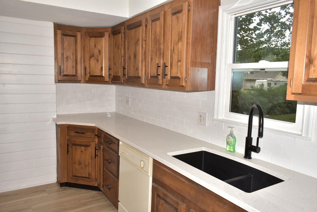 - Description: This is the one! Welcome to your new home. This wonderful two bedroom, 1.5 bath house was built with lasting quality in mind and remodeled for your long lasting enjoyment. With 10" basement/foundation concrete walls this house is SOLID! Check out the newly professionally finished wood floors in the bedrooms, living room and dining room. The updated, modified galley style kitchen features a range/oven, dishwasher, disposer and a new refrigerator plus new LVP flooring, Quartz counter tops, underhung sink and subway tile backsplash. The main bathroom features a new toilet and a new vanity/sink. The basement features a large unfinished area that could be converted into future living area plus a nice laundry area with a new toilet and wash sink. Even during our crazy rain events this spring/summer this basement has remained dry as the Sahara. Added to all of there features are all new low "E", dual pane windows for great efficiency, all new interior and exterior paint using Sherwin Williams top of the line paint, new water supply valves, new ceiling light fixtures, ceiling fans and bathroom and kitchen sink faucets, new insulated garage door. The home is located two blocks from popular Schweiter Park where you can enjoy tennis and basketball courts plus a playground. Close to Kellogg/US 54-US400 for easy access to just about anywhere. The yard has loads of perennials like Peonies, Iris, Lilac, Day Lily etc. Show all description