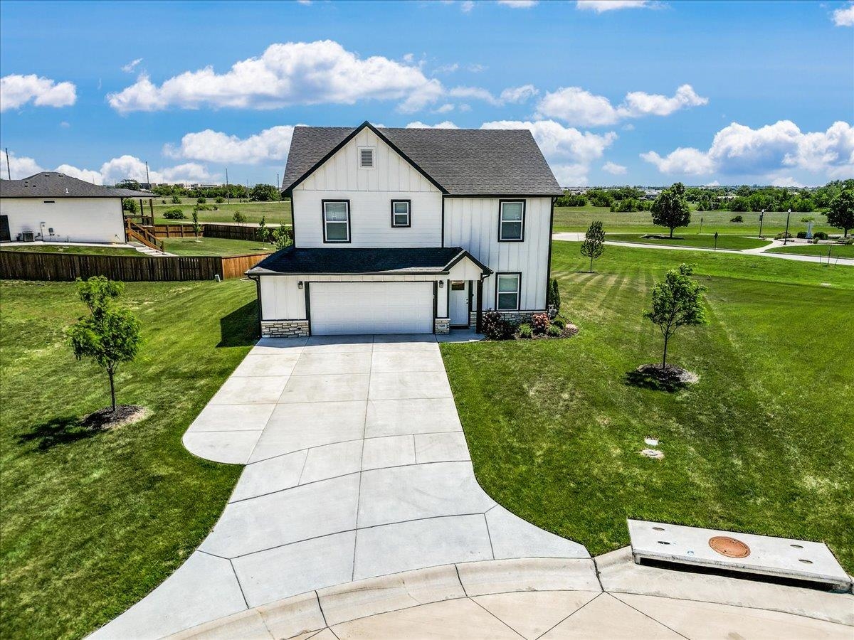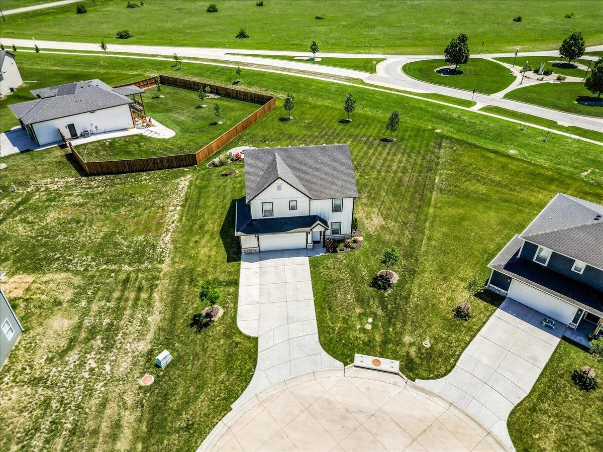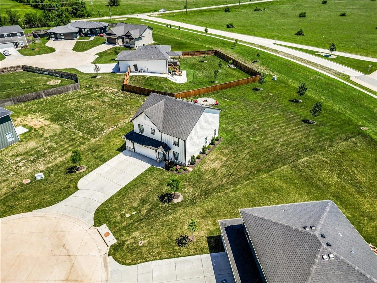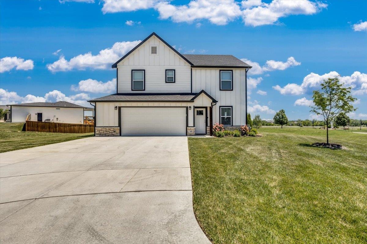 - Description: Welcome to 7689 E. Pheasant Ridge Ct., a beautifully designed two-story home, built in 2022, situated on a spacious 0.44-acre lot tucked away at the end of a quiet cul-de-sac. This home has it all and features 5 large bedrooms, 3 bathrooms, & boasts approximately 2, 200 sq ft of up to date, modern living space, perfect for both relaxation and entertainment. Step inside to discover an inviting open-concept layout that seamlessly connects the living, dining, and kitchen areas, making it ideal for entertaining and everyday living. The well-appointed kitchen, complete with modern appliances, granite countertops, a walk-in pantry, and ample counter space, is perfect for preparing meals and gathering with loved ones. You’ll find one bedroom with a walk-in closet and a full bath, conveniently located on the main floor as well. Upstairs, retreat to the primary bedroom, complete with a vaulted ceiling, a private bathroom, and an impressive walk-in closet. The additional three bedrooms each feature their own walk-in closets, providing abundant storage for all your needs. An upper level centrally located laundry room adds to the home’s convenience. Don't forget the storm shelter in the finished garage! Make the most of your expansive backyard with the extended patio including a beautiful gable style roof and custom fire pit, perfect for summer barbecues, playtime, or simply unwinding and enjoying the exceptional Kansas views. Aside from the house, the vibrant, but relaxing, community of Central Park is conveniently located with quick highway access in any direction and close proximity to some of Wichita's great dining and entertainment and more. Central Park amenities include a community pool, walking path and two fishing ponds. Don’t miss this opportunity to own a captivating home in a prime location—schedule your tour today! Show all description