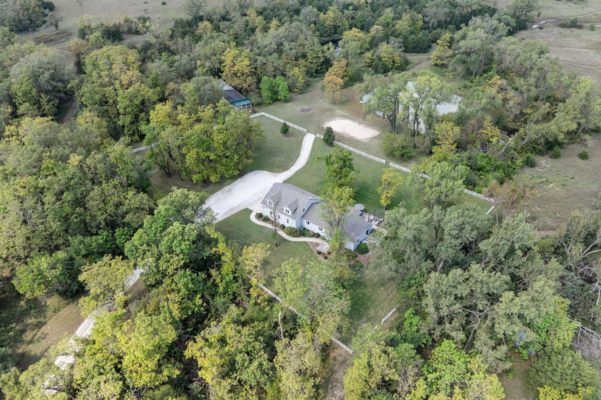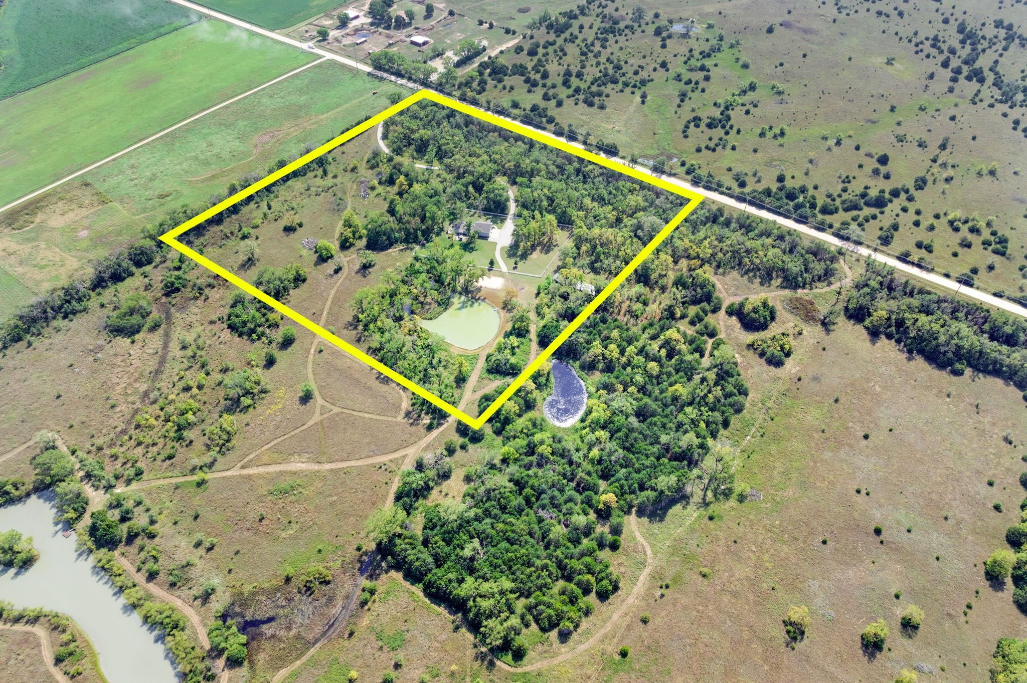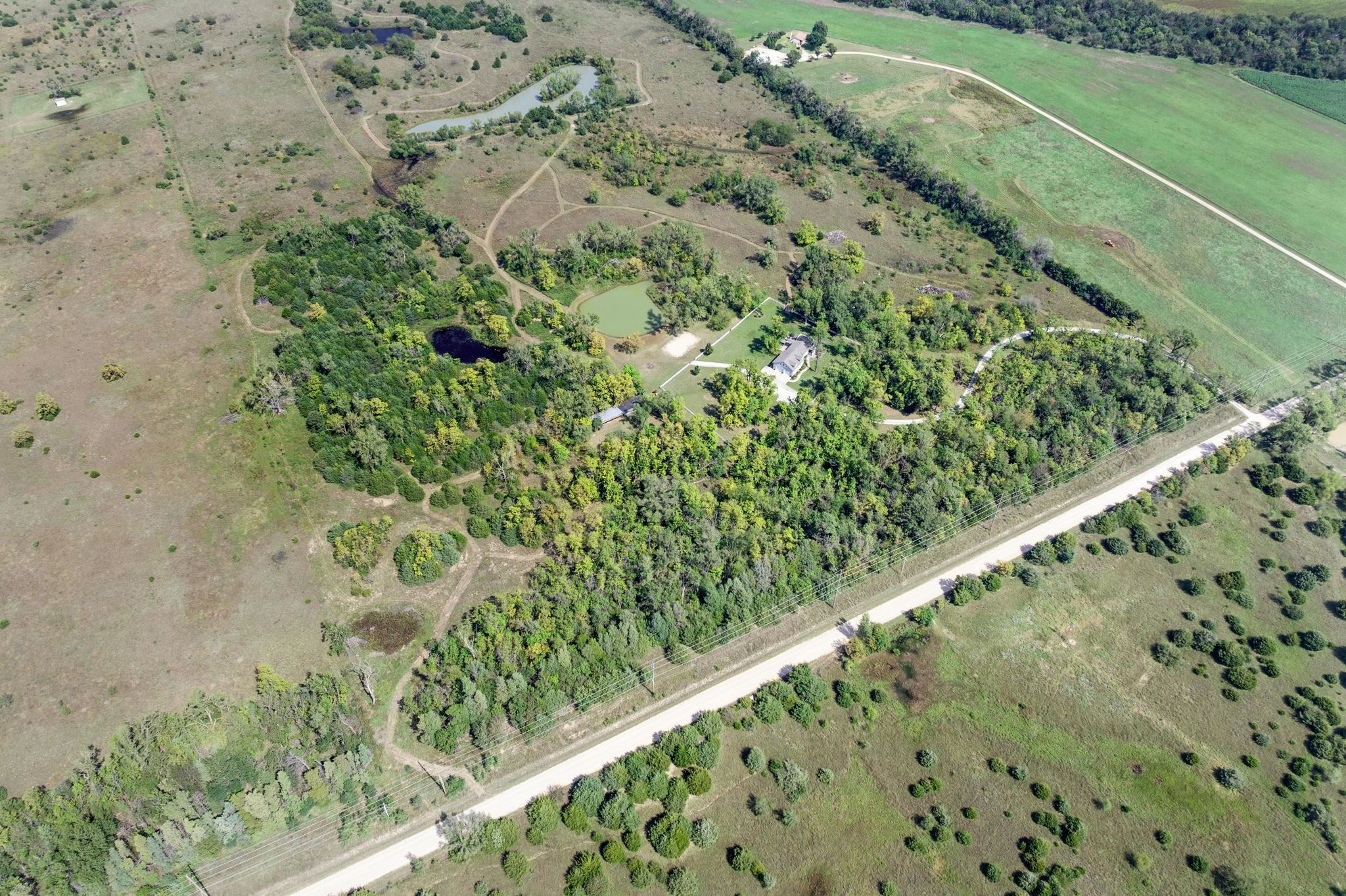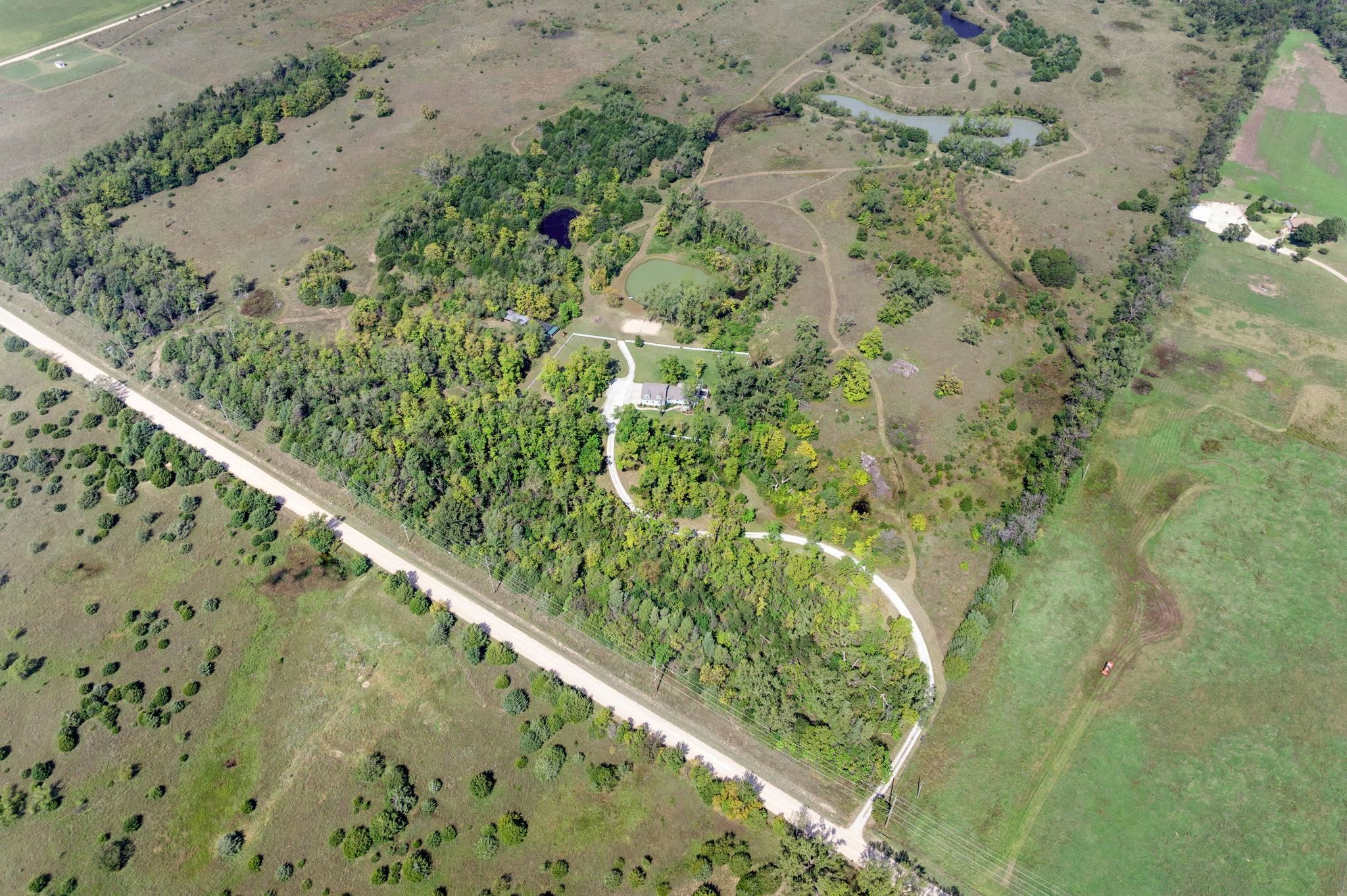 - Description: **Actual room measurements will be entered on Sunday** Experience peaceful country living just 30 minutes from the Wichita airport! This unique property was once a hunting cabin and now offers the perfect retreat surrounded by mature trees that provide a natural wind break. Wildlife is abundant here—ideal for white-tail hunting or simply enjoying the sights and sounds of nature. The home features a spacious upstairs master suite with a private living area, walk-in closet, double vanity sinks, and oversized bedroom. Two AC/heating units (up and down) make it easy to control temperatures throughout the seasons. The main level highlights an awesome, oversized laundry/mudroom—perfect for country living convenience. Plus 3 additional bedrooms and 2 bathrooms. Outdoors, you’ll find a pond nearby creating a tranquil setting and mowed walking paths. An additional cabin on the property expands your options with HVAC, a full bath, two rooms, and a wood-burning stove—ideal for a mother-in-law suite, office, or kids’ hangout. Whether you’re looking for privacy, hunting, or a quiet retreat, this property delivers it all. Don't miss the additional 70 acres to this property that is being sold separately. (mls #662154) for more acreage, hunting, or peaceful living. The 70 acres has a 2nd pond with a dock, more mowed walking paths, and a creek on the property. Show all description