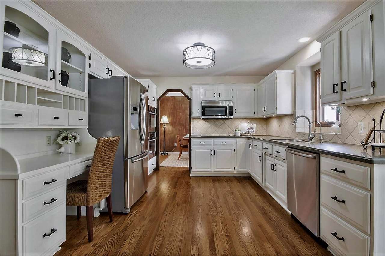 - Description: Don't miss this beautiful four bedroom, three and a half bath home with a unique floor plan in the established neighborhood of Westwood Heights in the Maize School District. Come home to this lovingly maintained home with both formal and informal living and dining areas on the main floor. The kitchen is a chef's delight with primarily top of the line Bosch appliances. There is ample storage and counter top space for the pickiest of cooks. The "breakfast nook" is big enough to accommodate a full sized dining room table. Enjoy cold winter nights around the fireplace in the main floor family room which is open to the breakfast area and updated kitchen. Real hardwood floors run through most of the main floor. For convenience, the laundry room is also located on the main floor. You'll enjoy privacy in the mid-level master suite with double vanities, large, tile shower, jacuzzi tub, heated floors and walk-in closet. Secondary steps lead to a loft area that could be used for an office, exercise space, kids' space, whatever suits your particular needs. Secondary bedrooms are located down the hall and are separated by a Jack 'n Jill bathroom. All above ground bedrooms feature window seats. The one in the front bedroom even has storage under it. In the basement, you'll find a recreation room complete with a wet bar and mini fridge. Step down two steps into an amazing home theater. There are ten theater style seats with extra seating at the back row bar. The entire system, the Samsung television, the THX EX 6.1 surround sound system and the rest of the components all stay with the house. Imagine game days with your friends, movie nights with the family or fight nights with your buddies. Enjoy first run movies in the comfort and safety of your own home. Outside the backdoor from the breakfast area, there's a quaint brick patio. The yard is fully fenced with a combination of wood and wrought iron fencing. The yard is bigger than it looks but easily maintained with a sprinkler system on a private well. The three car garage is fully insulated and allows access to the backyard. Systems and maintenance wise this home is top notch. The SmartSiding with Diamond factory finish boasts a 30 year finish. There are two multi-stage high efficiency furnaces and two two-stage high efficiency air conditioners. The Kinetico water softener and reverse osmosis system are top of the line. Conveniently located near 21st and Ridge Road with easy commuting downtown, east or westside. You're close enough to enjoy the amenities of New Market Square but not close enough to have to put up with the traffic. Enjoy the zoo, Reflection Ridge golf course, (membership req) and Sedgwick County Park, all just a short drive away. It doesn't get any better than this. Check it out today. Maybe next Memorial Day weekend you'll be spending your holiday enjoying this home as your own. Show all description