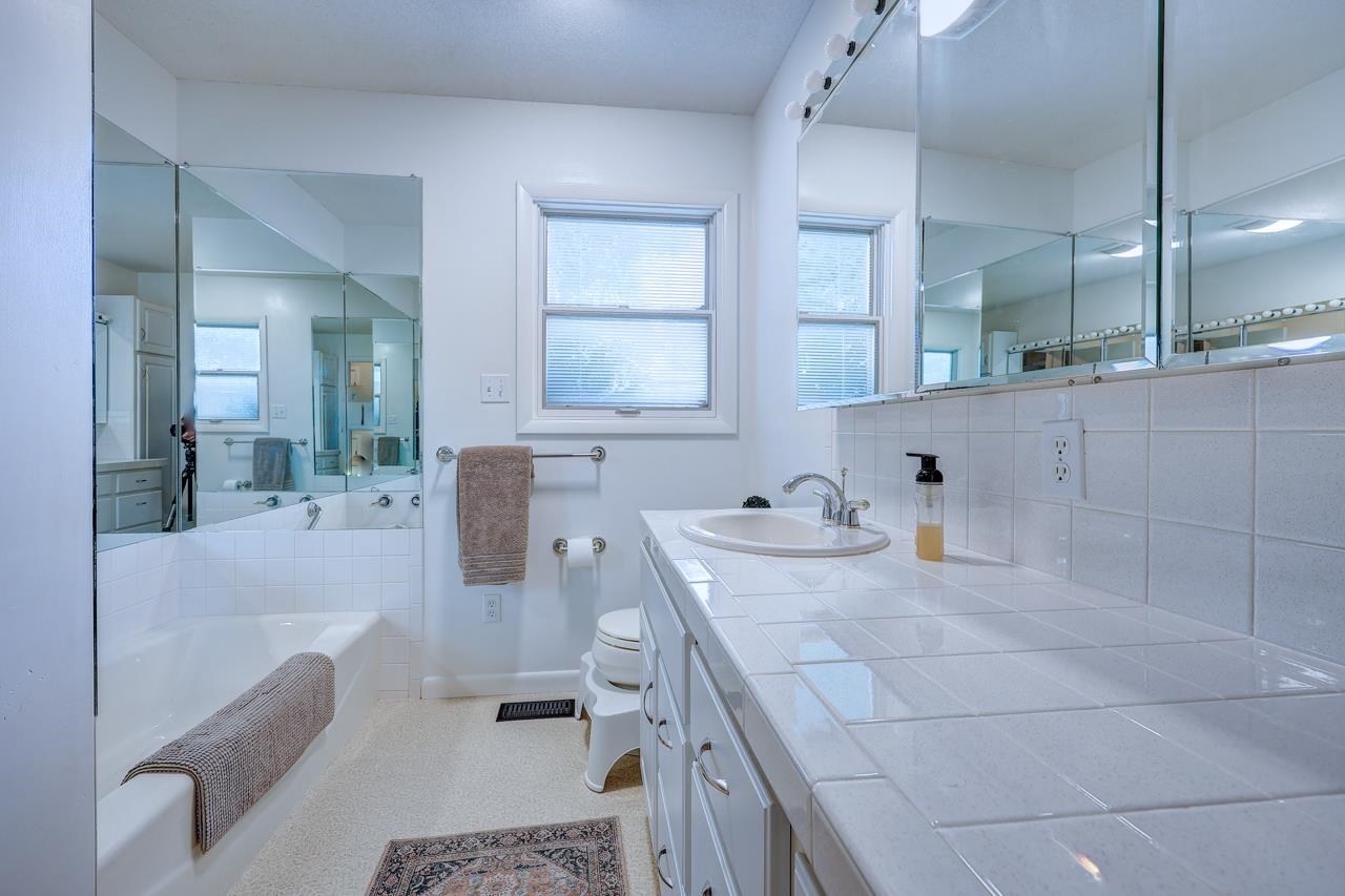 - Master Bedroom: Master Bdrm on Main Level, Split Bedroom Plan, Sep. Tub/Shower/Mstr Bdrm, Tile Counters