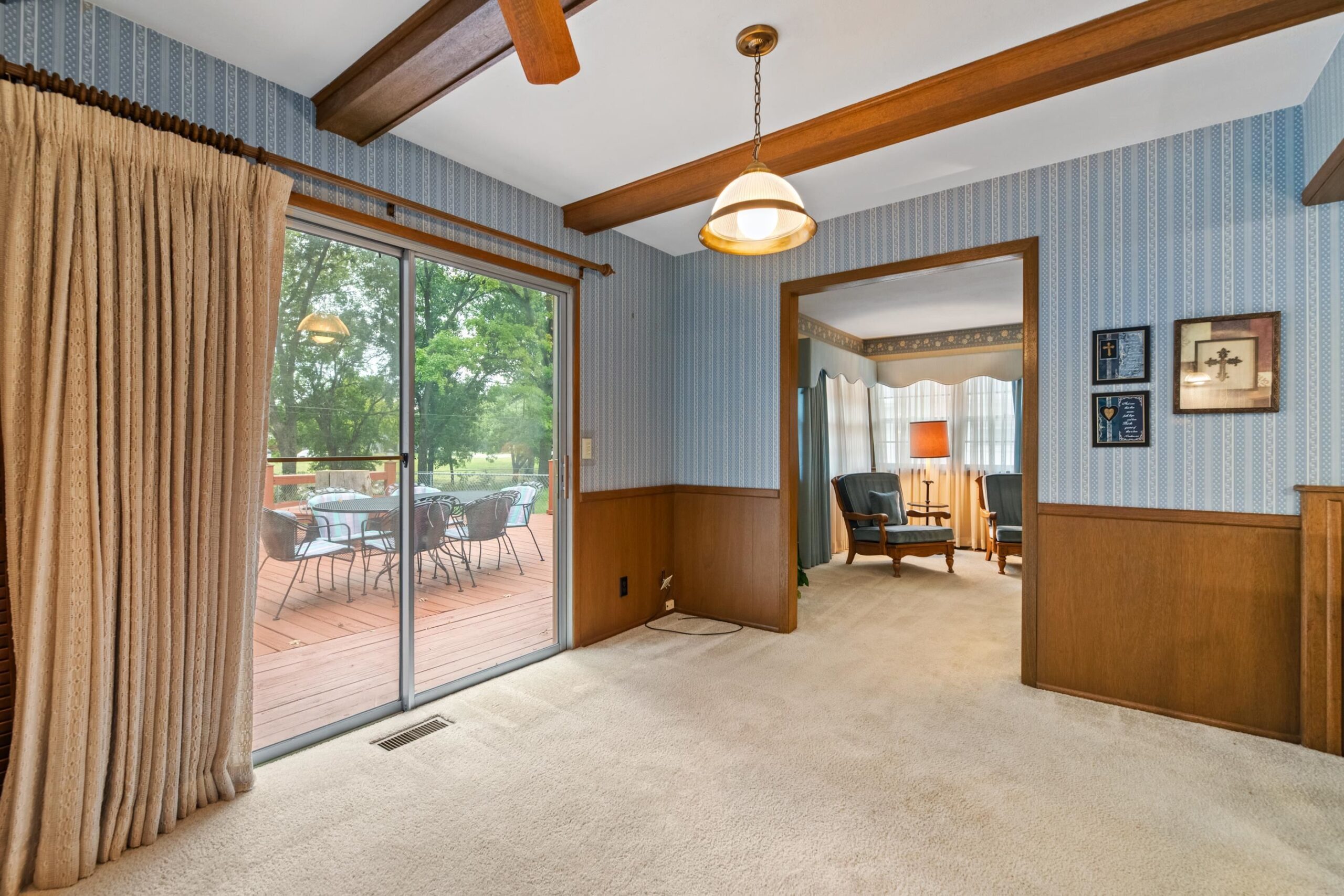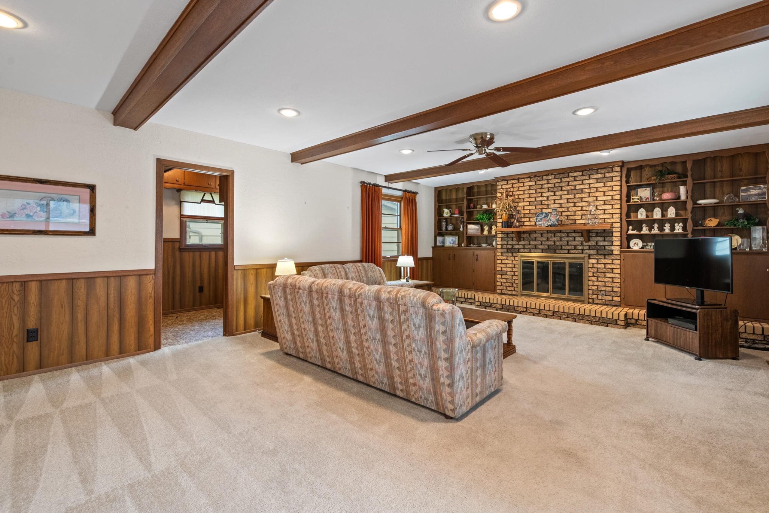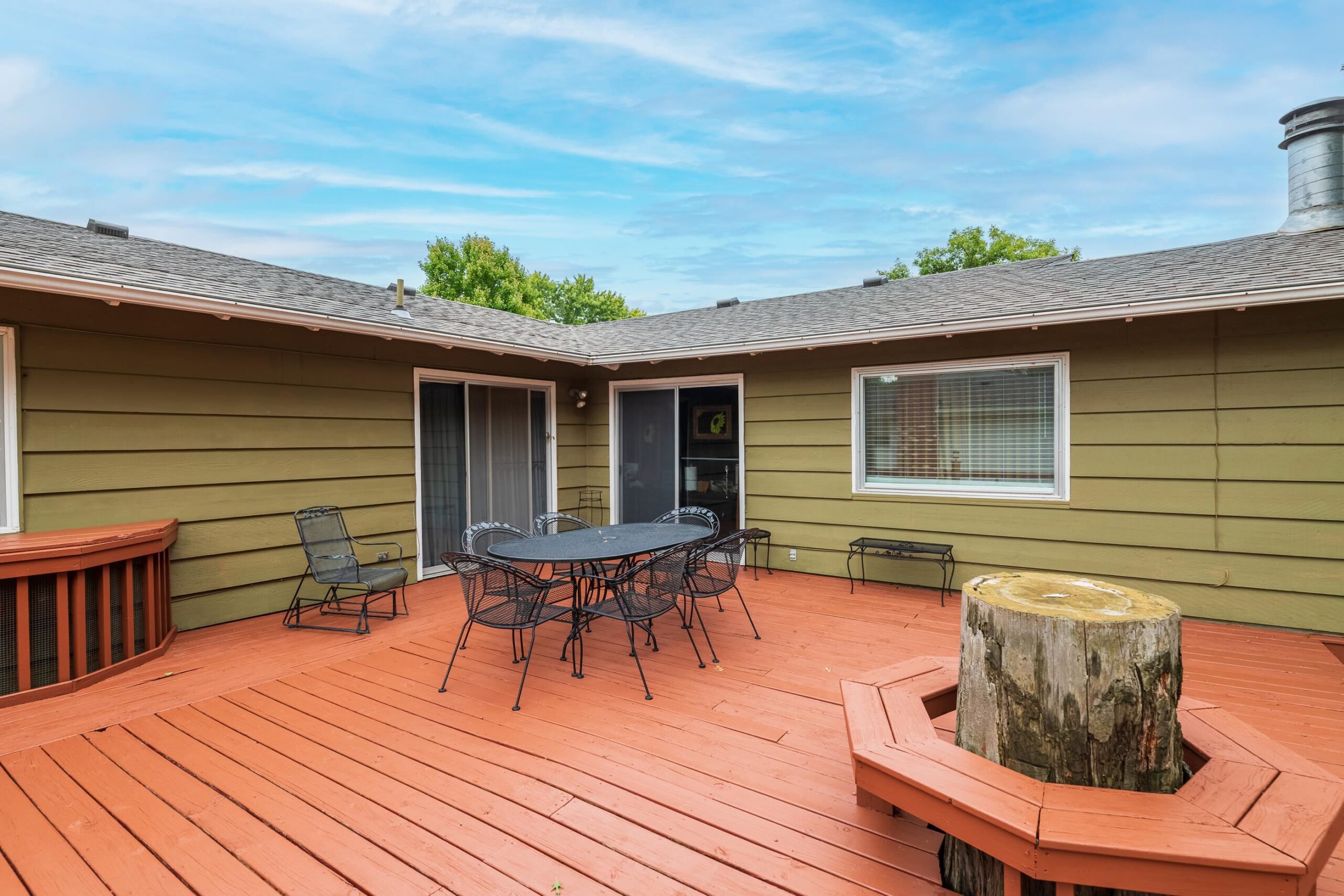 - Description: ESTATE SALE AT THE HOME SEPTEMBER 11, 12, & 13. 9AM - 4PM. SHOWINGS ONLY DURING ESTATE SALE HOURS the 11, 12 & 13th. INSIDE PICTURES WILL BE ADDED AFTER SALE. Welcome to this spacious and well- maintained, solid 4 bedroom, 3 full bath, 2 car garage RANCH home nestled on serene cul-de-sac with CREEK LOT. No back neighbor!! Located in a desirable neighborhood and within walking distance to local school. This home offers 3 generous living areas, including a main floor family room with fireplace and built ins, ideal for entertaining or relaxing. Additional features include: timeless CEDAR SIDING, BRICK ACCENTS, 2017 NEW COMPOSITE ROOF, 2016 NEW TRANE HVAC, 2018 NEW 50 GAL WATER HEATER, SPRINKLER SYSTEM, STORM DOORS, BUILT INS THROUGHOUT, GARAGE MAN DOOR. Kitchen boasts refrigerator, double ovens, stove top & dishwasher that STAY with home. Washer & Dryer also STAY with home. There is breakfast bar seating for your convenience. Built in storage & cabinetry in kitchen has room for microwave and other kitchen essentials. The dining room area has a closet that would make an ideal pantry. MAIN FLOOR SEPARATE LAUNDRY ROOM PLUS second laundry area with sink in basement storage area. Doors to large back deck are located off dining and family room with deck overlooking peaceful back yard & creek. Formal dining room, formal living room, master bedroom with master bath, two additional bedrooms and tiled entry w coat closet complete the main floor. The basement provides you with the fourth bedroom with egress window, full bath and 2nd family/recreational room, and storage area. The nice size storage area in basement is a plus for holiday decor and storage needs, 2nd laundry w sink in storage room. Add your decorating touches or live in this solid home as it presents. SUCH A GREAT AREA AND HOMES WITH THIS MUCH SPACE AND CREEK LOT DO NOT COME UP OFTEN....DO NOT MISS IT! Show all description