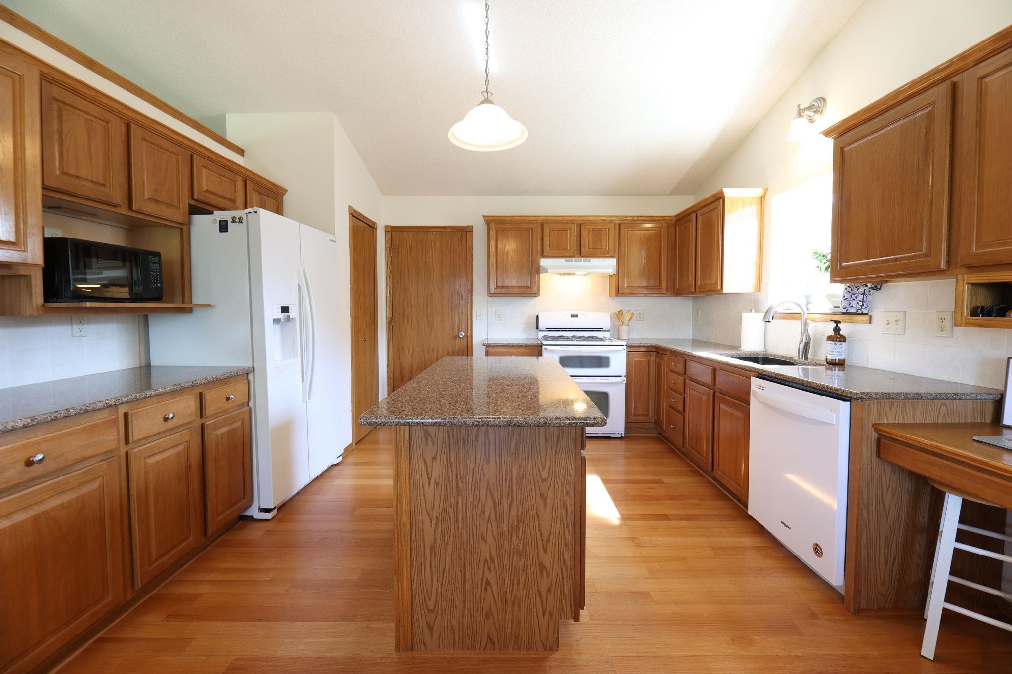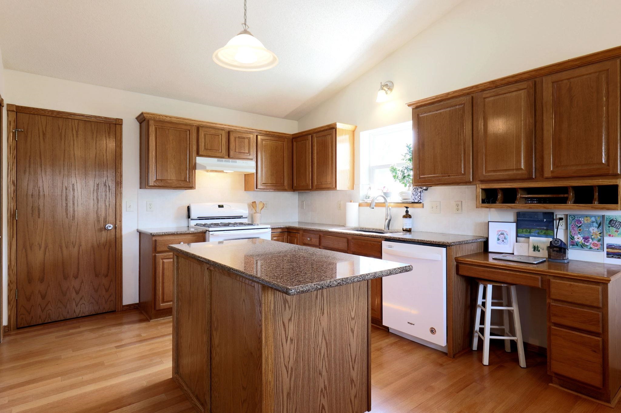 - Description: This 5 bedroom 3 bath home is situated on a corner lot tucked into Green Valley. Beautiful hardwood flooring through out this home. Vaulted ceilings in the living room provides for an open and roomy feel. The spacious kitchen features and island, quartz counter tops and pantry. Nearby is the dining area that leads out to a wood deck. Walking into the master you will find an abundance of space and a large walk in closet. The master bath features a soaker tub, shower and dual vanities. There are two additional bedrooms on this level. The basement features a spacious family room with several large picture windows and concrete flooring. Additionally there are two other bedrooms. Out doors you will find a wood deck, wrought iron fenced in yard, sprinkler and well. Show all description