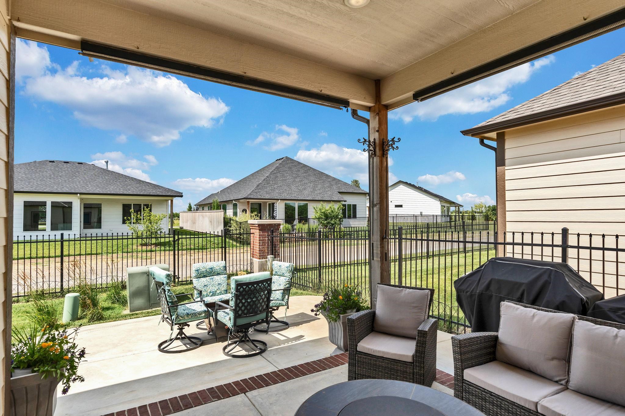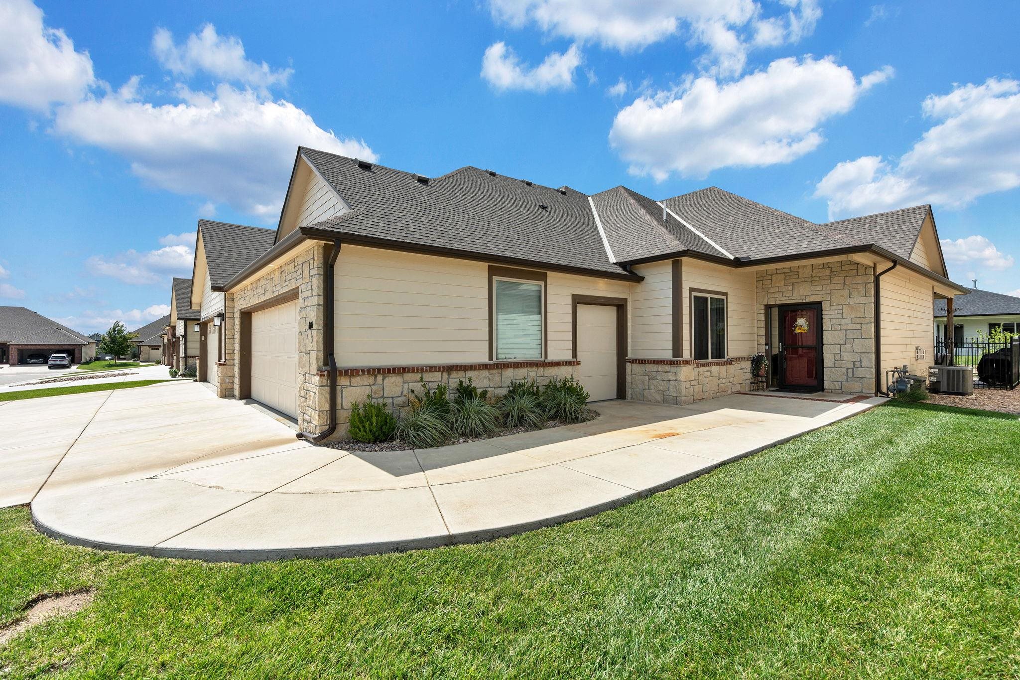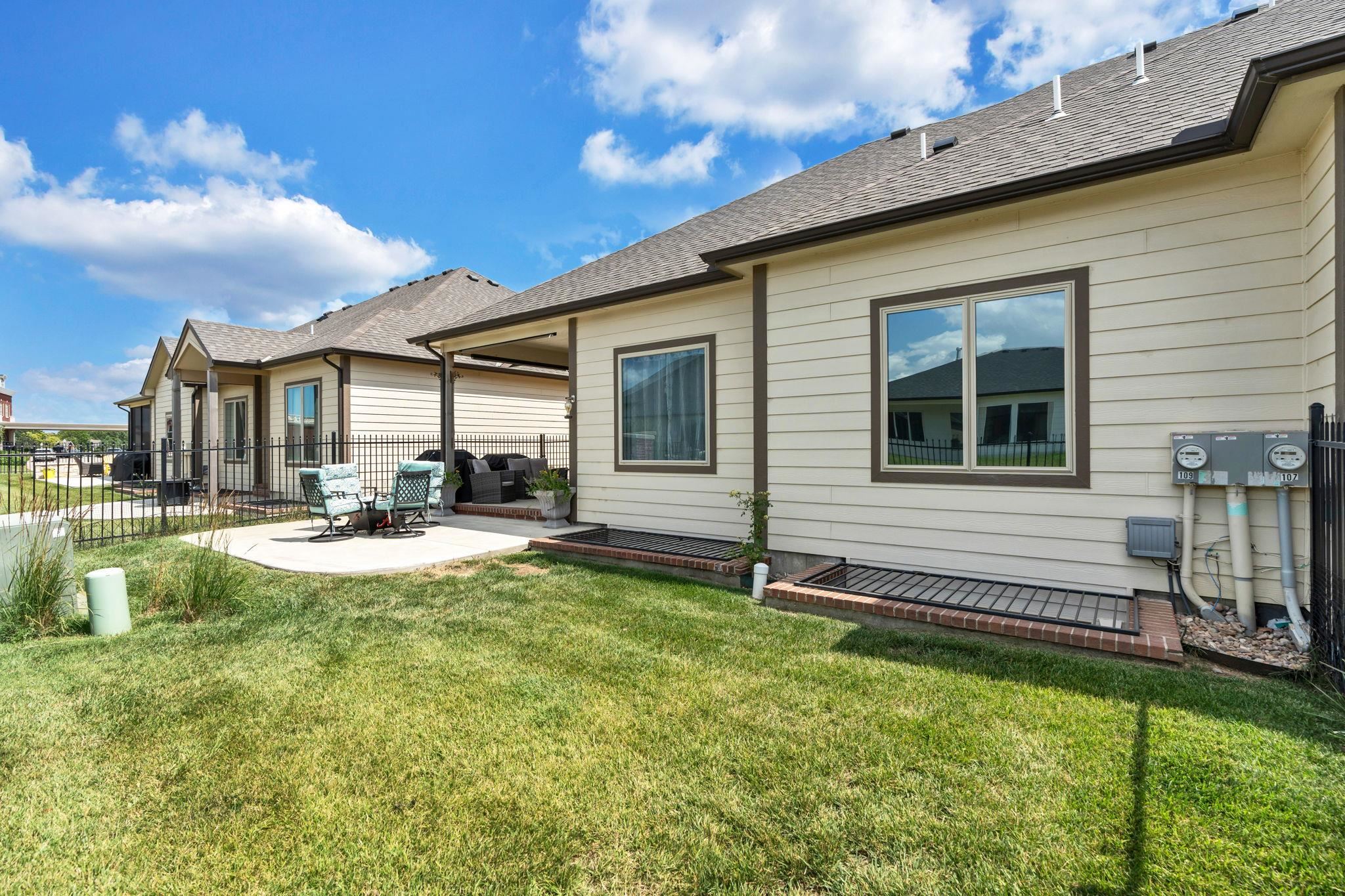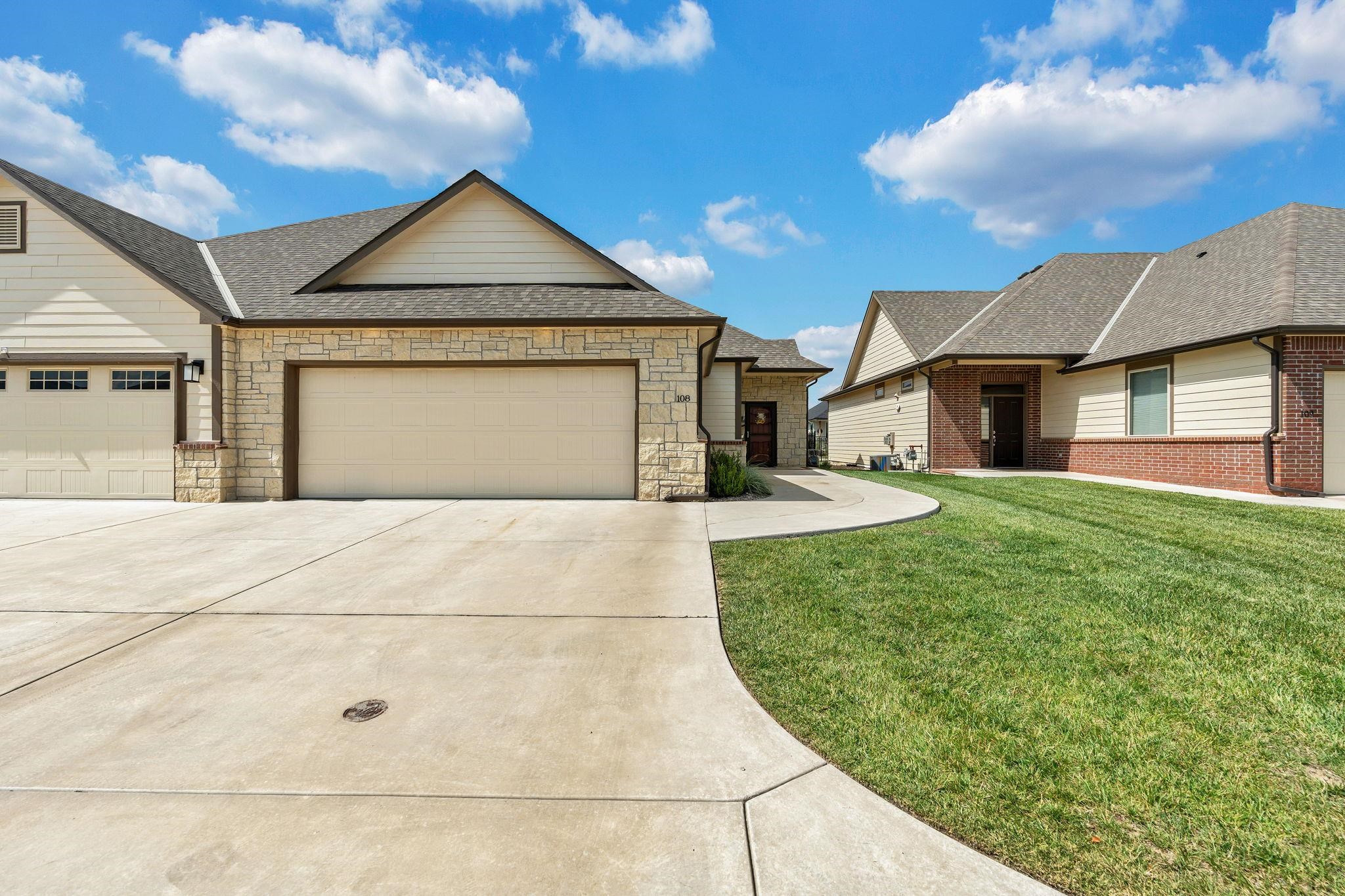 - Description: Experience effortless elegance in this stunning twin home located on a quiet dead-end street in the desirable Terradyne area. Designed for comfort and style, this low-maintenance residence features an expansive open layout perfect for entertaining or relaxing at home. Step into the inviting living room, where a beautiful marble tile surround gas fireplace, large sunlit window, and luxury vinyl flooring set the tone for cozy gatherings. The gourmet kitchen is a chef’s dream, showcasing an oversized granite island with a breakfast bar, eye-catching tile backsplash, under/over cabinet lighting, recessed lighting, and two pantry areas—including a spacious walk-in—for all your storage needs. The adjoining dining space is equally impressive, with a chic chandelier, large window, and sliding doors that lead to both covered and uncovered patio areas, offering ideal spots for enjoying your morning coffee or hosting outdoor get-togethers. The tranquil primary suite features luxury vinyl flooring, abundant natural light, a ceiling fan, and a walk-in closet with custom shelving and triple-level hanging rods. The spa-style en-suite bath includes granite countertops, double sinks, a private water closet, and a fully tiled walk-in shower with a built-in granite bench and additional rain shower head. Main floor laundry offers convenience with extra cabinet space. Head downstairs to the finished basement, where you’ll find a spacious rec room with luxury vinyl floors, and a modern granite wet bar with floating shelves. Two spacious bedrooms, a full bath, and ample storage space round out the lower level. The oversized garage features built-in shelving for organized storage and a convenient sideload golf cart garage door—perfect for quick access to the course or clubhouse. Located just a short golf cart ride to Terradyne Country Club, this exceptional home offers a perfect blend of luxury, function, and lifestyle. Don’t miss your chance to make it yours! Show all description
