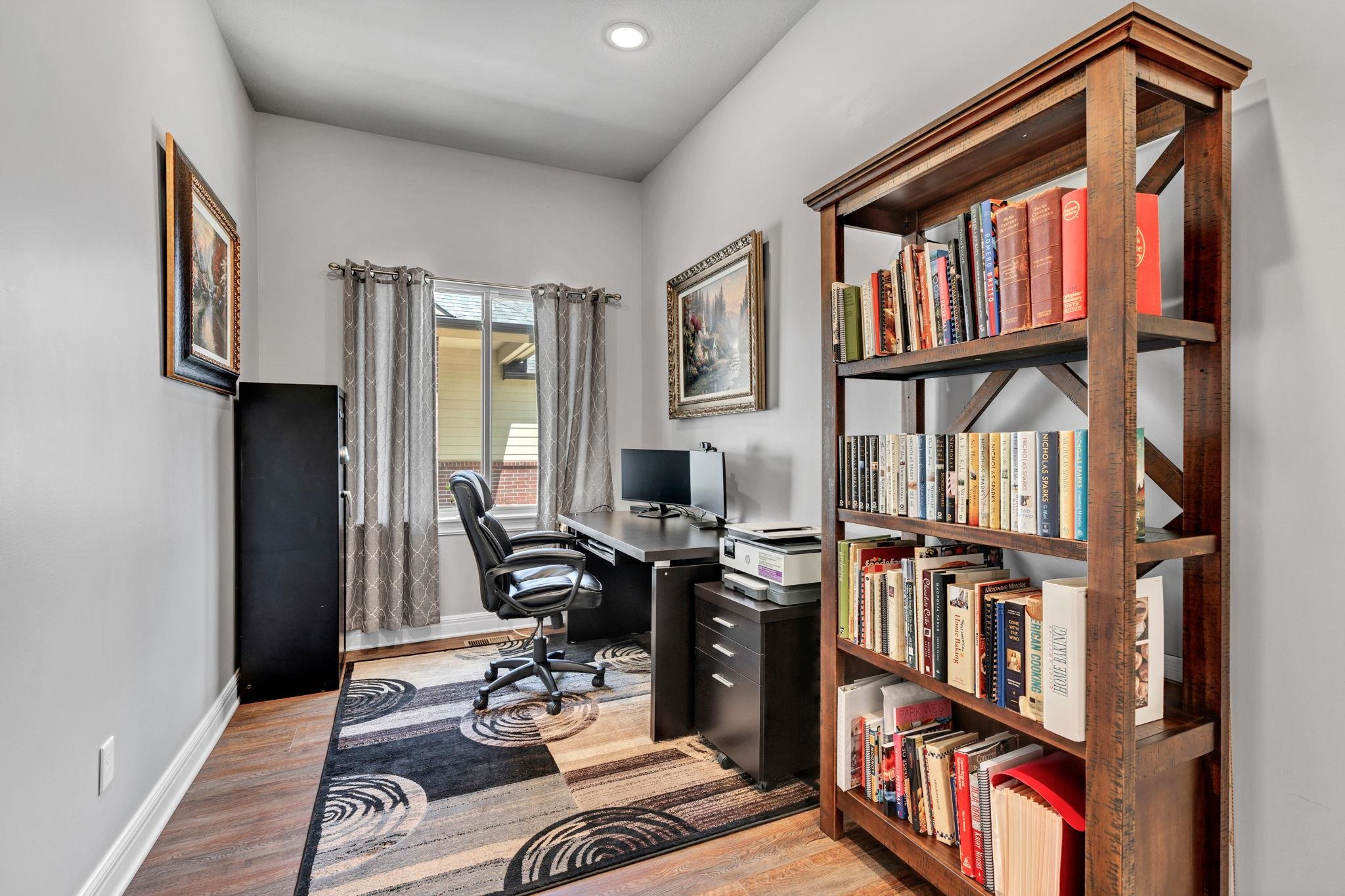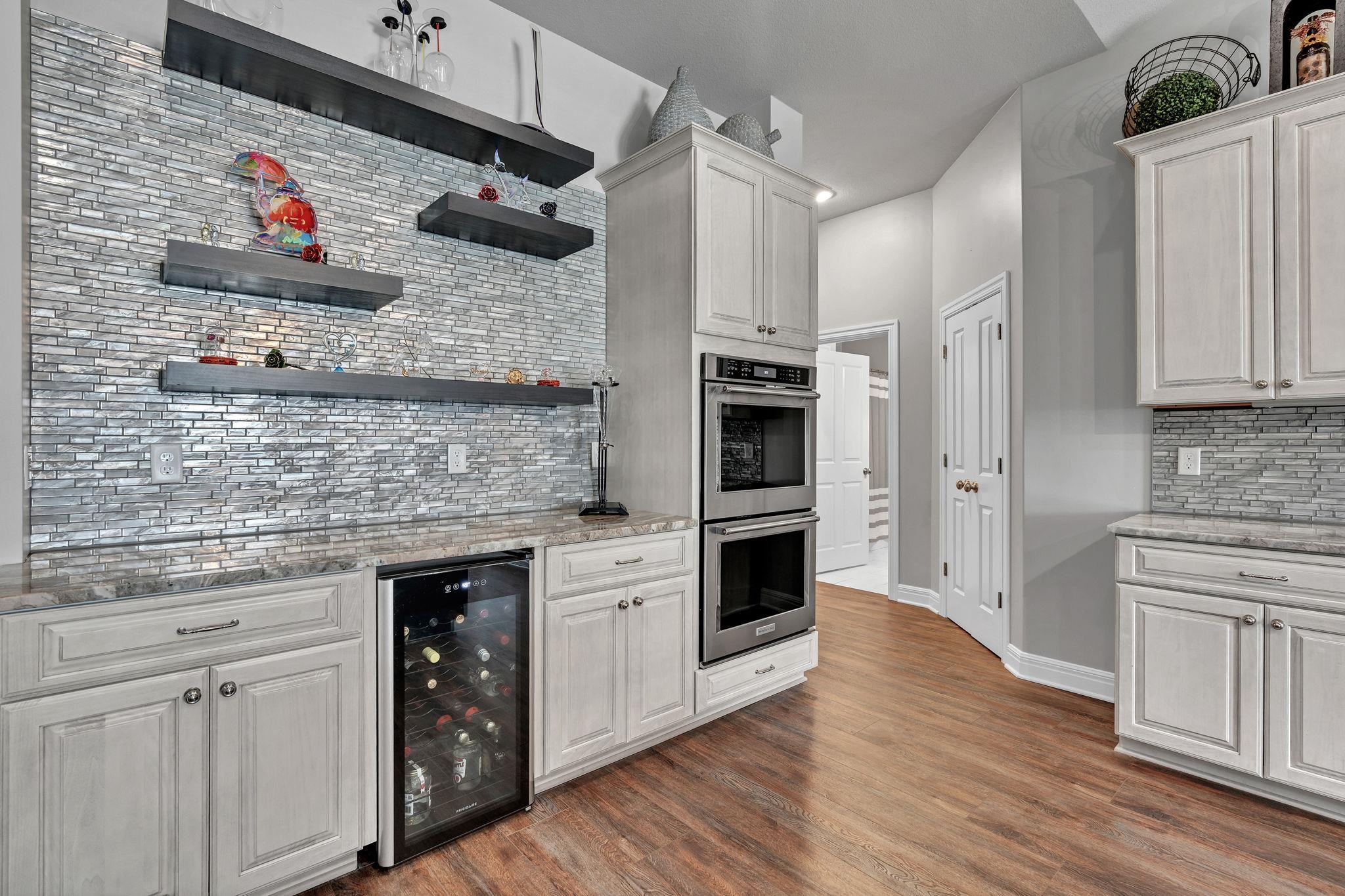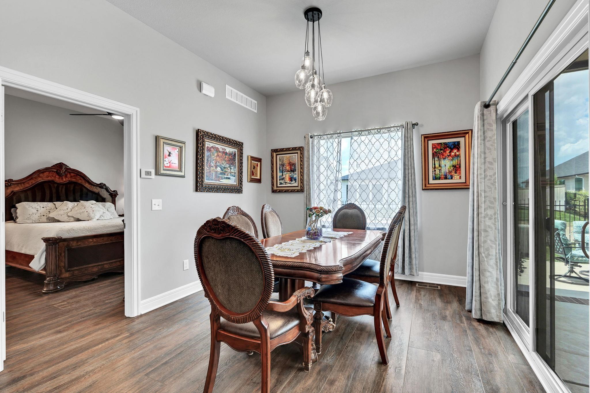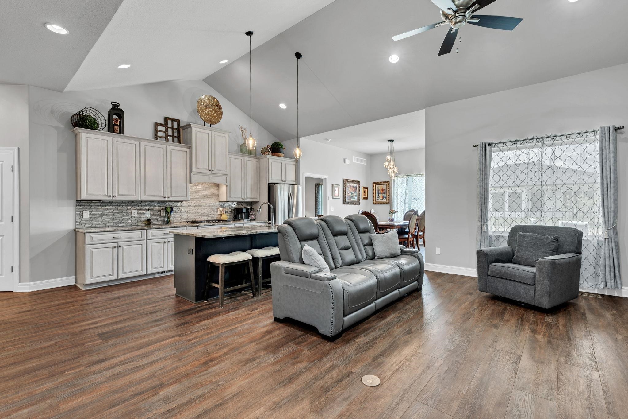 - Description: Experience effortless elegance in this stunning twin home located on a quiet dead-end street in the desirable Terradyne area. Designed for comfort and style, this low-maintenance residence features an expansive open layout perfect for entertaining or relaxing at home. Step into the inviting living room, where a beautiful marble tile surround gas fireplace, large sunlit window, and luxury vinyl flooring set the tone for cozy gatherings. The gourmet kitchen is a chef’s dream, showcasing an oversized granite island with a breakfast bar, eye-catching tile backsplash, under/over cabinet lighting, recessed lighting, and two pantry areas—including a spacious walk-in—for all your storage needs. The adjoining dining space is equally impressive, with a chic chandelier, large window, and sliding doors that lead to both covered and uncovered patio areas, offering ideal spots for enjoying your morning coffee or hosting outdoor get-togethers. The tranquil primary suite features luxury vinyl flooring, abundant natural light, a ceiling fan, and a walk-in closet with custom shelving and triple-level hanging rods. The spa-style en-suite bath includes granite countertops, double sinks, a private water closet, and a fully tiled walk-in shower with a built-in granite bench and additional rain shower head. Main floor laundry offers convenience with extra cabinet space. Head downstairs to the finished basement, where you’ll find a spacious rec room with luxury vinyl floors, and a modern granite wet bar with floating shelves. Two spacious bedrooms, a full bath, and ample storage space round out the lower level. The oversized garage features built-in shelving for organized storage and a convenient sideload golf cart garage door—perfect for quick access to the course or clubhouse. Located just a short golf cart ride to Terradyne Country Club, this exceptional home offers a perfect blend of luxury, function, and lifestyle. Don’t miss your chance to make it yours! Show all description