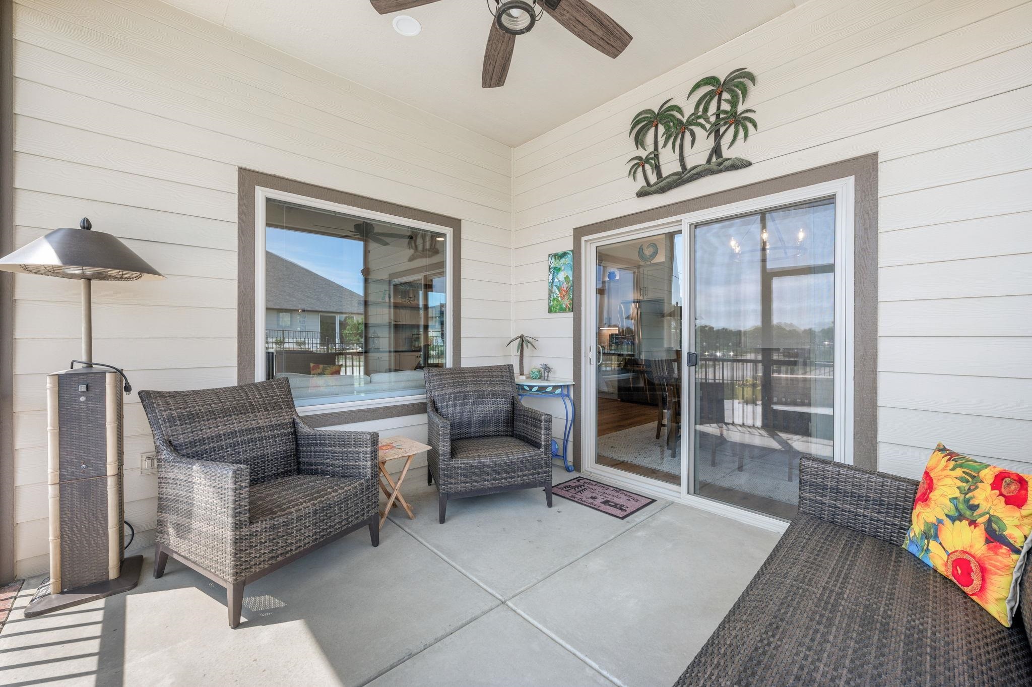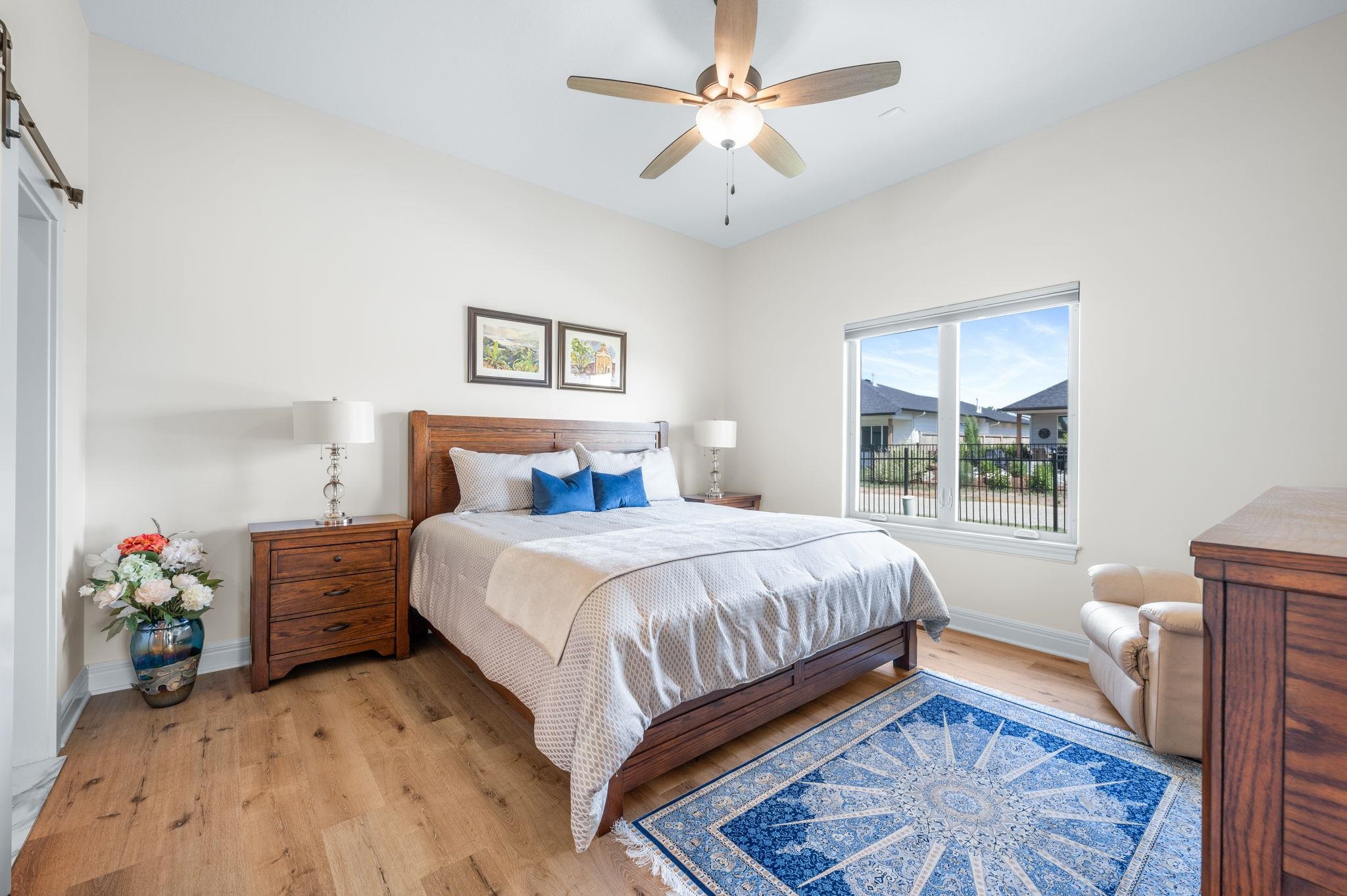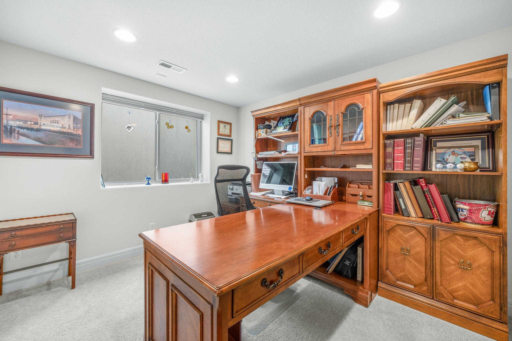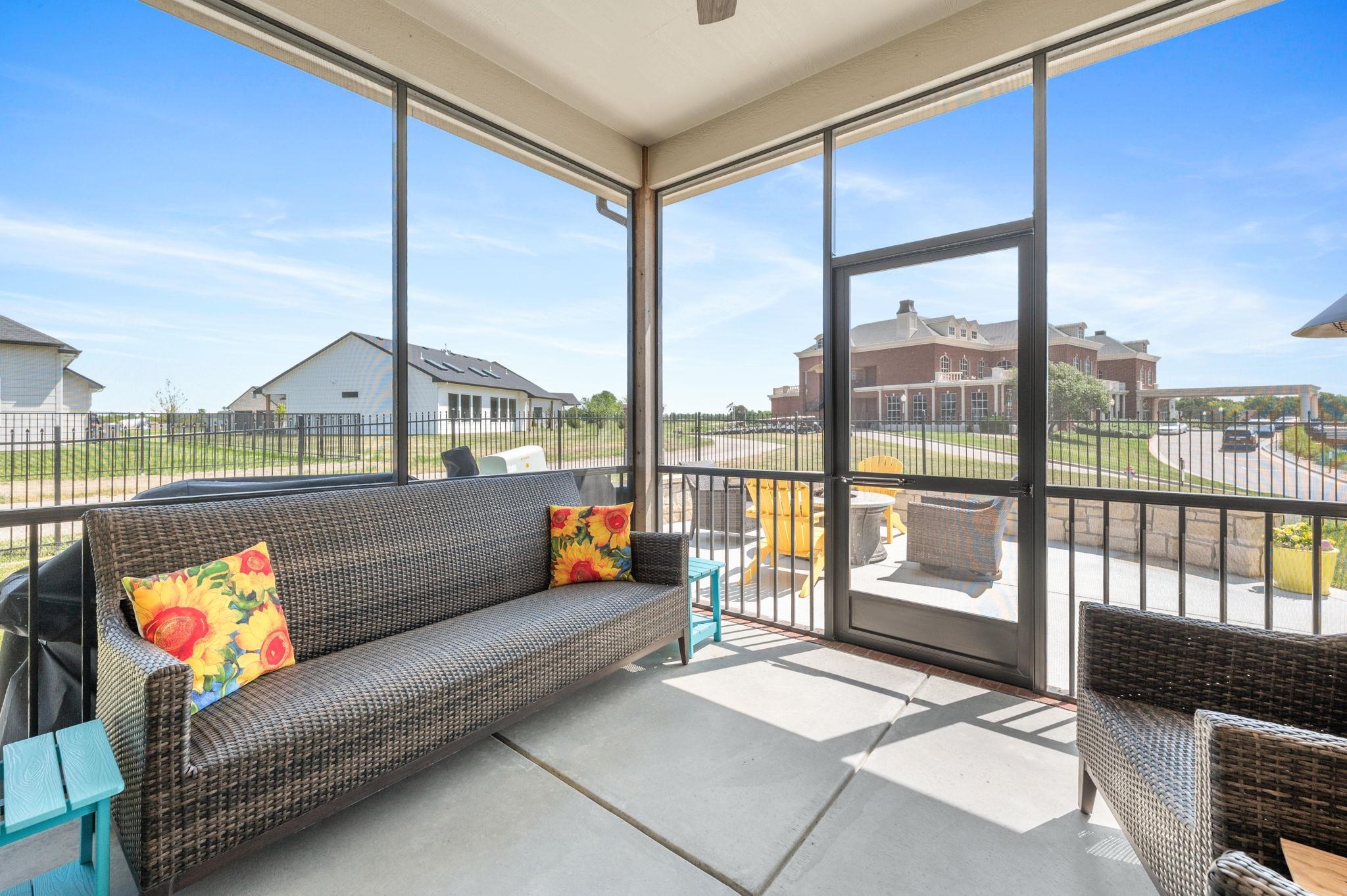 - Description: Enjoy low-maintenance luxury living in this beautifully designed twin home tucked away on a quiet dead-end street. The spacious open floor plan is ideal for entertaining, featuring a warm and inviting living room with a stone-surround gas fireplace, large sun-filled window, luxury vinyl flooring, and ceiling fan. The gourmet kitchen boasts an oversized granite island with breakfast bar, stunning tile backsplash, recessed and under/over cabinet lighting, and two pantry spaces for ample storage. Adjacent to the kitchen, the dining area offers a stylish chandelier, large window, and sliding glass doors leading to a screened-in patio—perfect for relaxing evenings outdoors. Retreat to the serene primary suite with luxury vinyl flooring, generous natural light, ceiling fan, and a walk-in closet equipped with custom shelving and triple-level hanging rods. The spa-inspired en-suite bath includes quartz countertops, double sinks, a private water closet, and a beautifully tiled walk-in shower with built-in bench. Main floor laundry adds convenience with granite countertops, a sink, and hanging rod. The finished basement is ideal for hosting guests or unwinding, with a spacious rec room featuring an electric fireplace, built-in shelving, luxury vinyl floors, and a sleek granite wet bar. A large bedroom, private office with French doors, full bath, and plenty of storage complete the lower level. Outdoor living is just as impressive, with a screened-in patio and additional concrete patio with a charming stone sitting wall and built-in lighting. Located near Terradyne, hop on your golf cart and head to the course or enjoy dinner at the clubhouse. This home is truly a must-see! Show all description