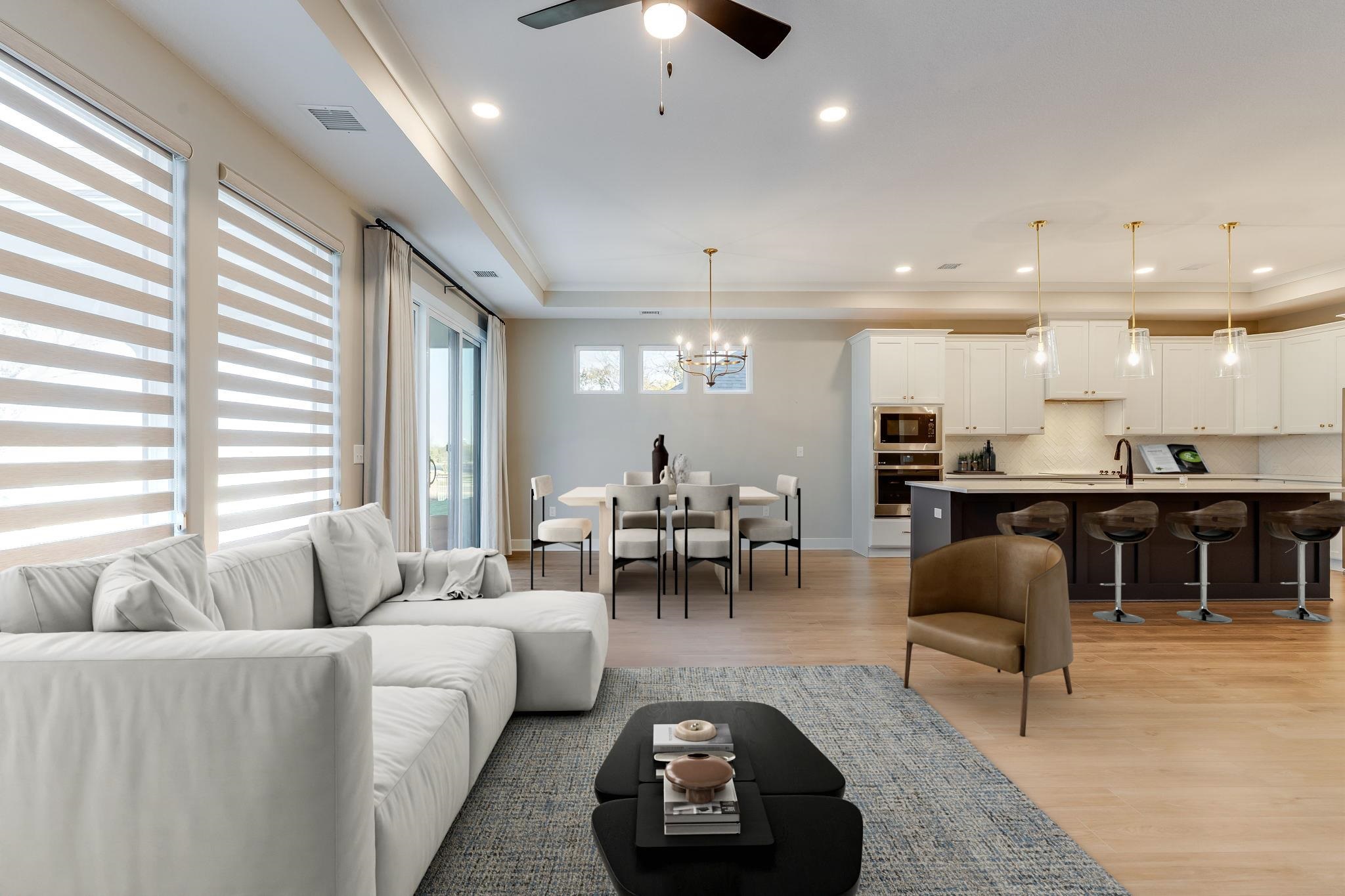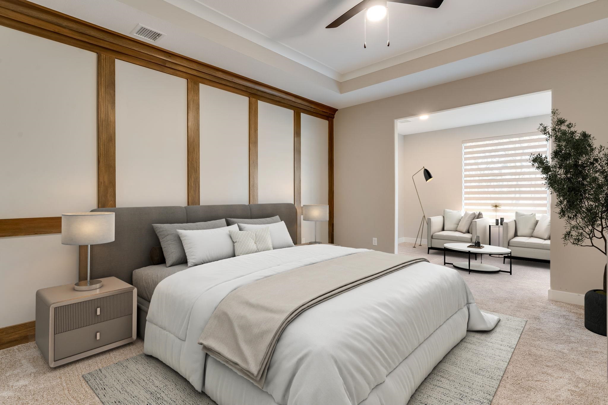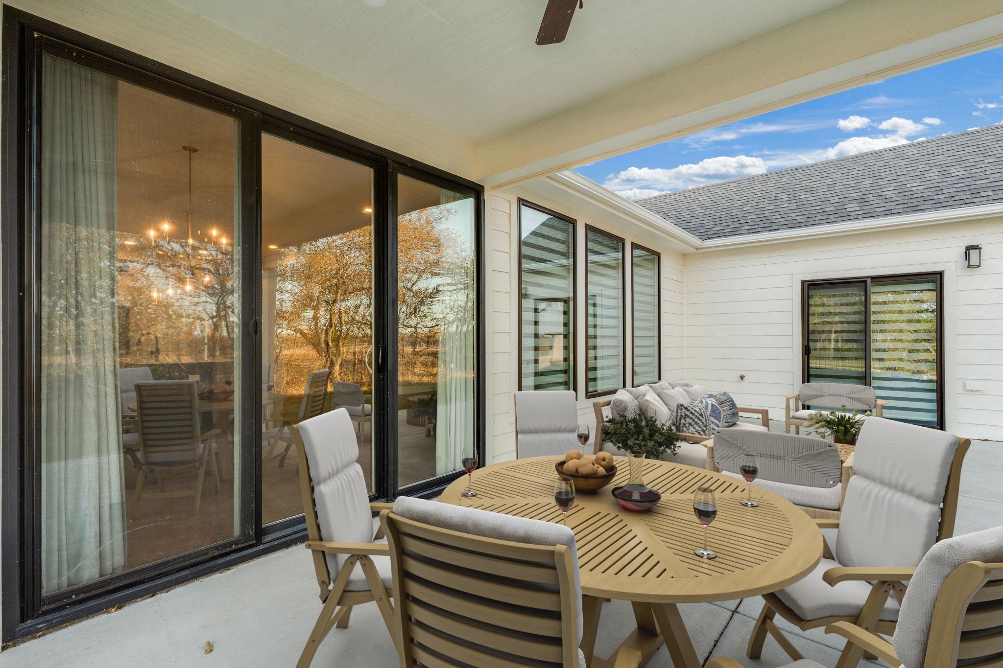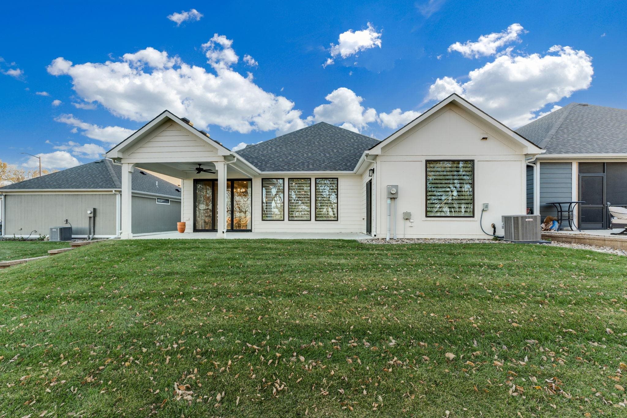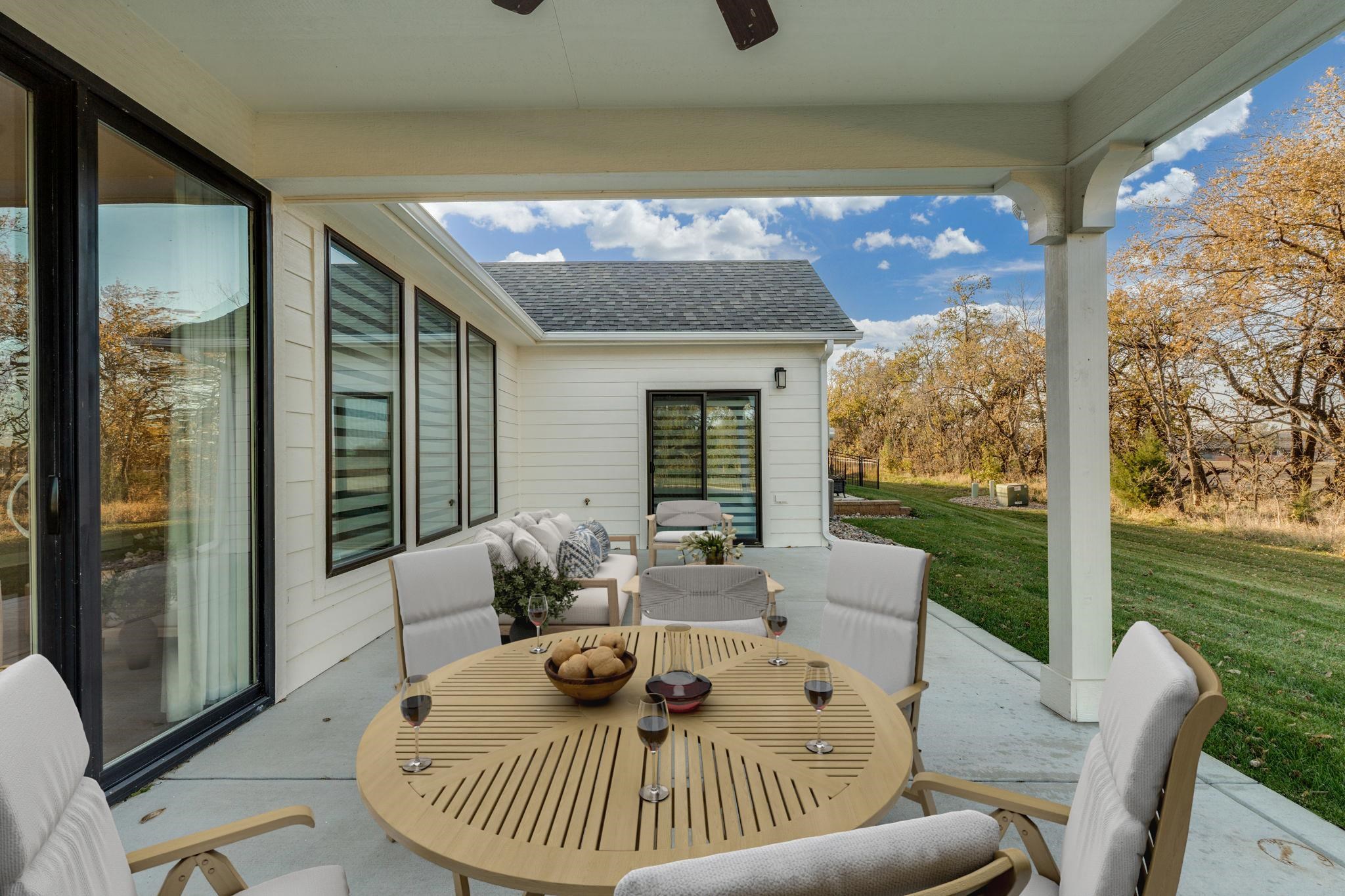 - Description: Welcome home! Enjoy over 2, 100 sq. ft. of modern luxury with this stunning Torino II floor plan, built in 2023. Nestled on one of the most coveted lots in The Courtyards at the Heritage, this home offers the perfect blend of style, comfort, and lifestyle. Just beyond the foyer, you’ll love the open concept combining kitchen, living, and dining spaces. Feel the luxury vinyl flooring beneath your feet, perfectly complemented by the clean lines of the backsplash and quartz countertops that gleam in the natural light. The kitchen delights the senses with its electric cooktop, wall oven, and conveniently positioned microwave, while a second refrigerator in the oversized two-car garage keeps essentials within easy reach. The oversized center island offers bar seating, and all appliances are included, making this home truly move-in ready. The bonus room off the living room features a closet with built-ins, perfect for extra seating, an office, or even a third bedroom. This home also features a split bedroom plan, offering privacy and separation between the primary suite and secondary bedrooms - a thoughtful layout for family, guests, or working from home. Retreat to your primary suite, where comfort meets function. Upgraded carpet and pad add softness underfoot, while the decorative wall and coffered ceiling create a luxurious ambiance. Enjoy views of the dressing or reading room that adjoins the space, with a separate door providing direct access to the patio for your private oasis. The ensuite bath features safety bars in the shower, and the laundry room, tucked away from the main living area, ensures privacy and convenient access from the garage. Professional window treatments throughout the home allow easy control of light and privacy. Additional highlights include an integrated concrete safe room, a large covered front porch with elegant railing, and a south-facing garage that naturally melts light snow and ice…perfect for easy winter mornings. Go outside and imagine waking to the gentle warmth of the morning sun spilling across your rear-covered patio, with the rustle of leaves in your tree-lined backyard setting a serene tone for the day. Evenings are just as magical, with soft neighborhood lighting creating a cozy, safe ambiance for relaxing or entertaining under the stars. This Andover Courtyard lifestyle shines beyond your doorstep. Hear the laughter at weekly coffees and monthly social events, enjoy the heated saltwater pool and pickleball courts, or stroll through the expansive community park, where pets play, friends gather, and memories are made. 820 E Park Lane isn’t just a place to live…it’s an experience. Don’t miss the chance to make this move-in ready, 2023-built luxury home yours and enjoy the best of comfort and style in this Epcon Community. Show all description