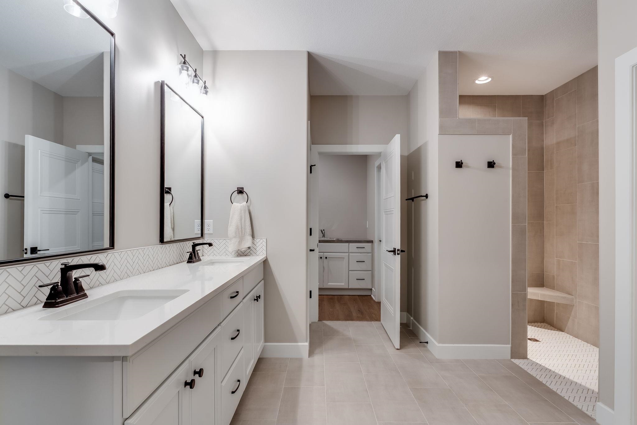 - Master Bedroom: Master Bdrm on Main Level, Split Bedroom Plan, Shower/Master Bedroom, Two Sinks, Quartz Counters