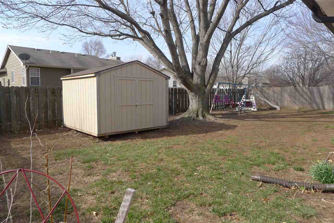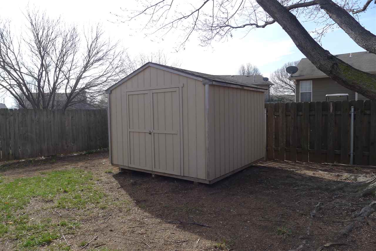 - Exterior Amenities: Patio, Fence-Wood, Guttering - ALL, Storage Building, Storm Doors, Frame w/Less than 50% Mas