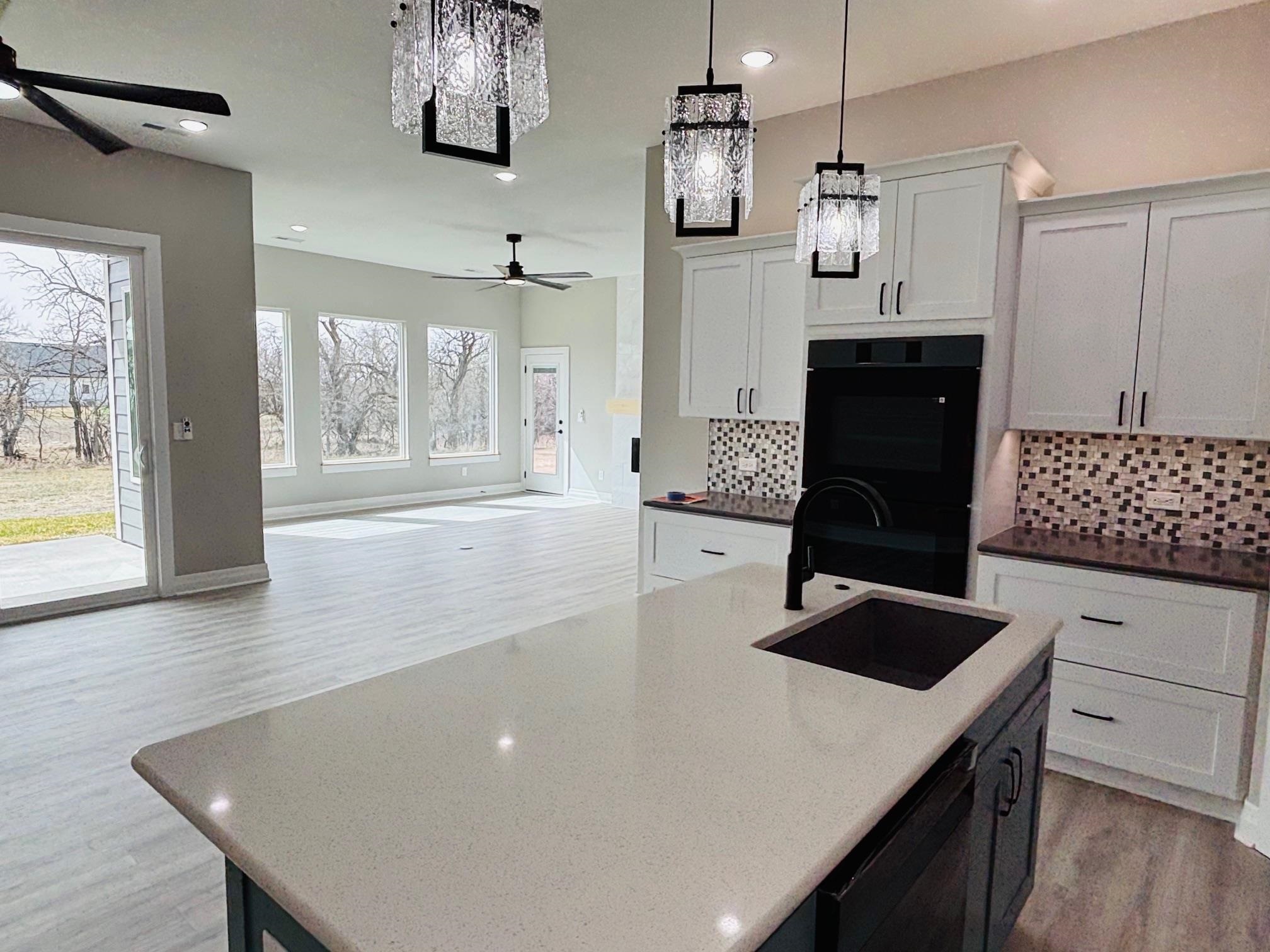 - Description: Custom Slab home, on a Gorgeous Treed Lot....with a Beautiful floorplan. The long dramatic hallway leads you into an Amazing floorplan with over 2000 sq. feet all on the main level. The kitchen is tucked back, but open to the dining room and living room. The Master Bedroom is amazing with a Spa Like Bathroom featuring a dual sided walk in shower that is to die for!!! 3 bedrooms, 2.5 bathrooms, 3 car garage, storm shelter, covered patio.....this home has it all. Show all description