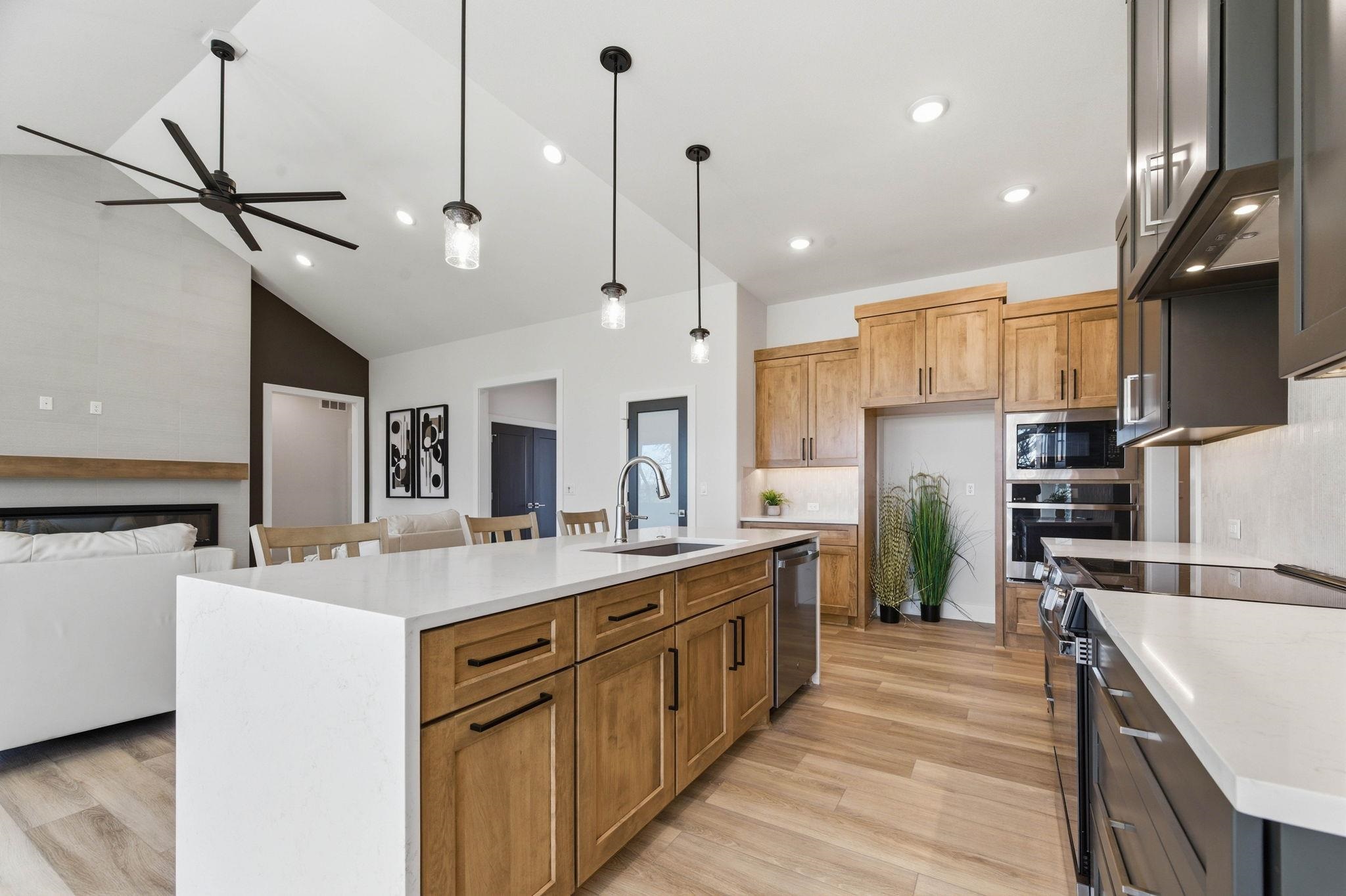 - Description: Step into modern comfort with this stunning new construction home featuring a thoughtfully designed open-concept layout, vaulted ceilings, and a spacious split-bedroom floor plan. With 3 generously sized bedrooms, 2 full baths, and over 2, 700 sq ft of beautifully finished living space, this home offers the perfect blend of function and style. Enjoy entertaining in the large living room that flows seamlessly into the gourmet kitchen and dining area with 12' tray ceilings. The private master suite boasts a luxurious en-suite bath and expansive walk-in closet. Additional highlights include a walk-in pantry, mudroom, covered front porch, and a 2-car garage. Situated on a sizable lot, this ranch-style gem offers peaceful living with the convenience of a brand-new build. Don’t miss your chance to own a home where quality craftsmanship meets everyday comfort! Show all description