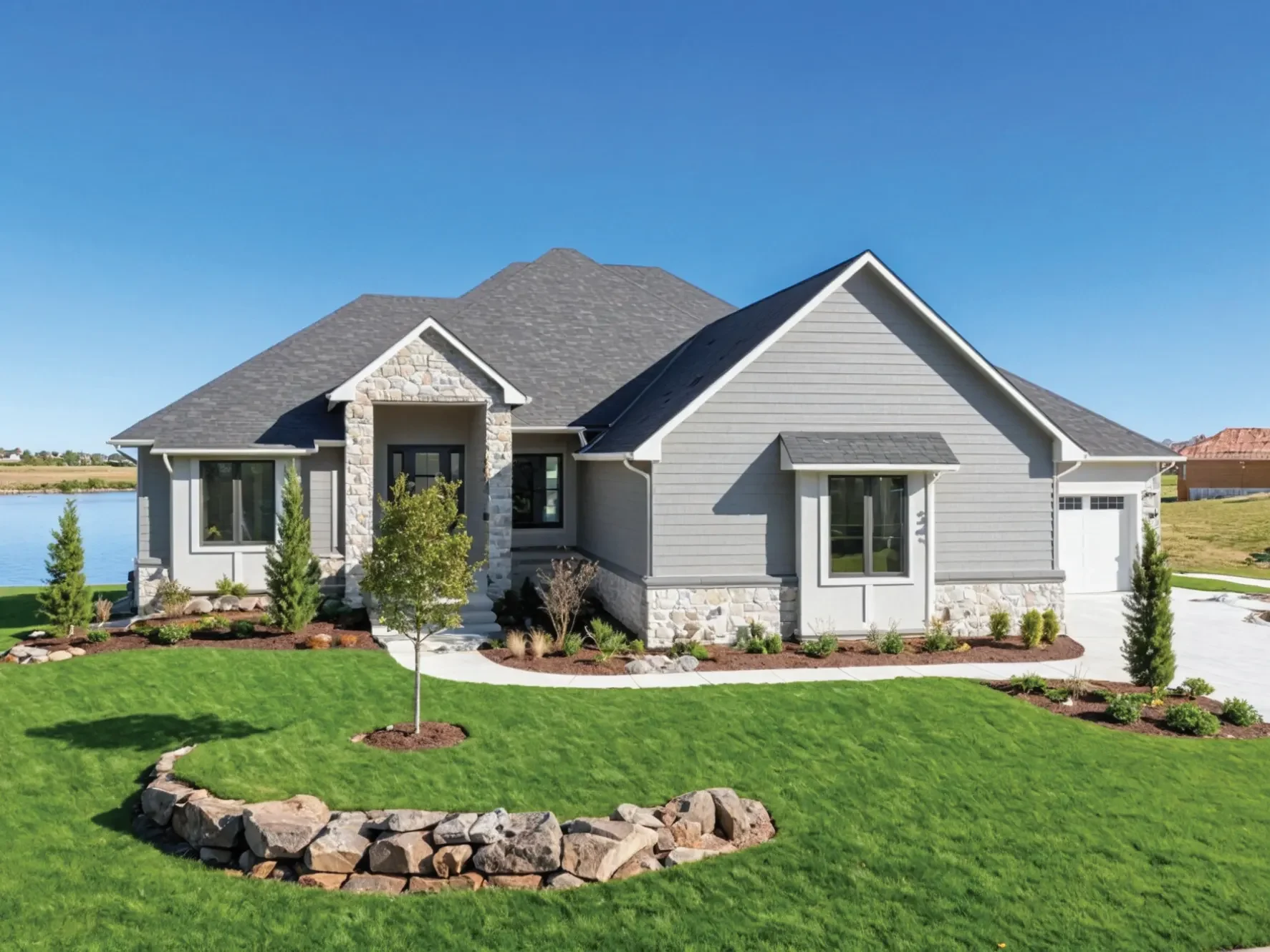 - Description: This lakeside luxury custom home boasts an impressive 4, 285sqft of living space with 6 bedrooms, 4 bathrooms, and a 4-car garage. The gorgeous kitchen and master suite highlight the main floor, and the basement offers 3 spacious bedrooms. Enjoy summers on the 49-acre lake! Show all description
