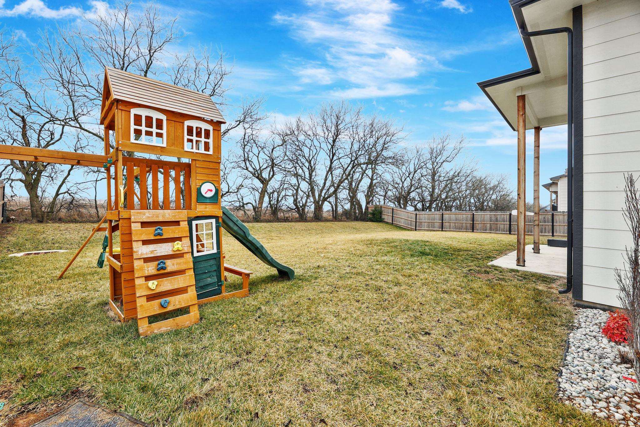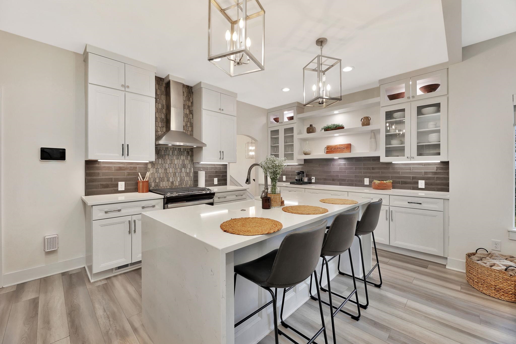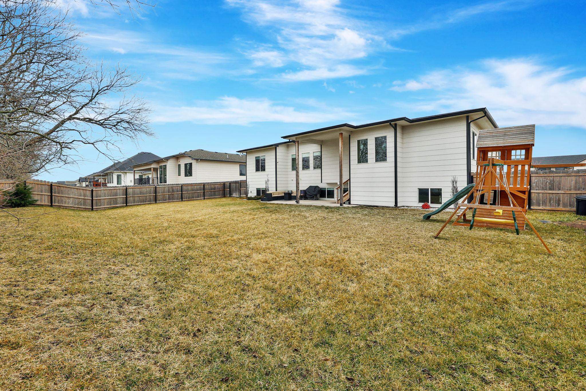 - Description: Modern Meets Comfort in This Stunning 3-Year-Old Home! Nestled on a private, wooded lot, this exceptional home boasts a Modern full brick front and an open-concept design perfect for entertaining. The kitchen is a chef’s dream, featuring a waterfall island, farm sink, custom vent hood with tile backsplash, upgraded soft-close cabinetry with glass-front accents, and a spacious walk-in pantry. A 13’ buffet countertop adds both function and style, making hosting effortless. The split bedroom plan includes a primary suite that offers a custom feature wall, a spa-inspired ensuite with a large dual-head tiled shower, double vanities, and a generous walk-in closet with custom shelving. The finished basement extends the living space with luxury vinyl flooring, a custom-built wet bar, and built-in wood cabinetry—all overlooking the backyard. Designed for efficiency and convenience, this home includes a 93% high-efficiency furnace, 15 SEER A/C, and Energy Star windows. A mid-level walkout leads to a covered patio, perfect for outdoor gatherings, with a gas line ready for your future grill. With five bedrooms, three baths, and a three-car garage, this home is packed with high-end finishes and thoughtful upgrades. Appliances, including the range, dishwasher, and microwave, stay for the new owners—plus, the backyard play set is included! Don’t miss this rare opportunity to own a move-in-ready modern home with all the features you’ve been searching for. Schedule your private showing today! Show all description