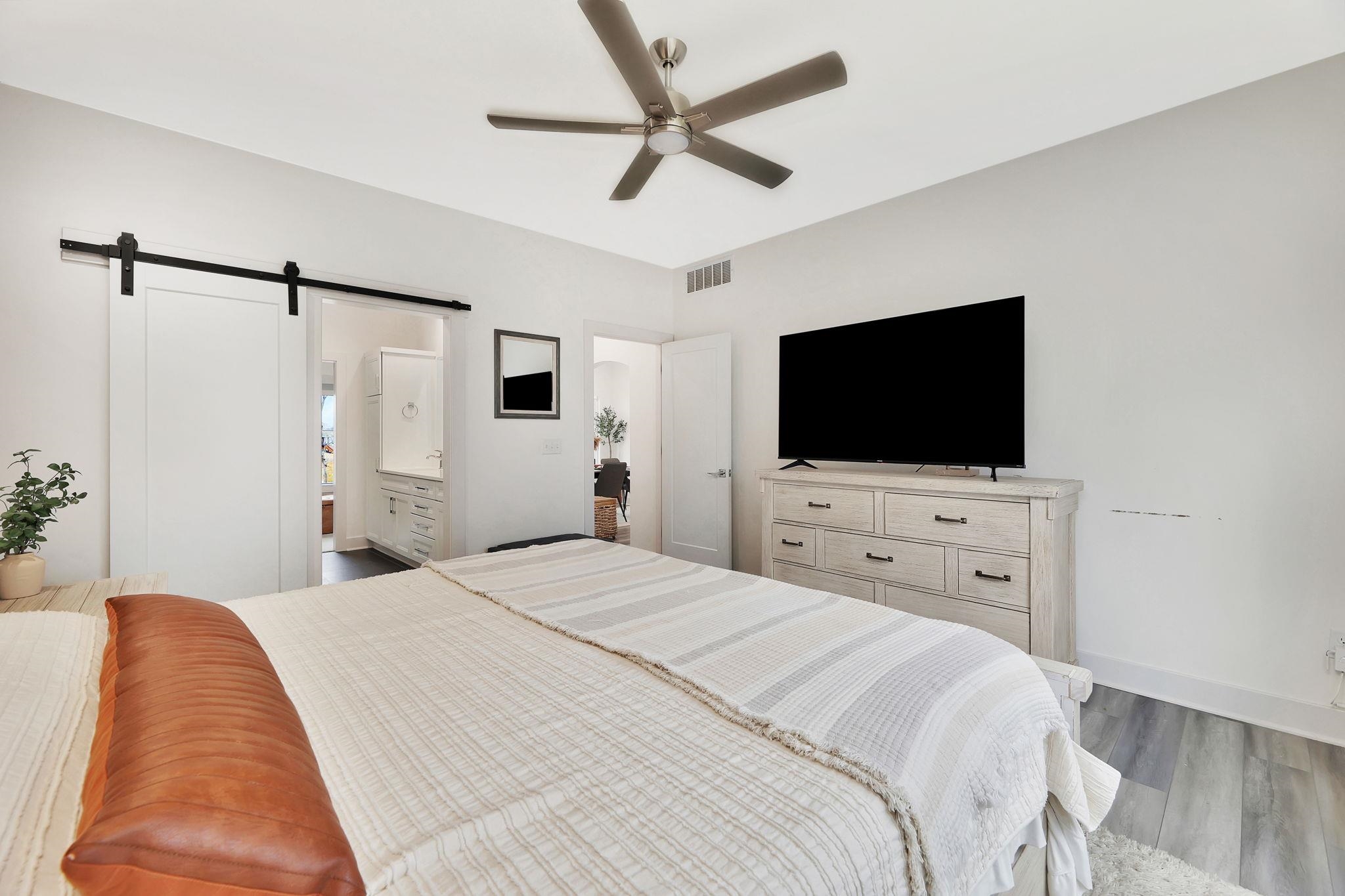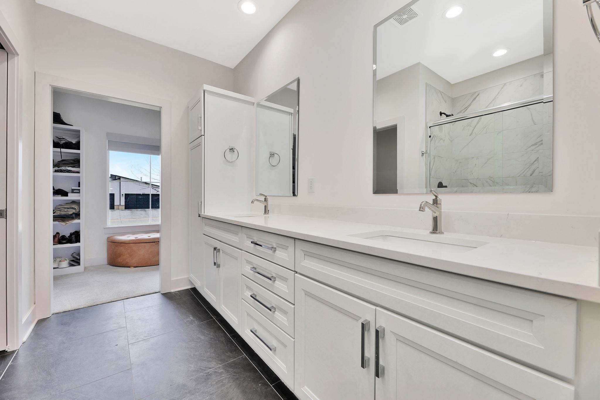 - Master Bedroom: Master Bdrm on Main Level, Split Bedroom Plan, Master Bedroom Bath, Shower/Master Bedroom, Two Sinks, Quartz Counters, Water Closet