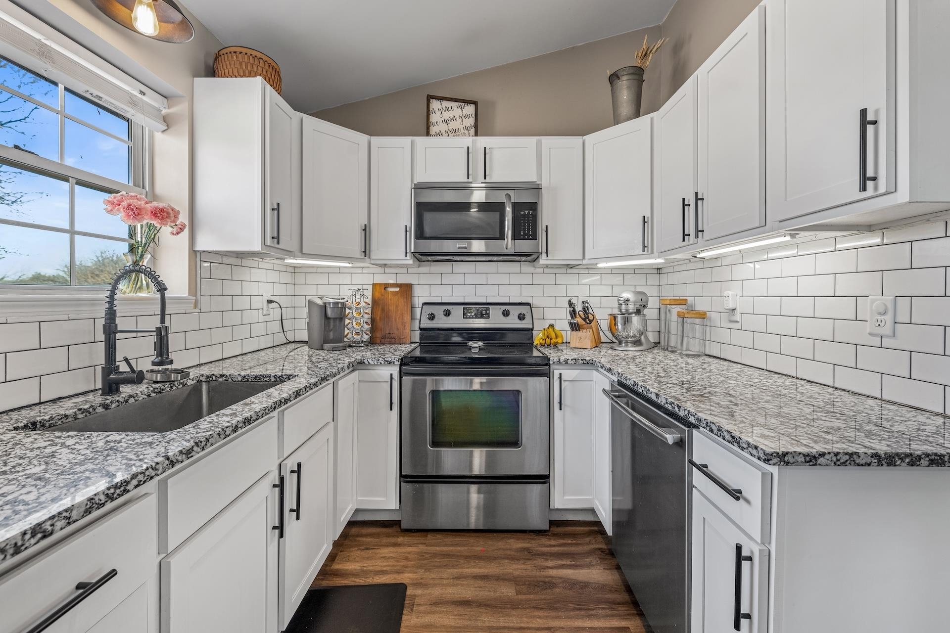 - Appliances: Dishwasher, Disposal, Microwave, Refrigerator, Range