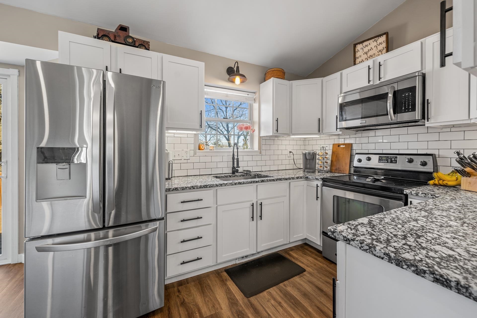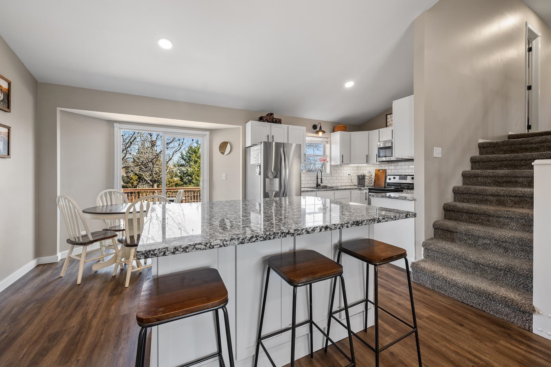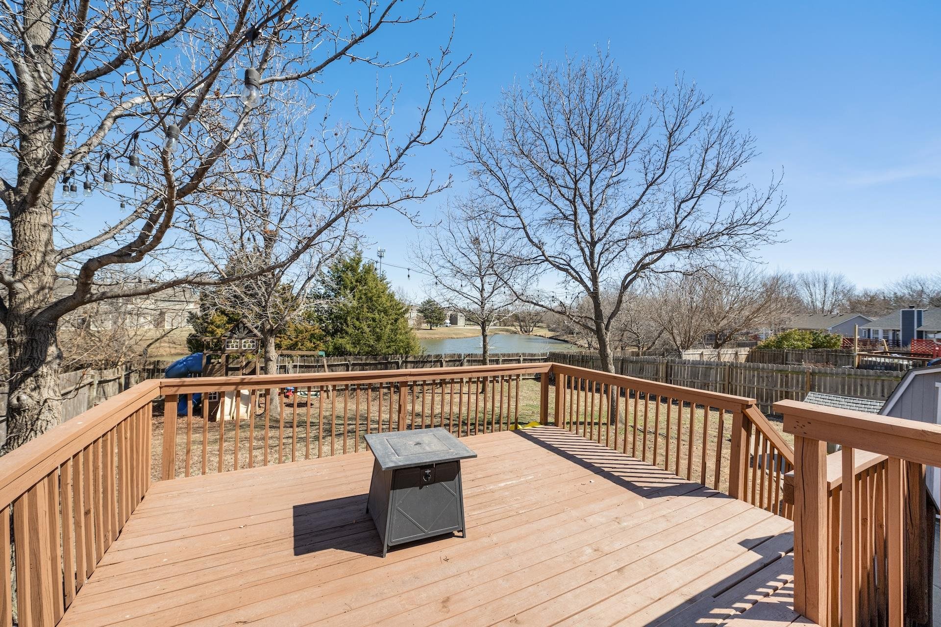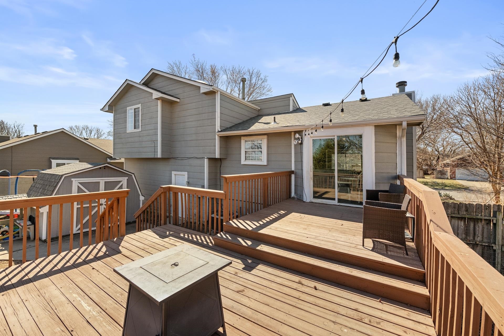- Description: Multiple Offers have been received. The sellers have set an offer deadline of 7 pm Sunday, March 9th. Welcome to this well-cared-for, updated, and open concept 4-bedroom, 2.5-bath home, nestled on a serene cul-de-sac in the sought-after Maize South school district. Set on a peaceful lake lot, this home offers both privacy and tranquility with beautiful views. As you enter, you’ll be greeted by the spacious living room featuring a cozy wood-burning fireplace, perfect for those chilly evenings. Luxury Vinyl Plank flooring throughout the spacious living area adds beauty and ease of maintenance. The heart of the home is the kitchen/dining combo, which boasts a large island with an eating bar, gleaming granite countertops, and stainless-steel appliances—all of which stay with the home. Convenient sliders lead out to a large 2-tier deck, made of mostly new wood, offering a wonderful space for entertaining or relaxing while enjoying the views of the backyard. The upper level of the home features the primary suite, complete with a walk-in closet with a newer barn door, and an en-suite bathroom with coriander countertops, a newer vanity, tile flooring, and a tub/shower combo. Two additional bedrooms and a hall bath complete the upper level, offering comfort and functionality. The view-out basement is perfect for family gatherings and entertaining, with a large family room and a 4th bedroom. A half bath and laundry area round out the lower level. Outside, the backyard is an absolute retreat, featuring not only the expansive deck with amazing lake views but also a patio, wood privacy fence, and nice storage shed for all your outdoor needs. Close to Maize South Schools. Also close to shopping, restaurants, churches and entertainment - just a short drive to New Market Square shopping district. This home is truly a gem, offering comfort, style, and a fantastic location. Don’t miss the chance to make it yours! Show all description