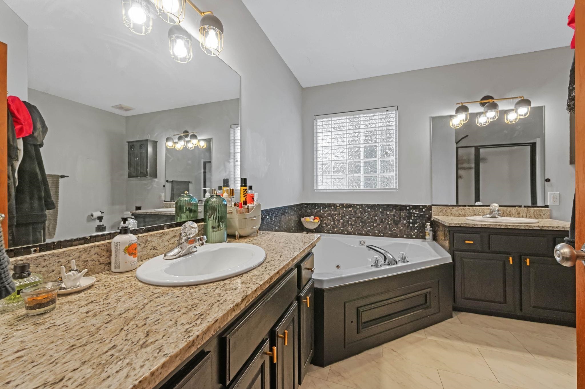 - Master Bedroom: Master Bdrm on Main Level, Tub/Shower/Master Bdrm, Two Sinks