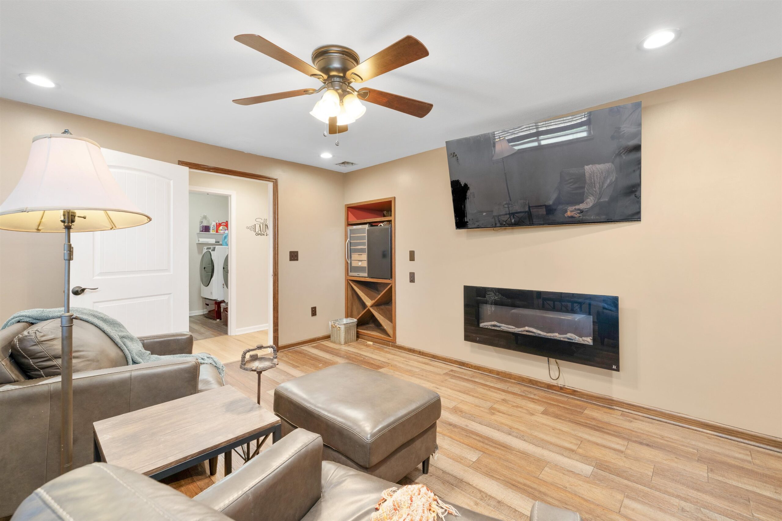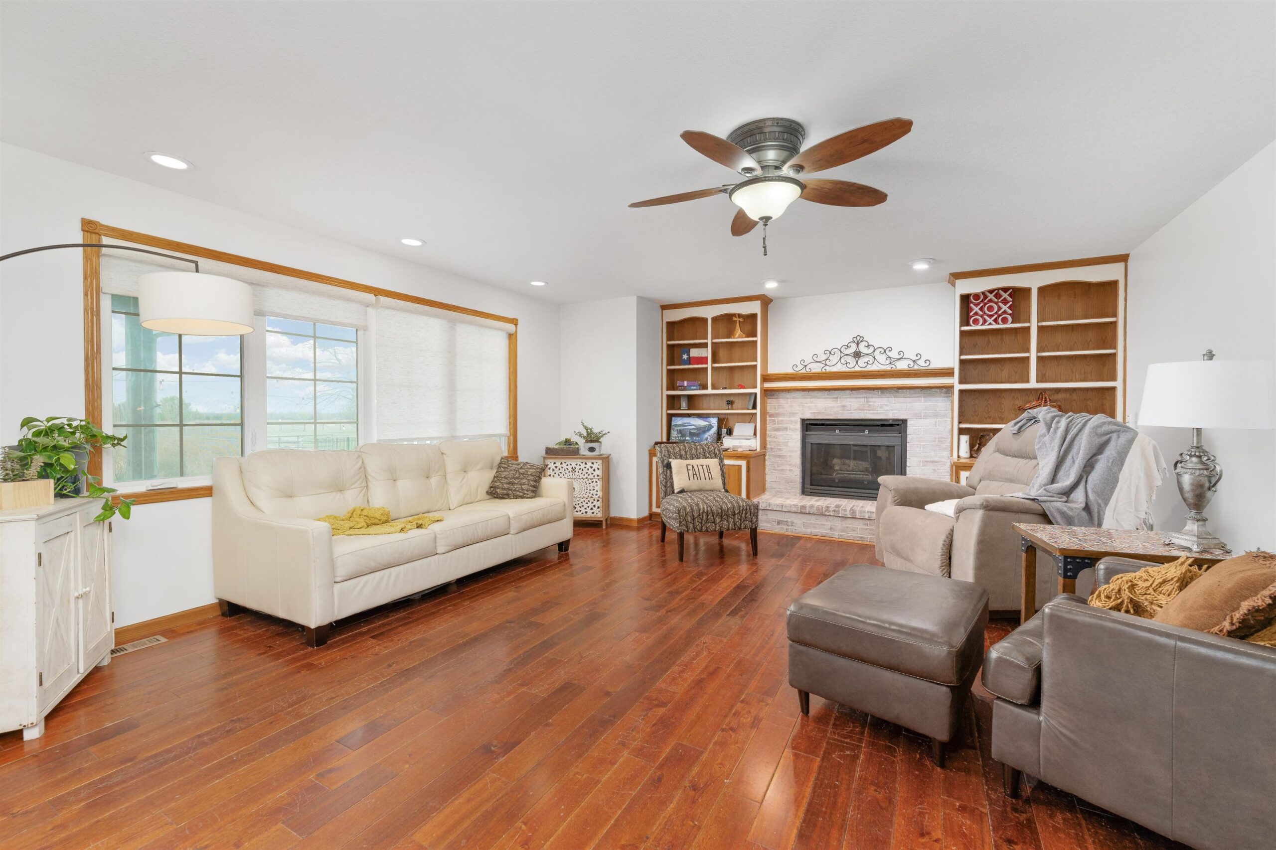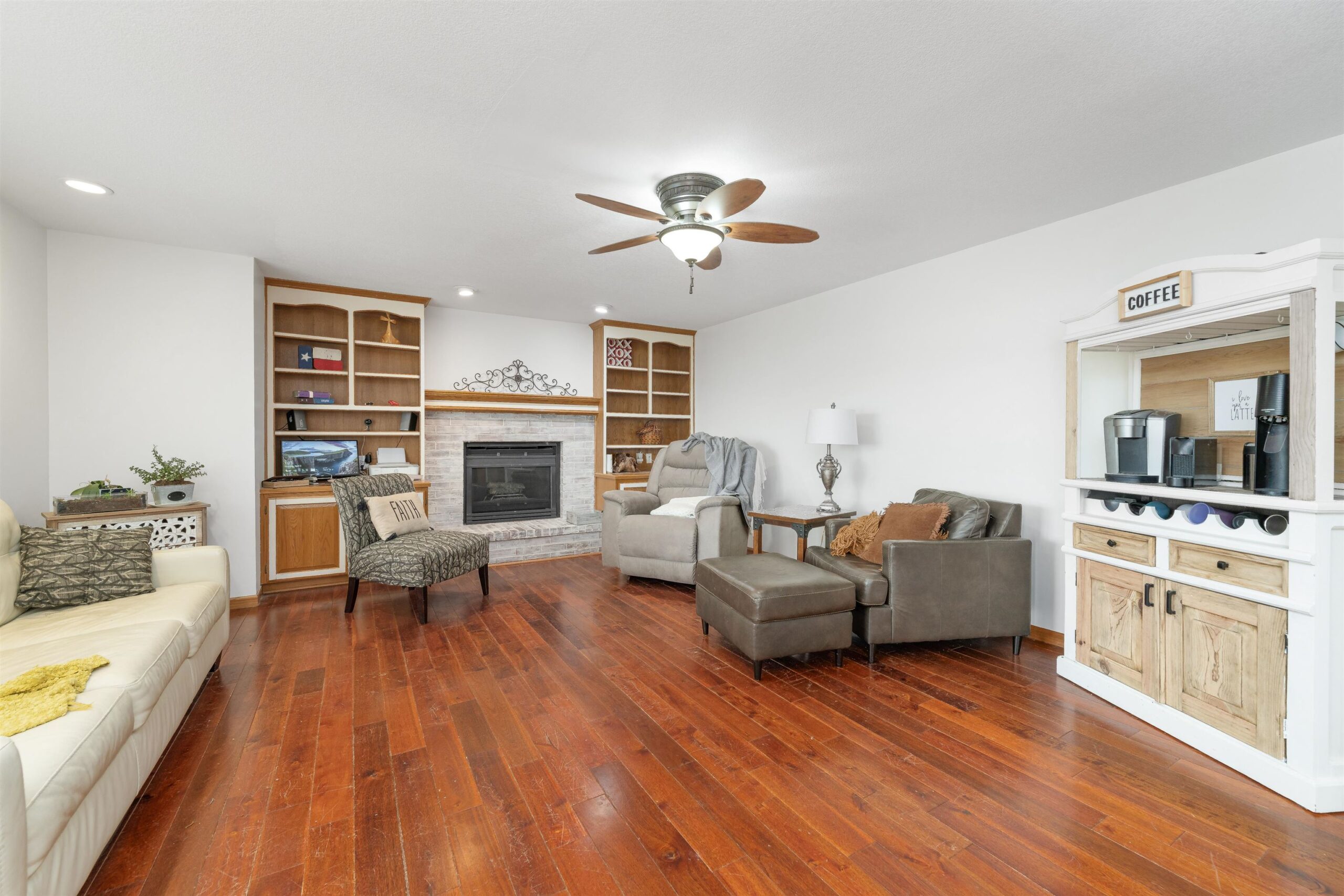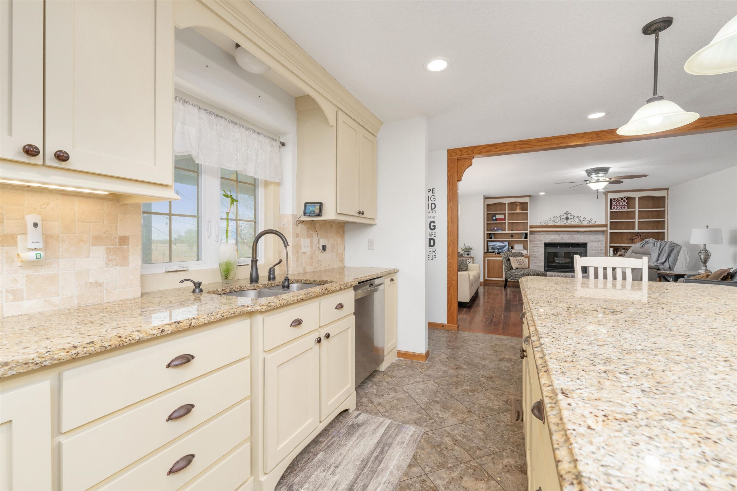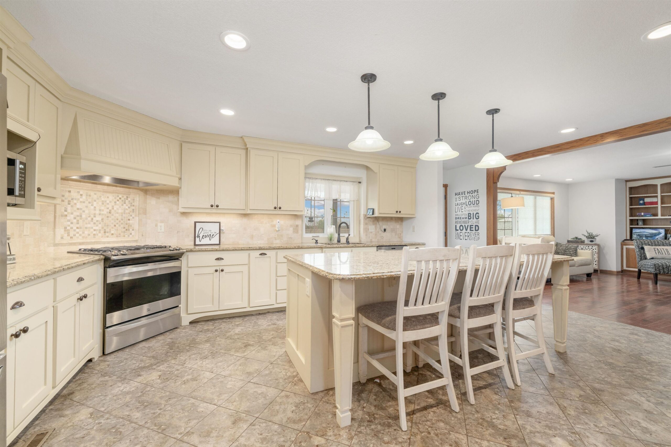 - Description: This 4/5 bedroom 3 ½ bathroom home is the perfect mix between modern farmhouse and rural Derby. The house is just minutes away from the grocery store and restaurants, but you feel like you are out in the country. This home begins to impress from the start. As you drive down the tree lined driveway there is a pond stocked with bass and fire pit on the south and a corral area that gives ample flat and enclosed area for exercising the horses or practice riding. When you pull up to the 2 story home, you will notice an amazing front porch to sit and enjoy the sunsets. As you enter the home there is an office/bonus room on the right and a formal dining room on the left. The large formal dining room is big enough for a very large table. Next to the dining room is a sitting room that carries a cozy feel for family and friends. The show piece of the main floor is the kitchen. The amazing kitchen boasts maximum storage space – huge pantry – granite countertops – and multiple cabinets with pullout drawers. All of the appliances stay as well as the new refrigerator and new washer and dryer. There is a half bath on the main floor. The living room has wood floors, fireplace, large picture window for natural light and an abundance of room. From the living room / kitchen area, there is access to the back yard that has a covered back patio, fenced in inground pool area, and pool equipment shed. The 4 bedrooms are all located on the upper level. The main bedroom is 16 ft x 16 ft with 2 closets – storage area – very spacious main bathroom with 2 sinks and separate tub and shower. The 3 additional bedrooms have lots of room for the kids or guests. The upper level bathroom has 2 sinks. Finished in the basement is a family/game room. There is also room for a kids play area and a TV / movie area. There is a full bathroom and laundry. The bonus room could easily be a 5th bedroom. Just remove the beverage center and convert to a closet. The room has an egress window. If that is not enough. There is a 40 x 50 working horse barn with tack room. There have been many upgrades completed to the barn as well as the pasture areas. They added a new well and pump – auto watering bowls for each stall – 3 indoor stalls – and fully enclosed chicken coop. The pasture area has 3 fenced paddocks with new fencing for rotation of livestock and any other animals. Do not miss this home. It has it all. Call me and set up your private showing today. Show all description