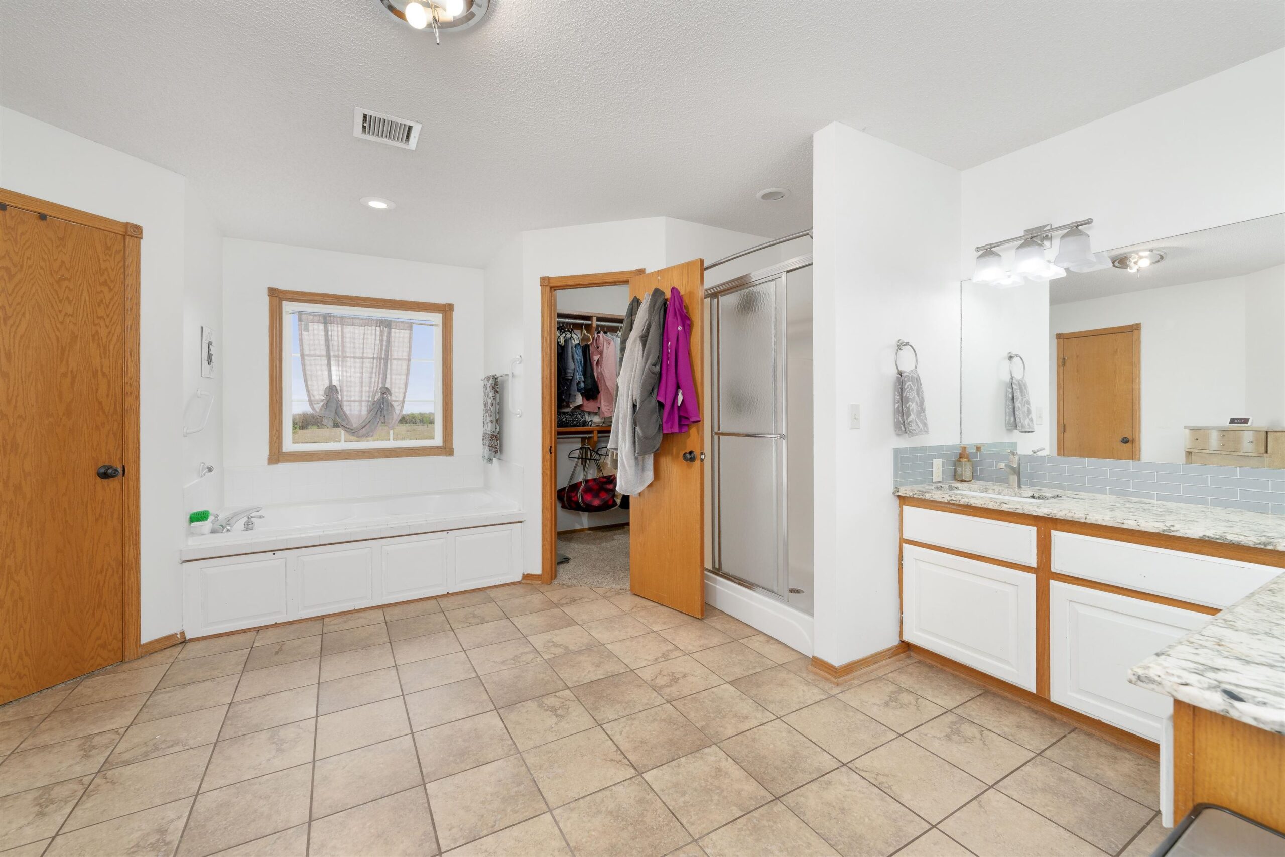 - Master Bedroom: Master Bdrm on Sep. Floor, Split Bedroom Plan, Sep. Tub/Shower/Mstr Bdrm, Two Sinks
