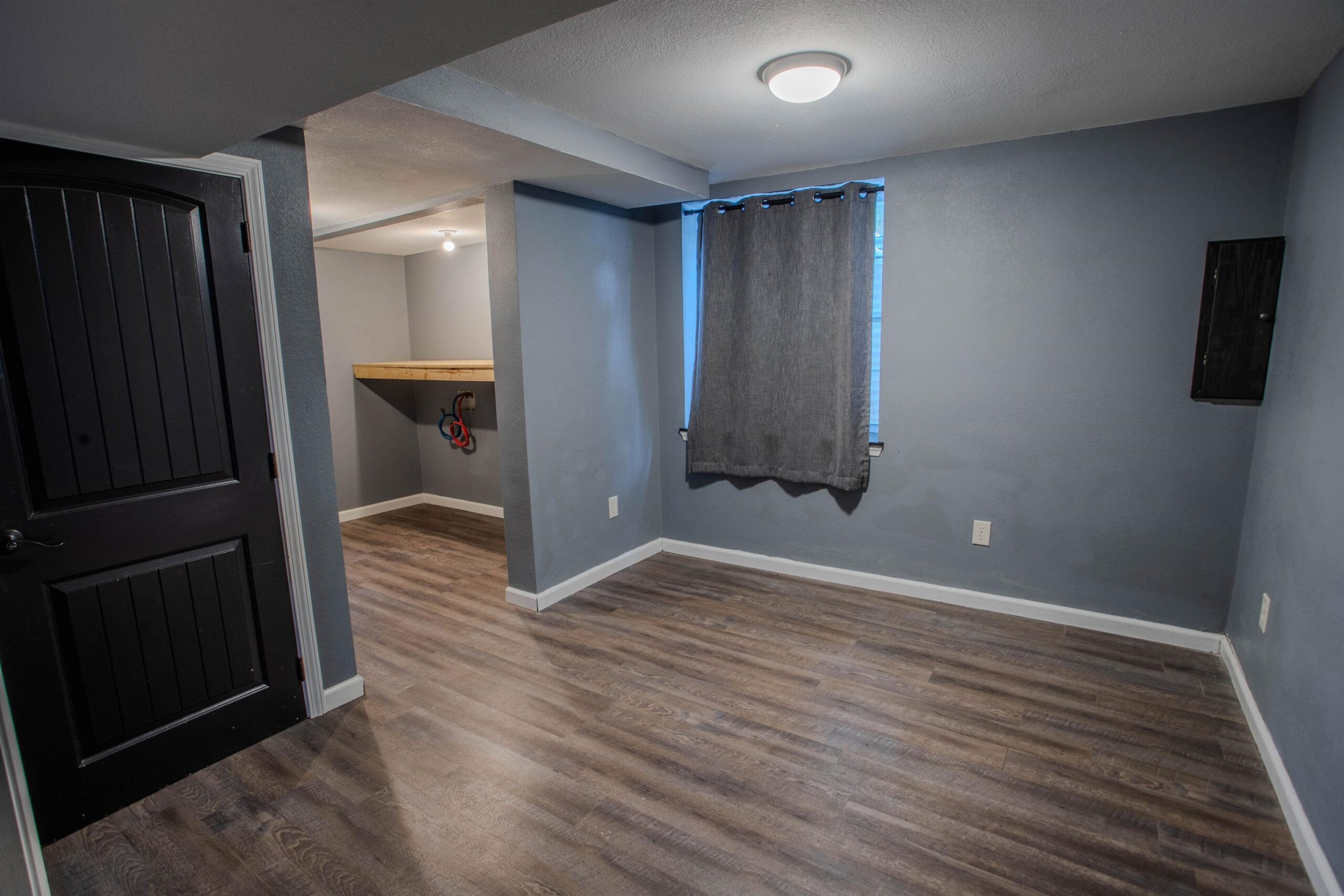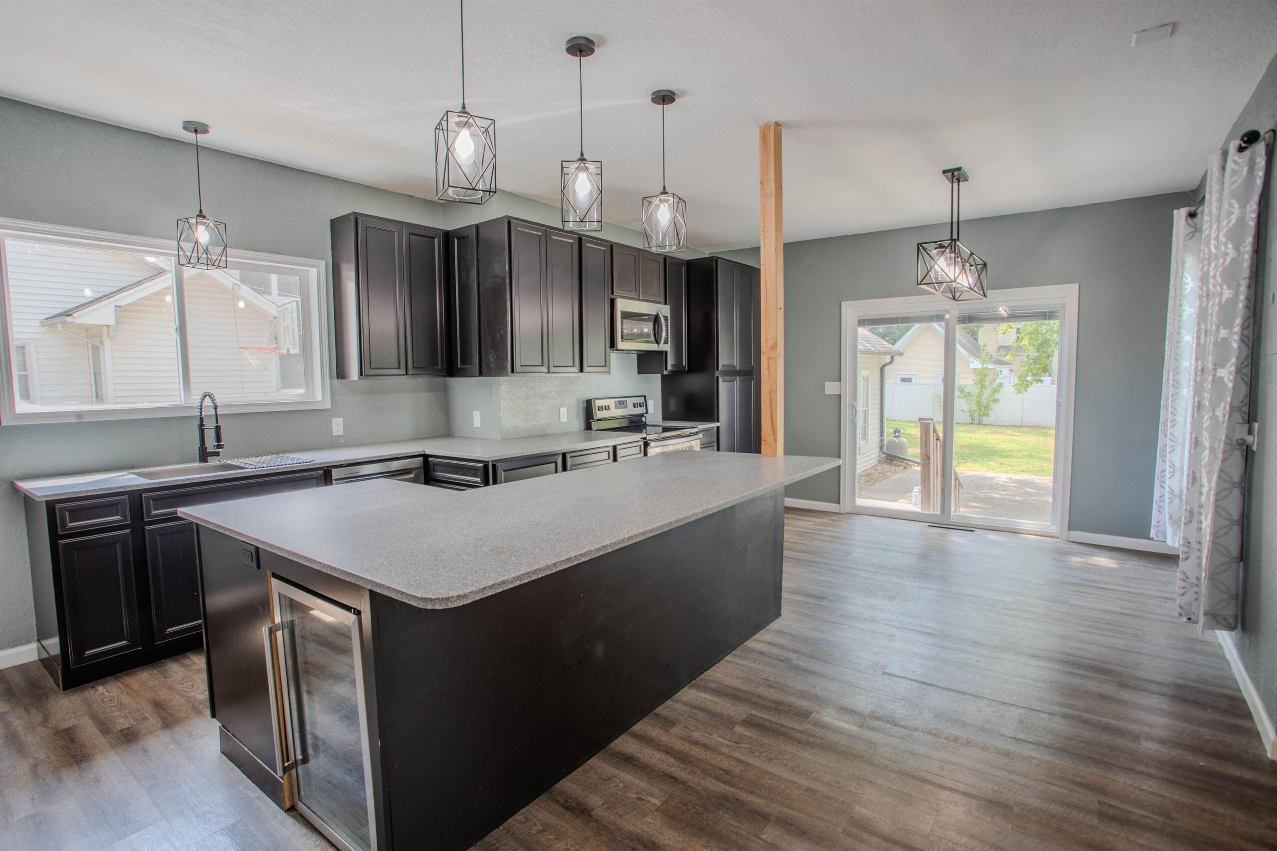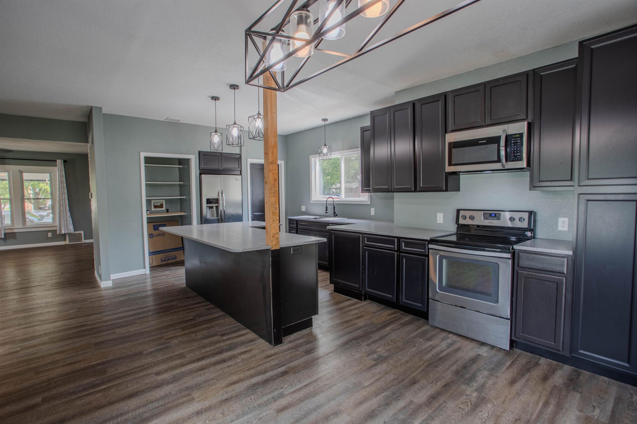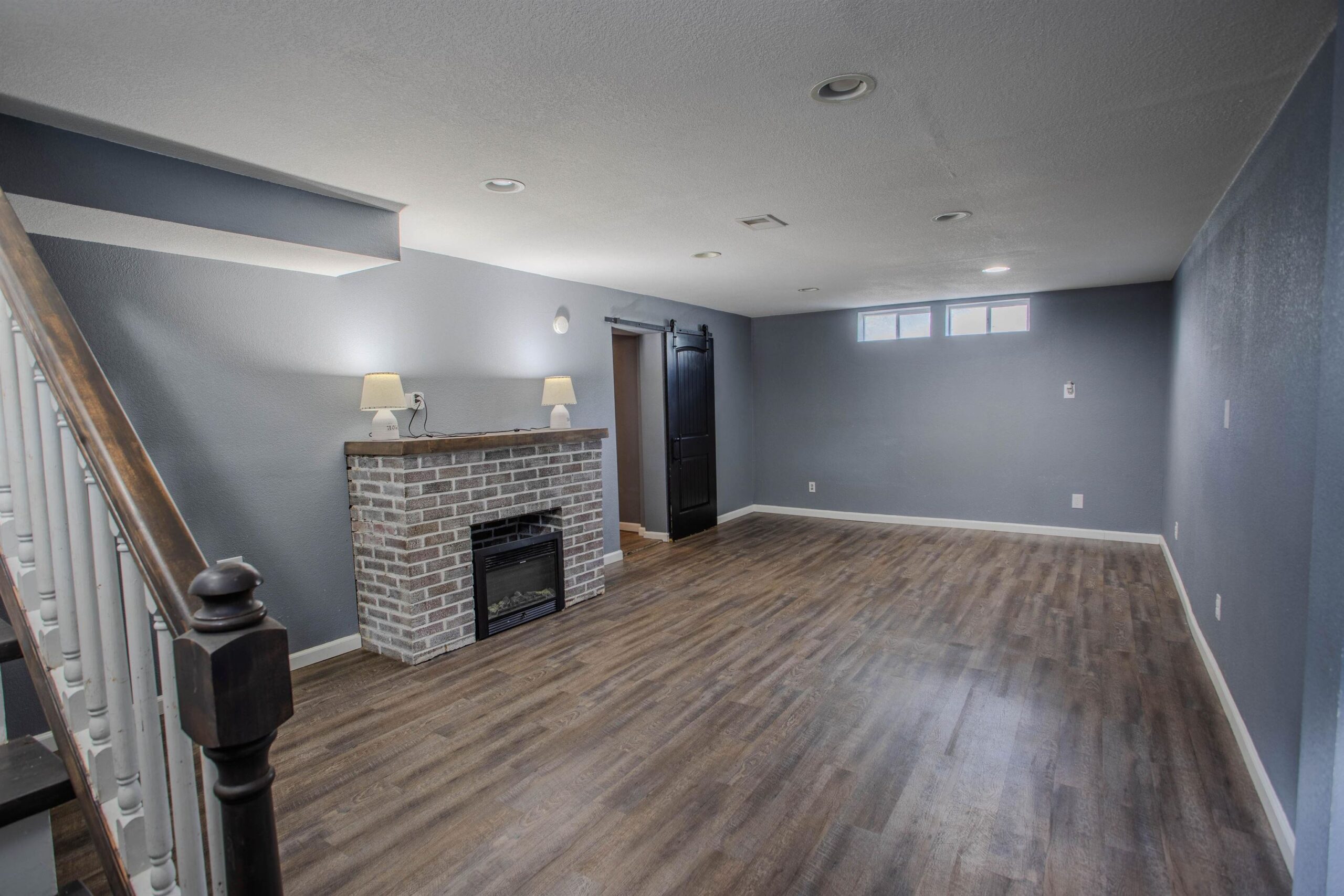 - Description: This stunning, fully renovated two-story home offers four spacious bedrooms plus a dedicated office, perfect for remote work or study. With two and a half beautifully updated bathrooms, the home also features a full finished basement that includes a laundry area (with an option to move it upstairs) and a generous storage room. The cozy living space is warmed by a charming fireplace, while the newer kitchen showcases a stylish island and comes complete with all appliances. Major updates include a new roof in 2017, exterior paint in 2025, newer downstairs windows, updated guttering, a new central heat and air system, and an upgraded electric panel. There’s attic storage for additional space, and outside, you’ll find a fully fenced backyard with a durable vinyl fence, a sprinkler system in the front yard, and a detached two-car garage with brand-new windows and openers. Seller needs 24 hr notice to show, rooms sizes are estimated. Show all description