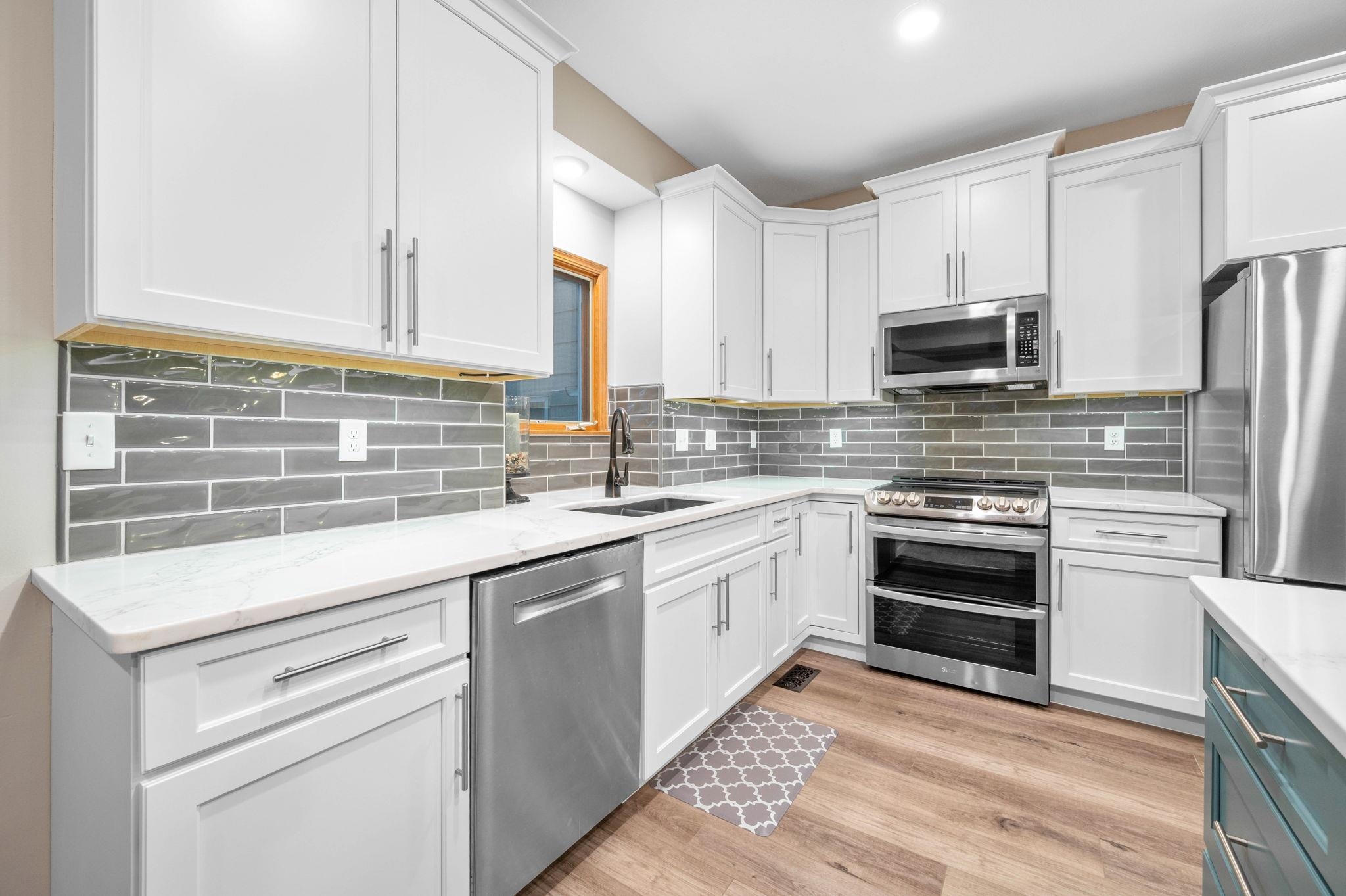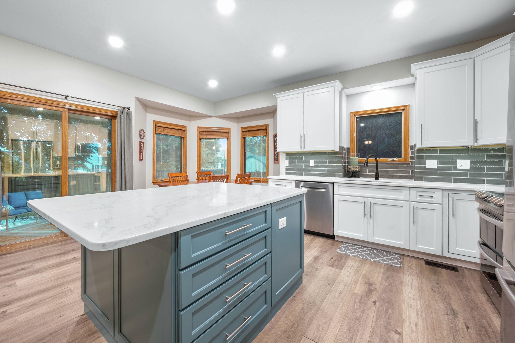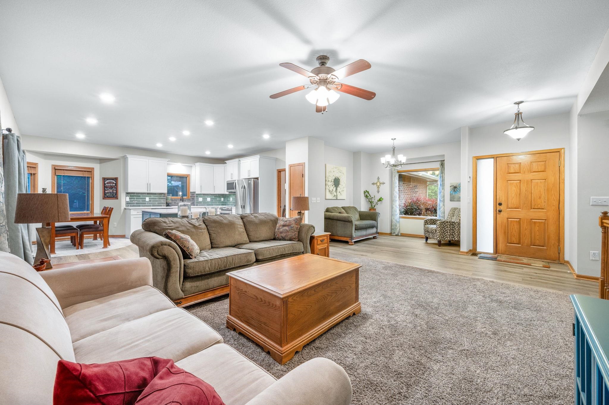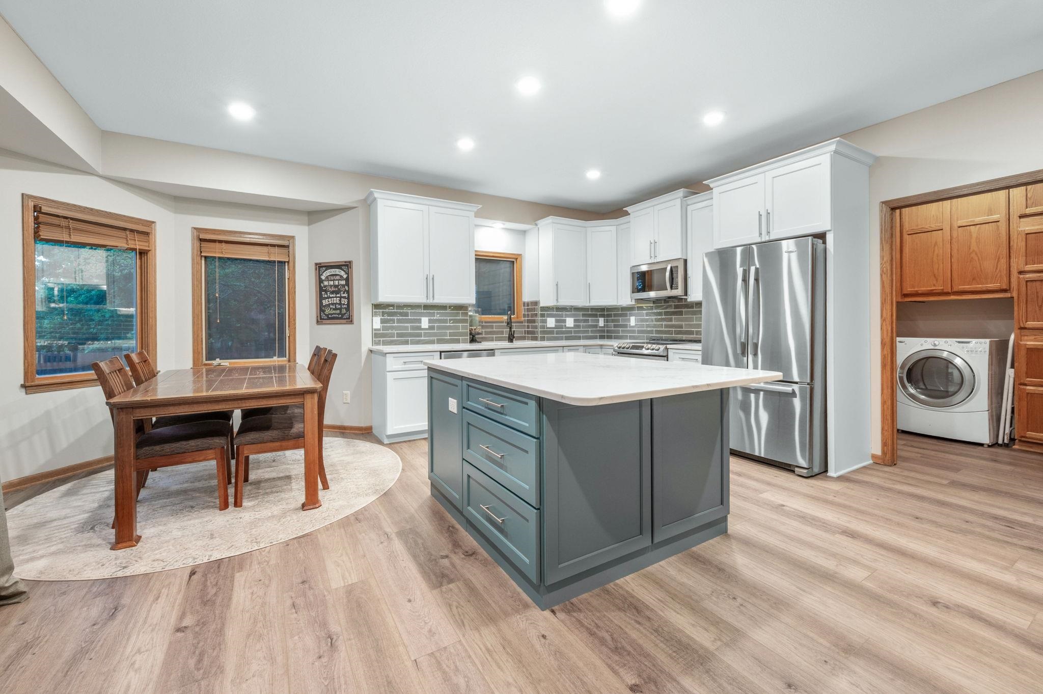 - Description: Welcome to your next home! This well maintained home features a full kitchen remodel that was done in 2020 to create an open floor plan! Luxury vinyl floors added in 2020. Huge quartz island, stove with double oven, plenty of counter and cabinet space for a dream kitchen! Main floor laundry with lots of storage space. Large family room in basement also features a bonus area that makes a great office or craft space or future bar area. Home also features a massive storage room! Outdoor patio is perfect for relaxing or entertaining. Outdoor storage shed. HVAC system in 4 years old, Water Heater is 5 years old and roof was replaced in 2020! Show all description