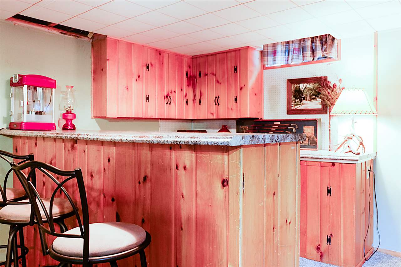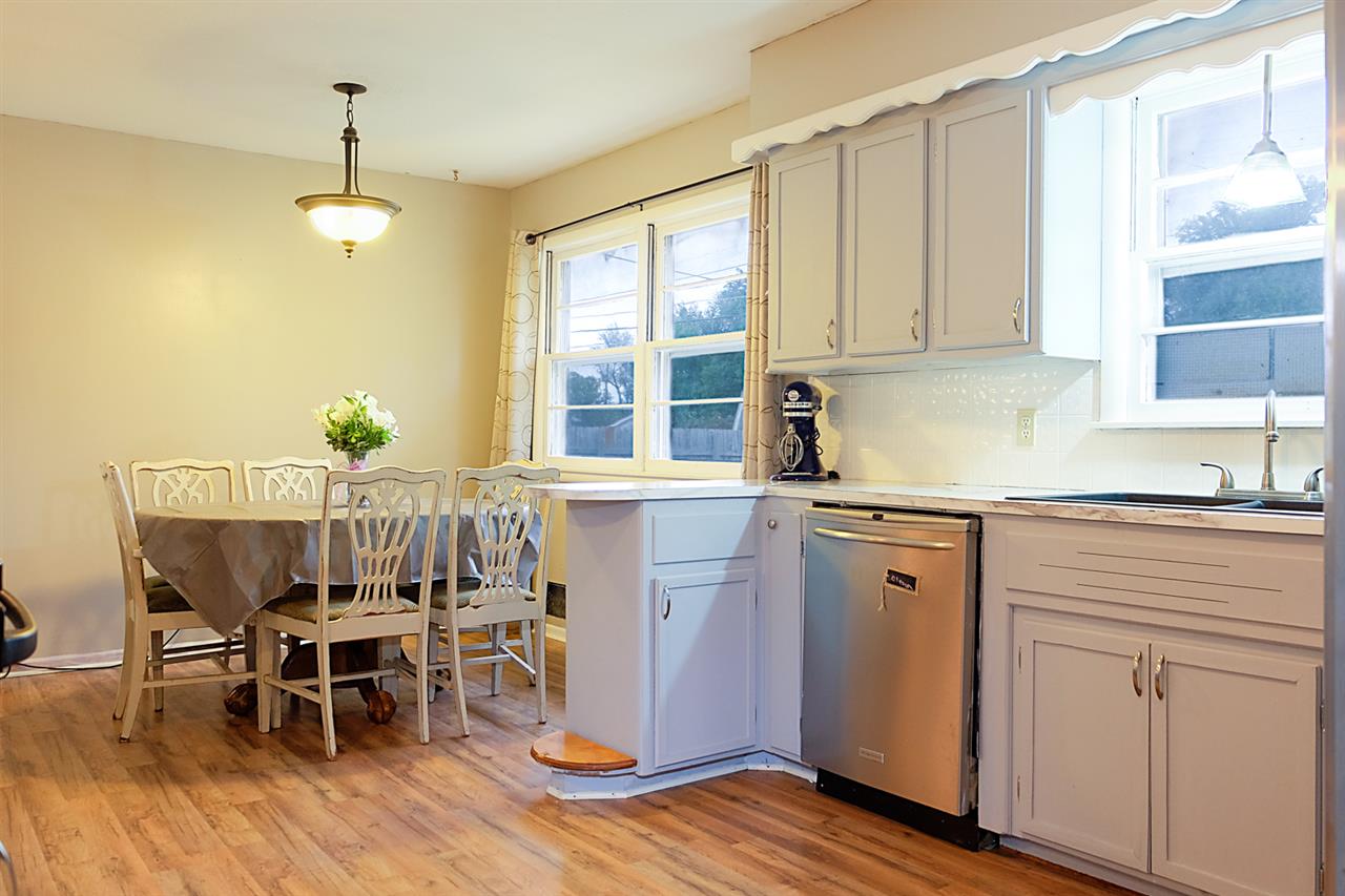 - Description: Clean and updated move-in ready home is waiting for YOU! Spacious living room with new luxury vinyl flooring that looks like wood and spans into your LARGE eat-in kitchen with newer countertops and lots of cabinet space. Three bedrooms on the main level (with NEW CARPET that will be installed prior to closing). Basement is ready for football games and holiday entertaining with large family room and a dry bar. Family room has a half wall and one side is being used as a bedroom - and would also work great for ping pong table, foosball, you name it! There is a bonus room that is also being used as a bedroom AND has an attached bathroom. LARGE STORAGE AREA. The privacy fenced backyard features a playset, and a one-car detached garage. Other recent improvements to YOUR NEW HOME: HVAC, water heater, roof, water line to the street, and fresh paint throughout much of the home. Close to the river and Watson Park. Show all description